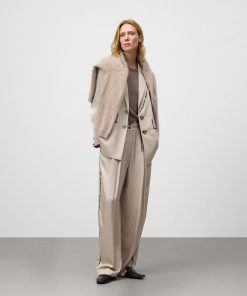 Adolfo Domínguez Blazer Doble Solapa Con Cinturón Mujer | Arena | Mujer Ropa
