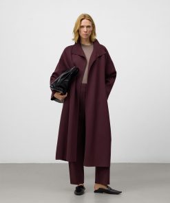 Adolfo Domínguez Abrigo Largo Punto Mujer | Berenjena | Mujer Ropa