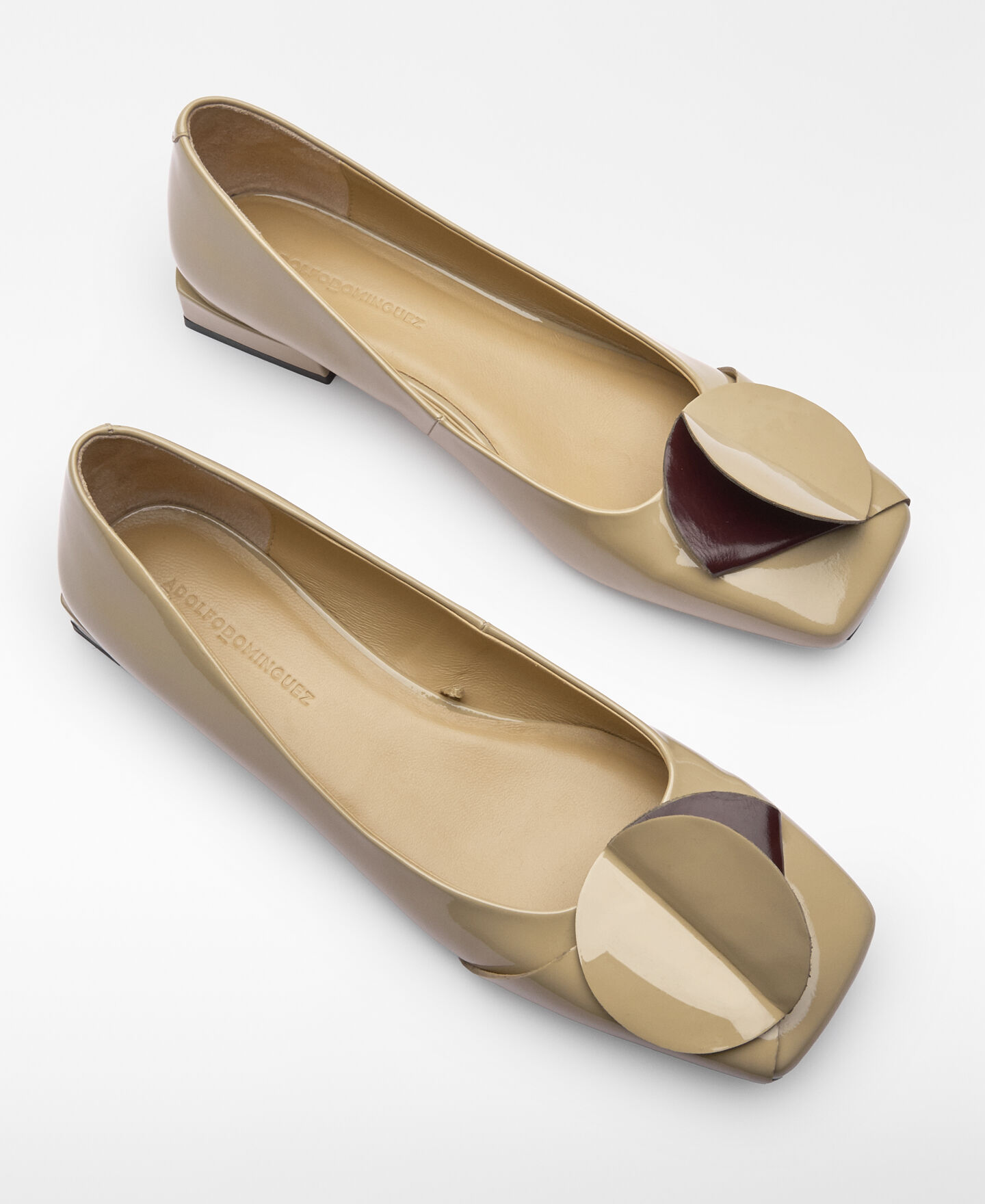 Bailarina tacón charol mujer. Puntera cuadrada con pieza bicolor. Plantilla Memory Foam. Suela antideslizante.