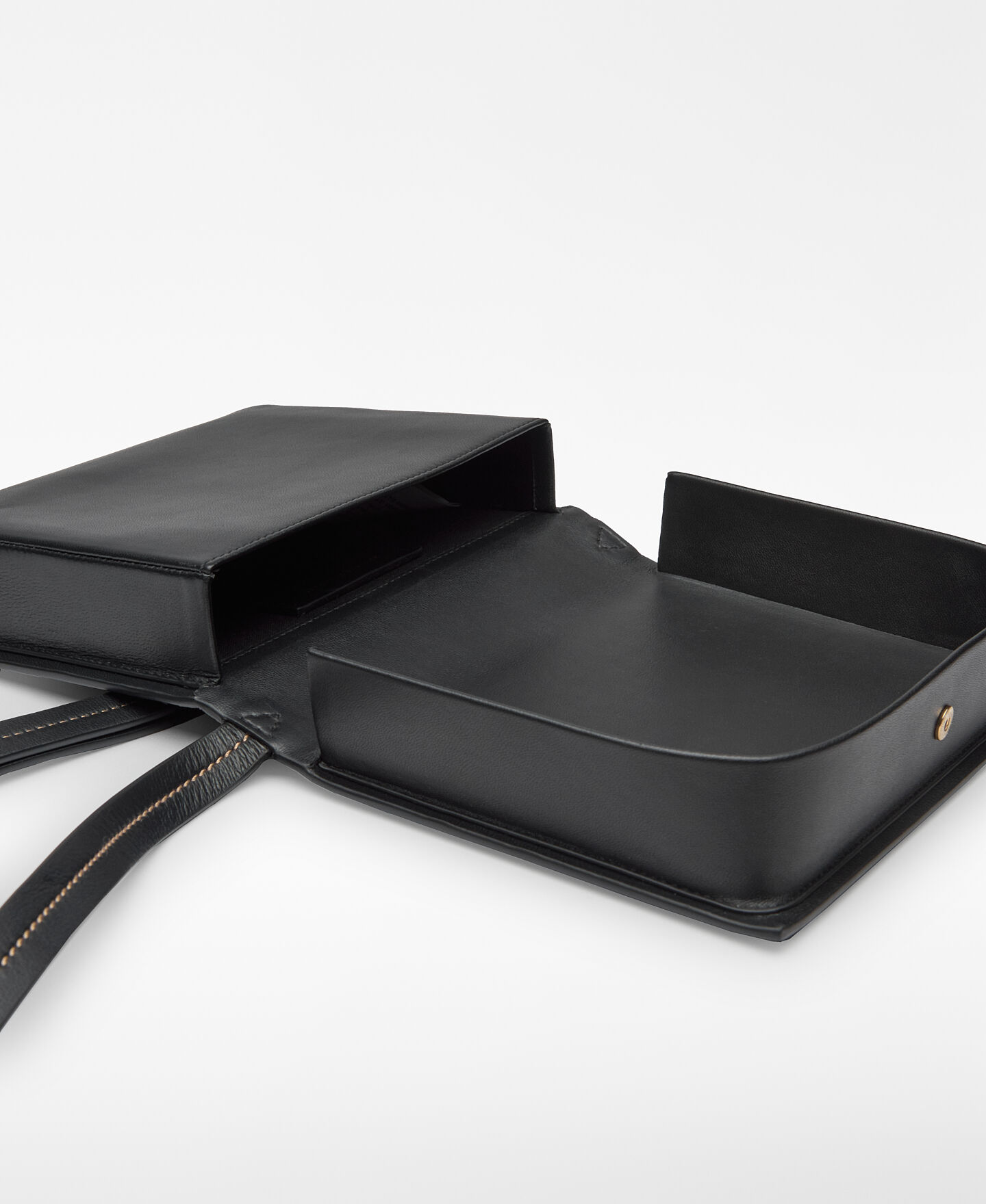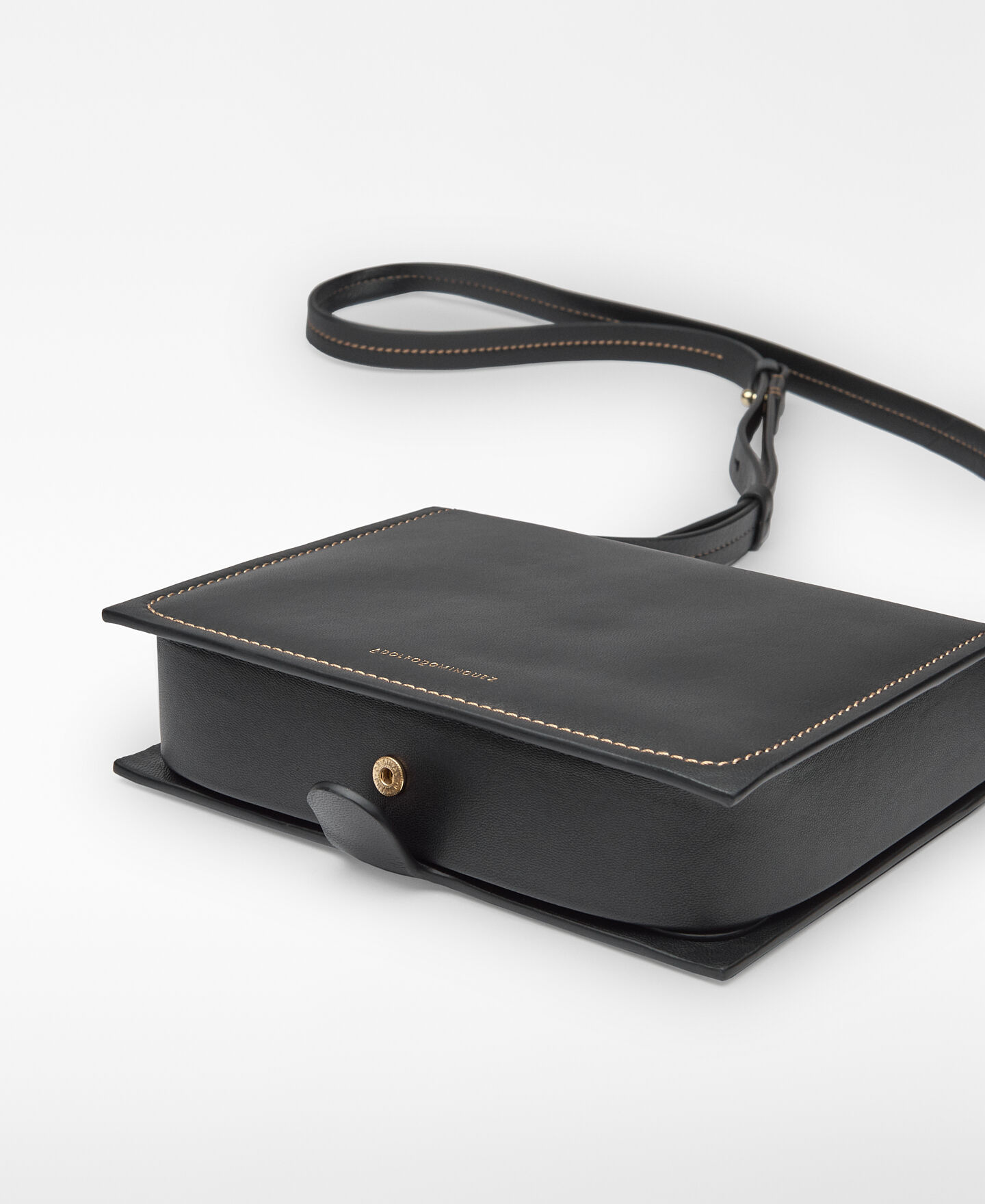 Bandolera Aqua Lab (06) piel mujer. Estructura cuadrada rígida. Un compartimento. Cierre broche. Asa larga regulable. Logo grabado.