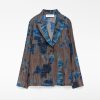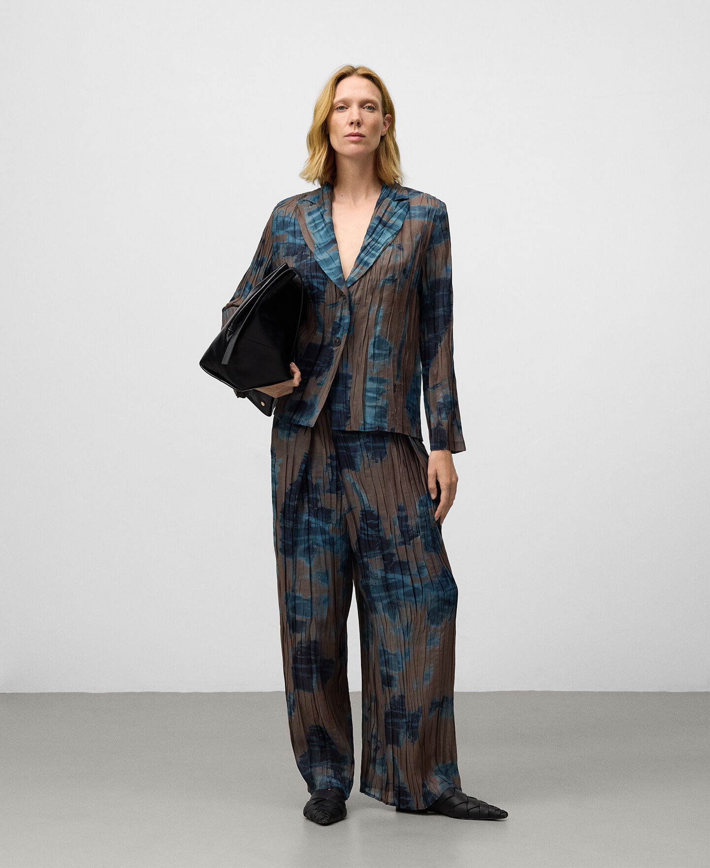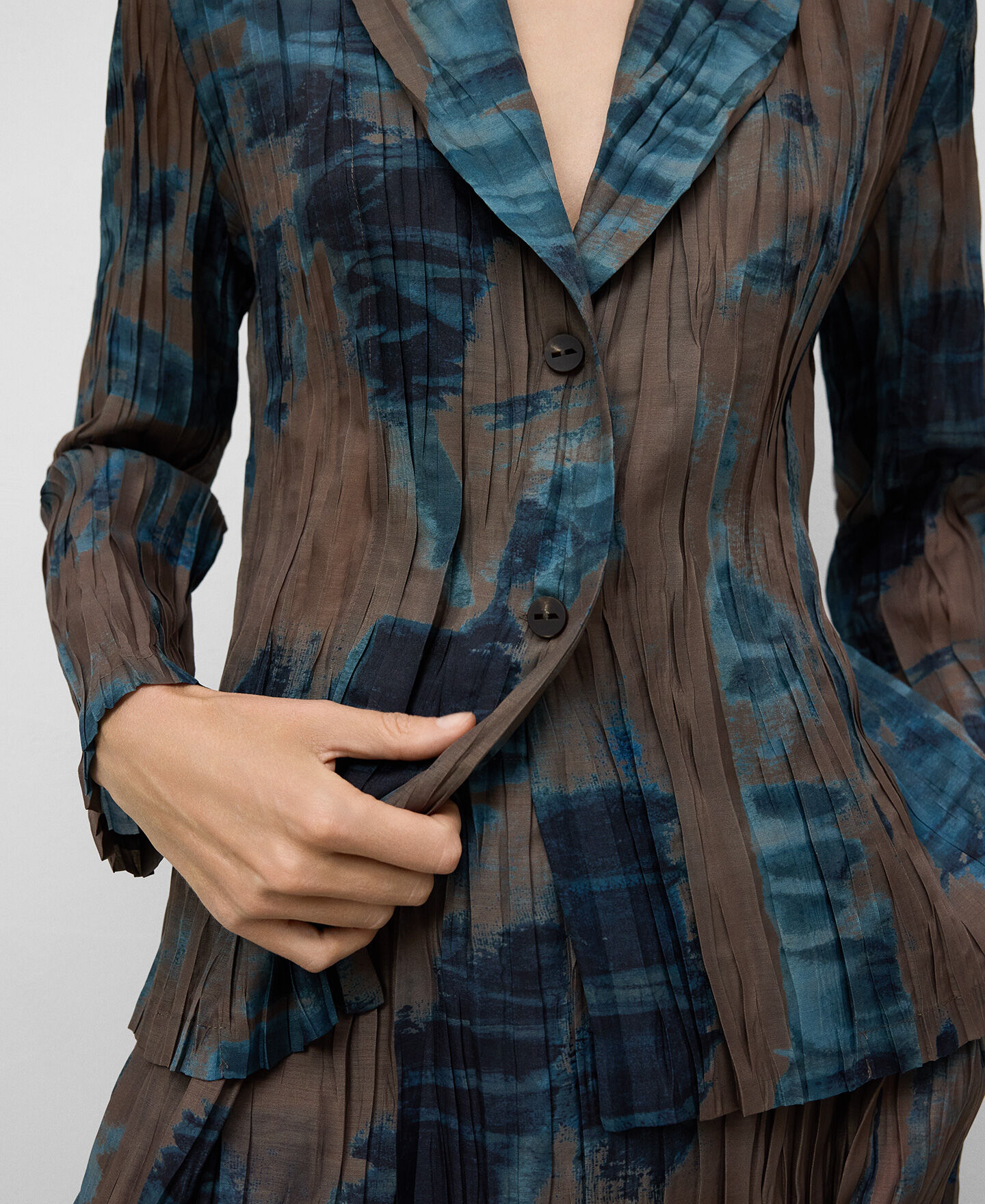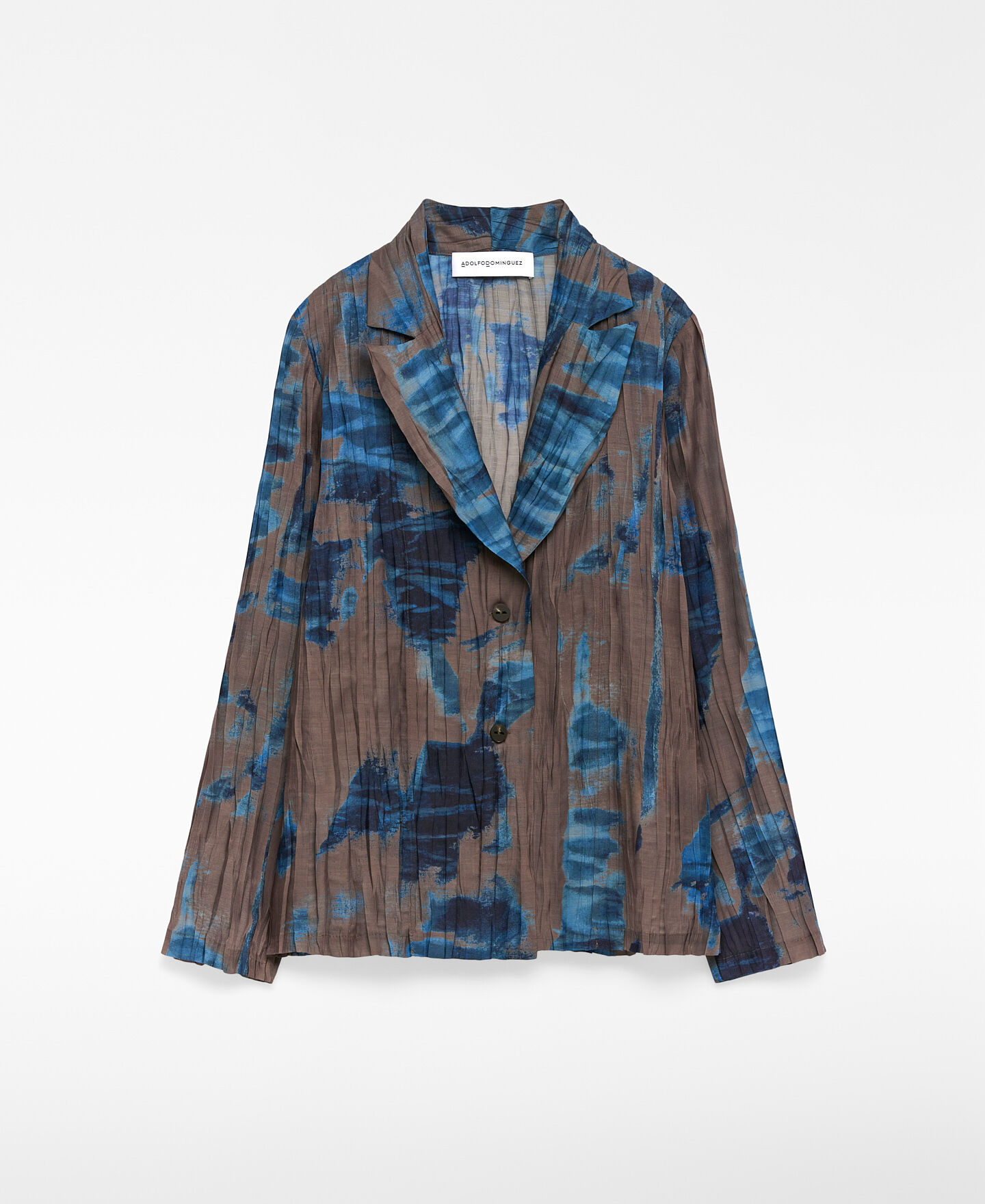 Blazer crinkle estampada mujer. Solapa. Manga larga. Cierre dos botones en delantero.