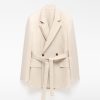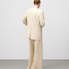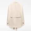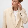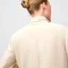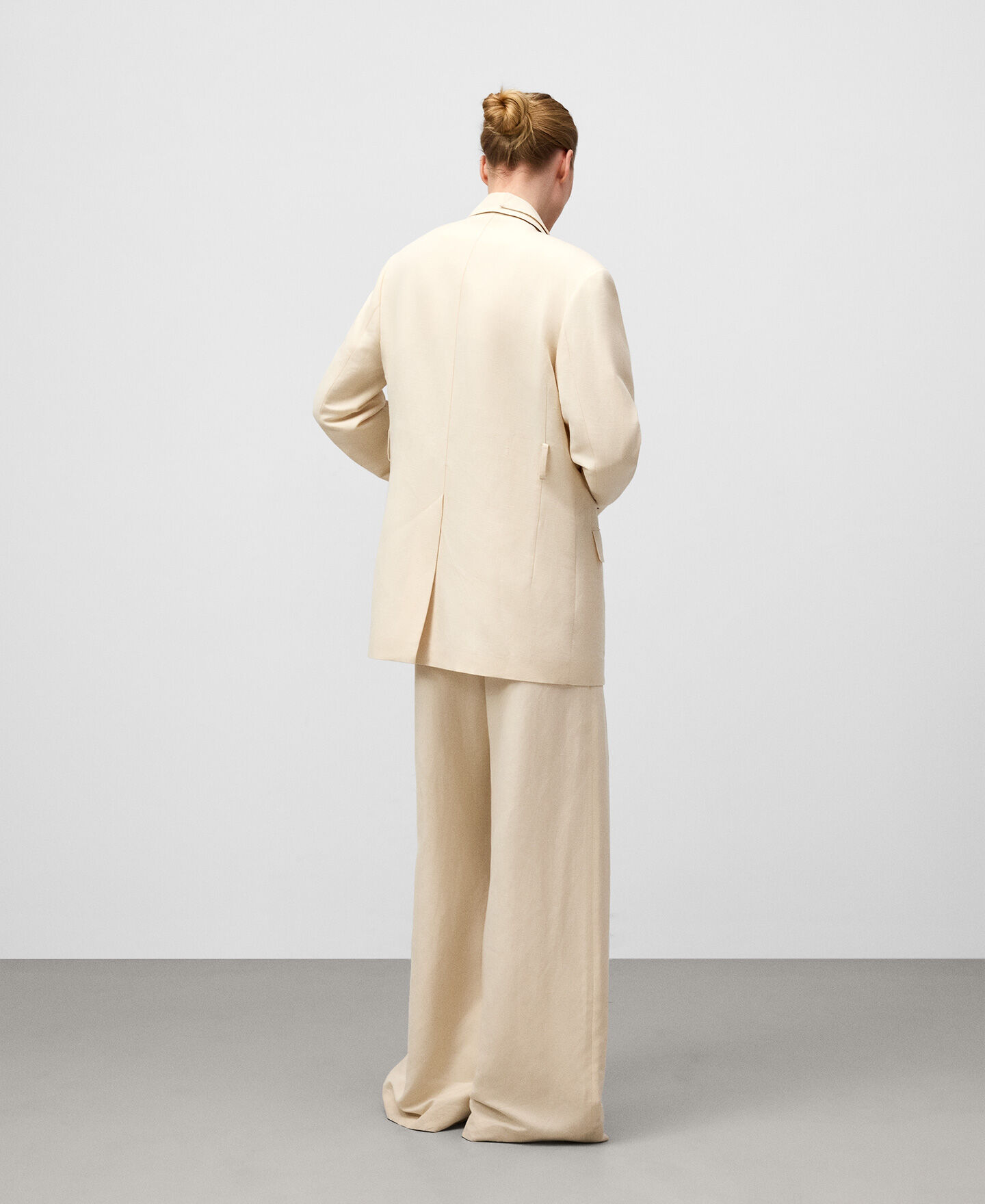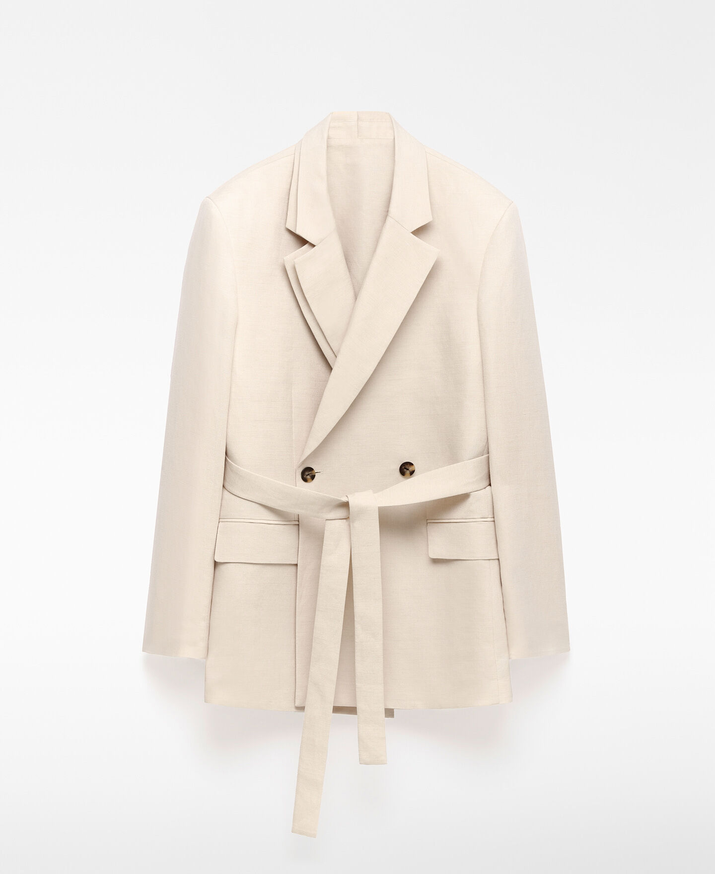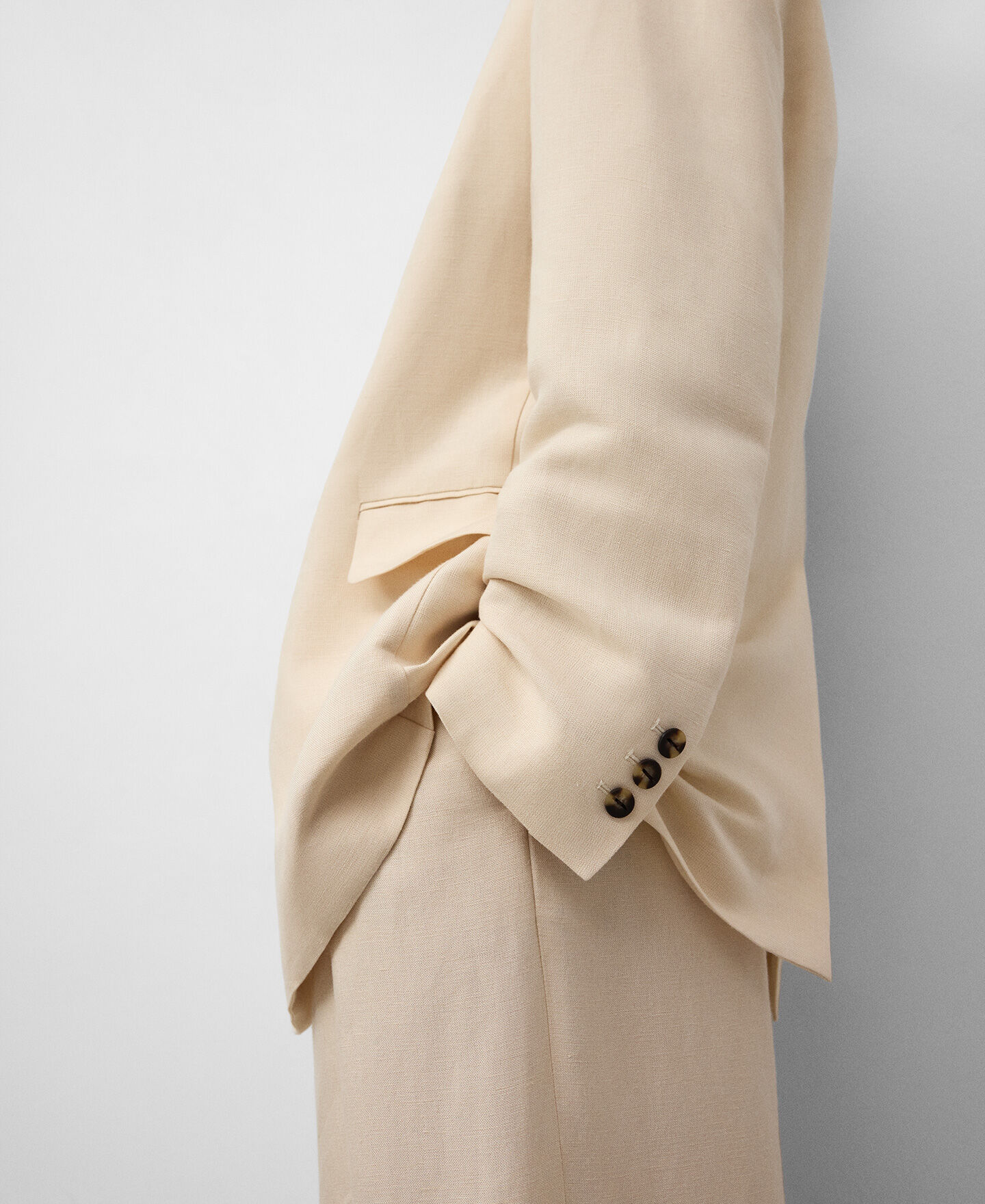 Blazer recta con lino europeo mujer. Doble pieza en solapa derecha. Hombreras. Manga larga con tres botones en puño. Doble botonadura en delantero. Bolsillos de vivo con solapa en delantero. Cinturón. Abertura central en espalda. Largo bajo cadera.