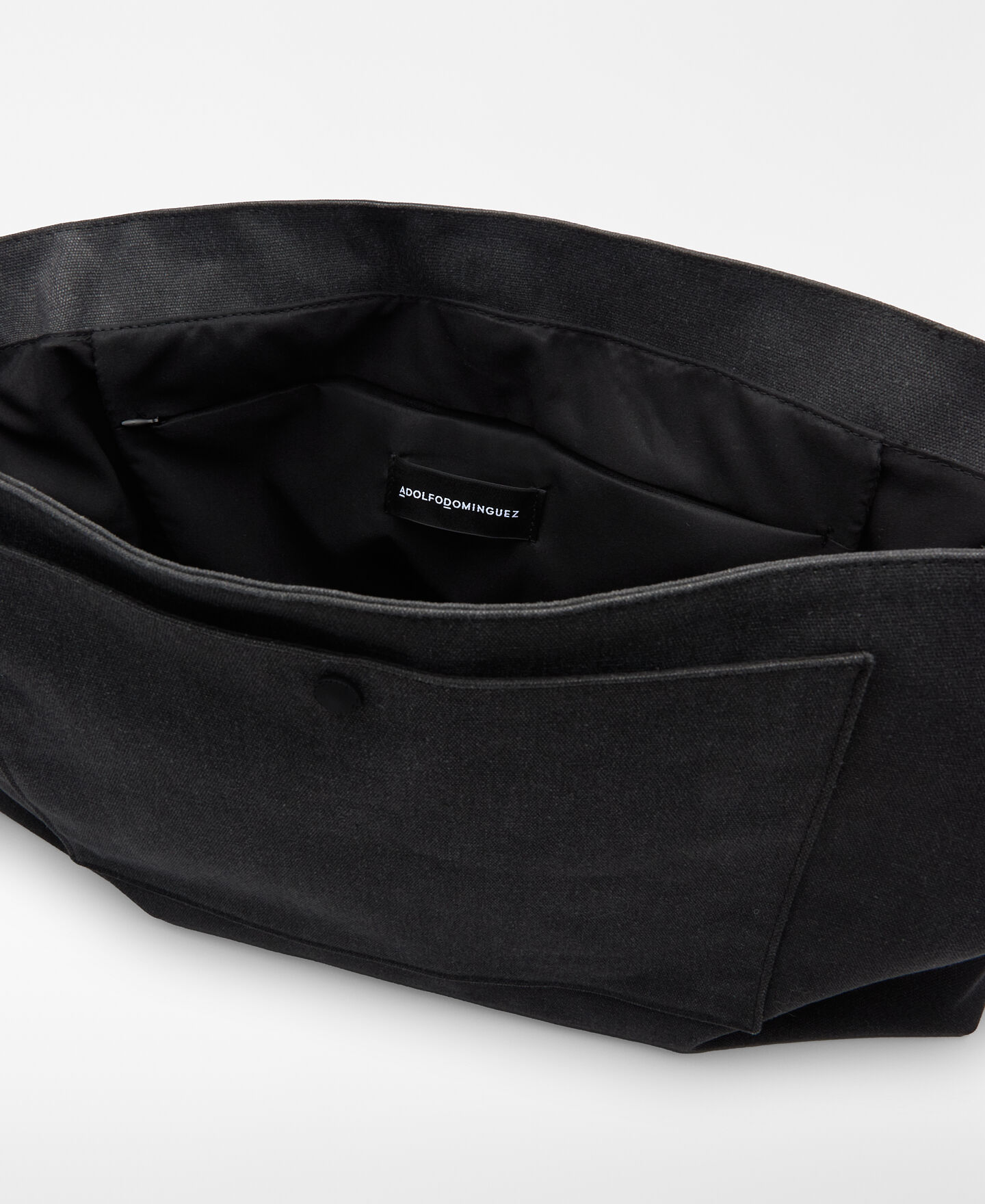Bolso messenger grande hombre. Un compartimento. Cierre solapa con detalle de corte diagonal en esquina inferior. Bolsillo interior. Bolsillo exterior con cierre cremallera en parte trasera. Asa regulable.