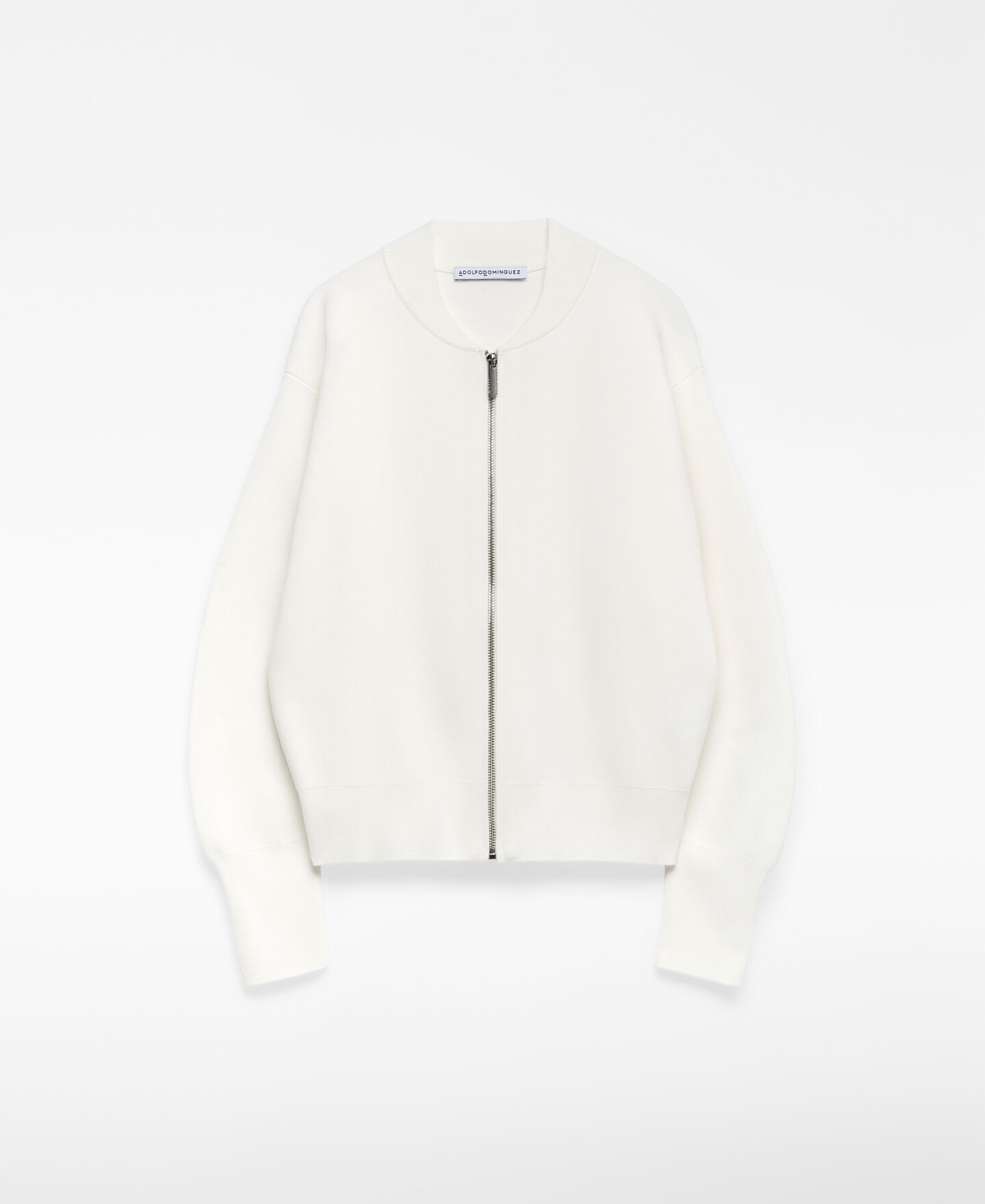 Bomber punto doble frontura mujer. Manga larga. Cierre cremallera frontal. Remates en canalé.