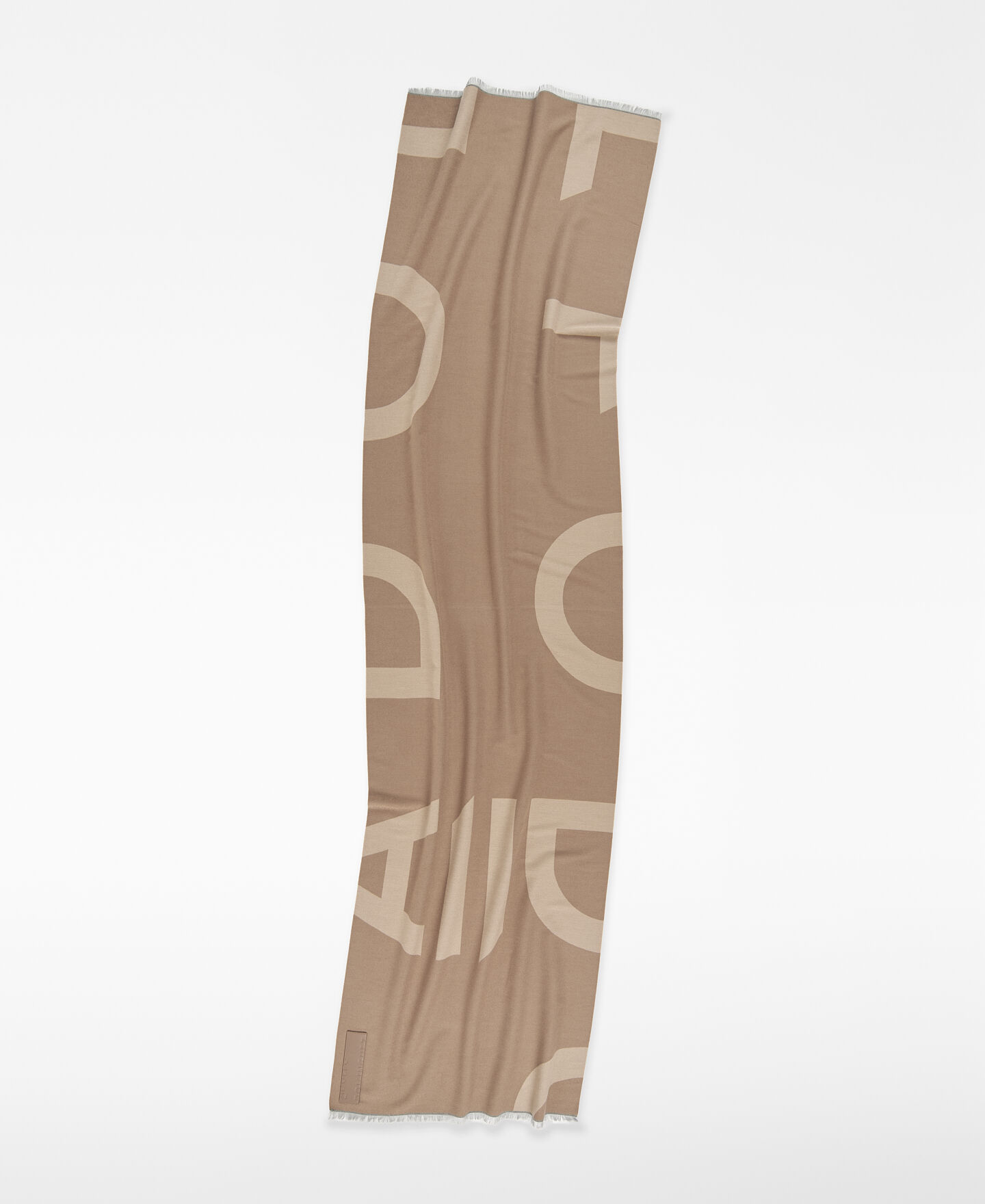 Bufanda bicolor maxi logo jacquard mujer. Acabado desflecado. Etiqueta exterior logotipada.