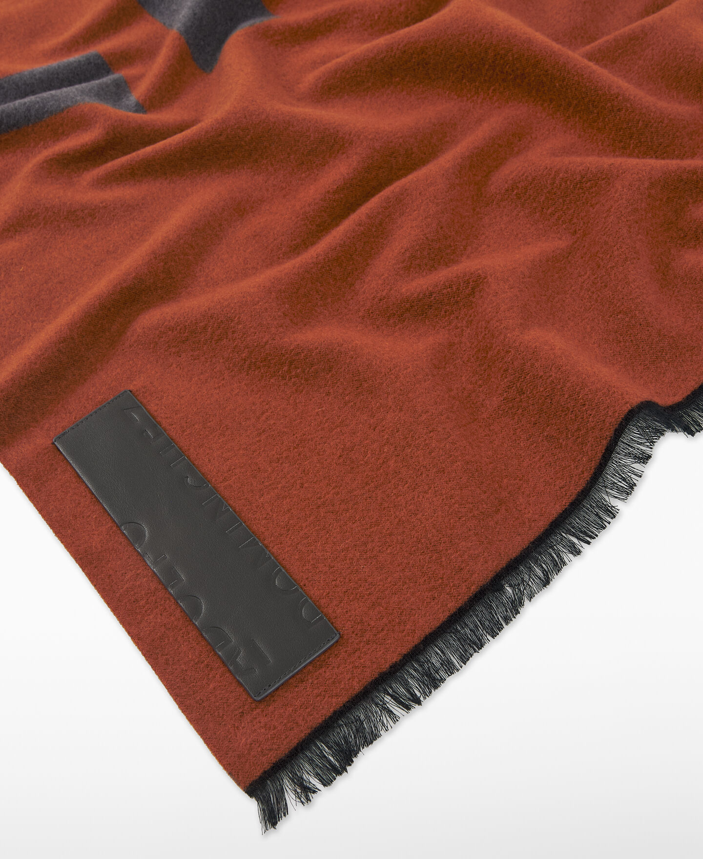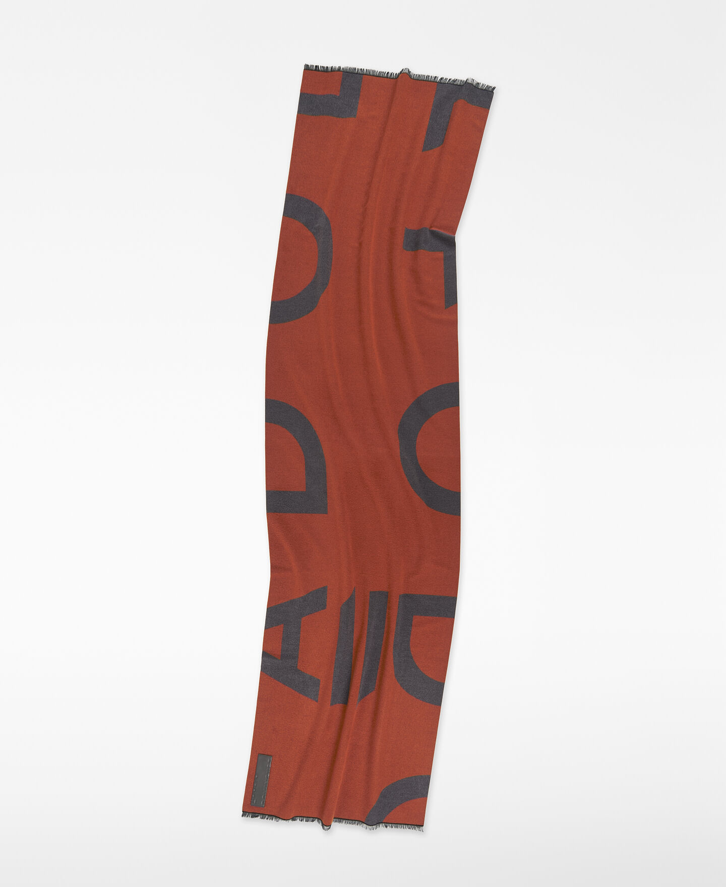 Bufanda bicolor maxi logo jacquard mujer. Acabado desflecado. Etiqueta exterior logotipada.