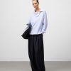 Camisa algodón mujer. Cuello solapa asimétrico. Botonadura lateral hacia sisa izquierda. Manga larga con tres botones en puño. Aberturas laterales. Canesú en espalda.