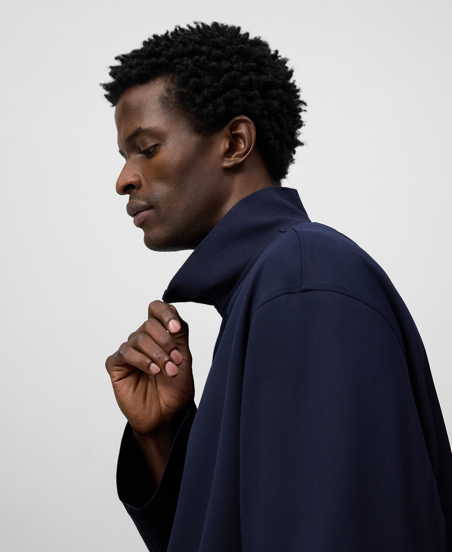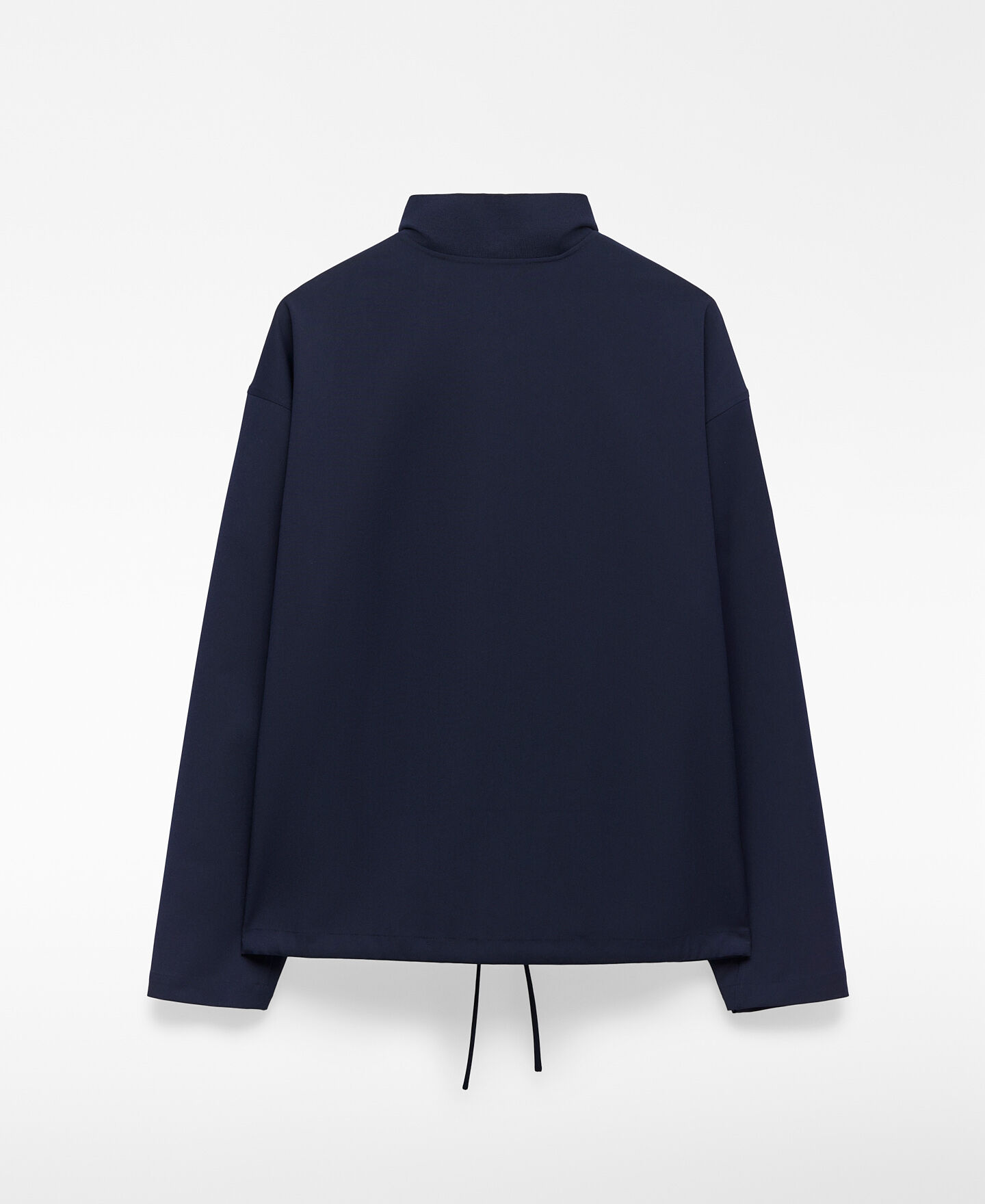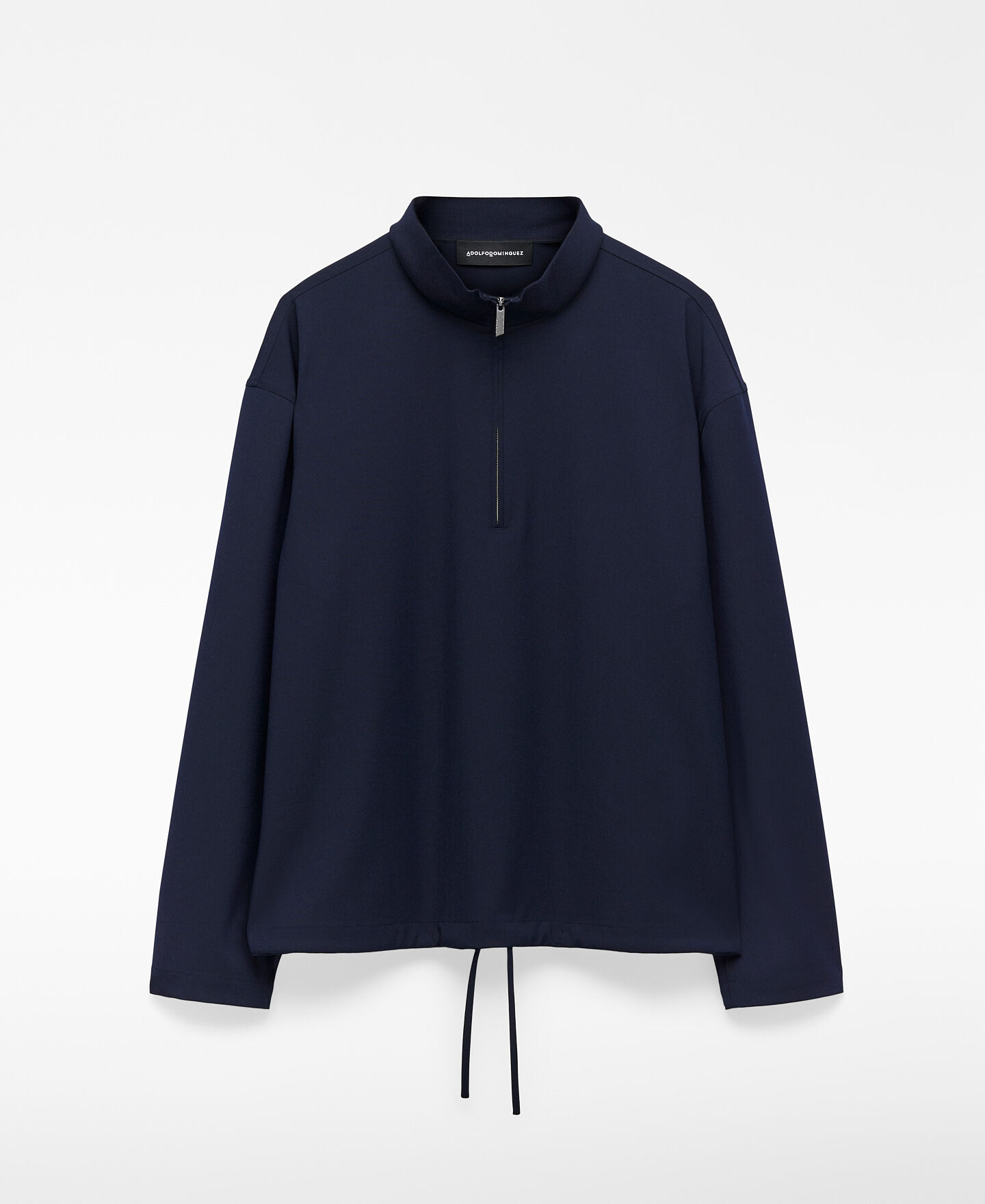 Camisa relaxed fit hombre. Cuello perkins con cierre cremallera. Manga larga. Cordón en bajo para fruncir.