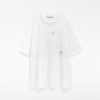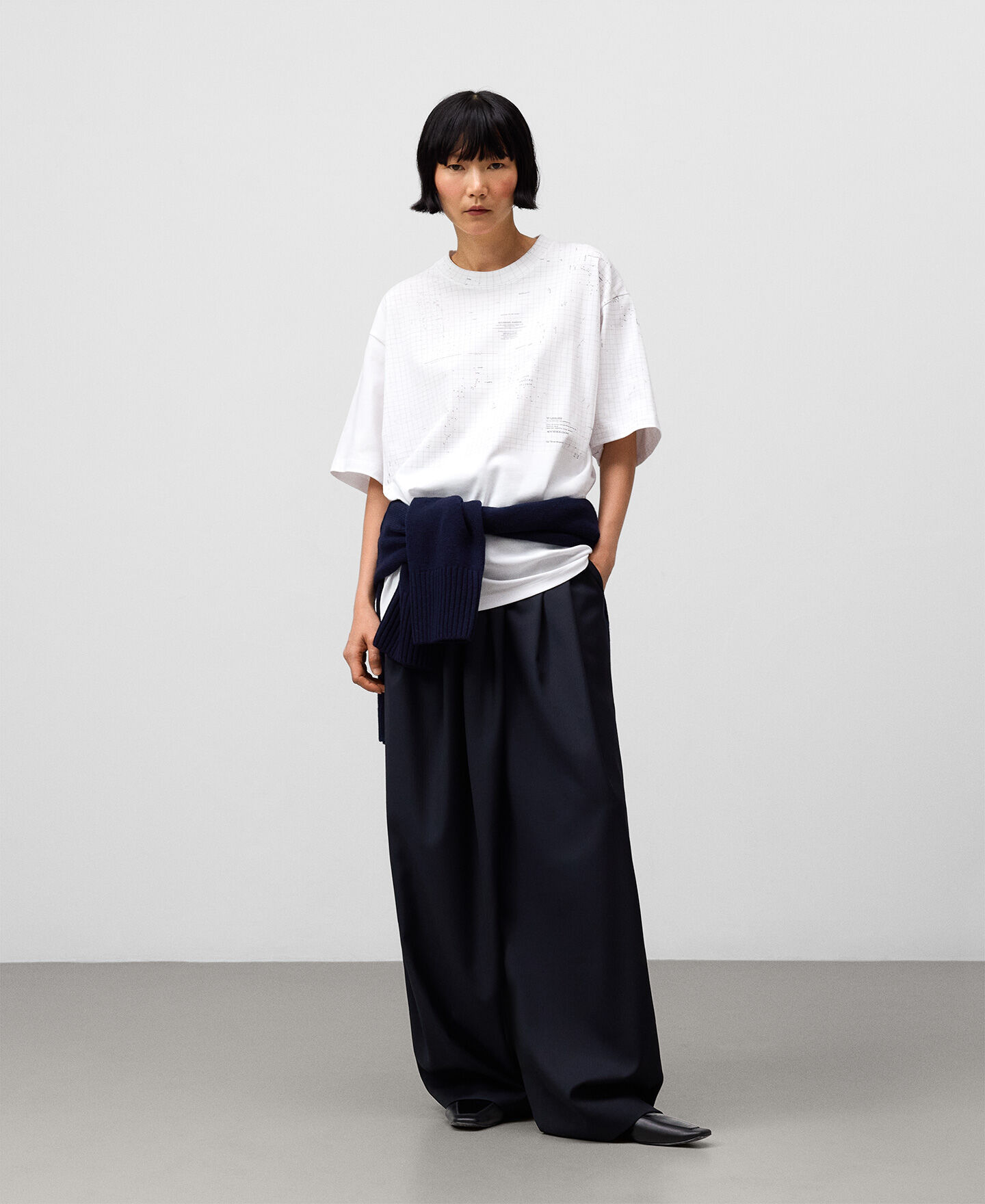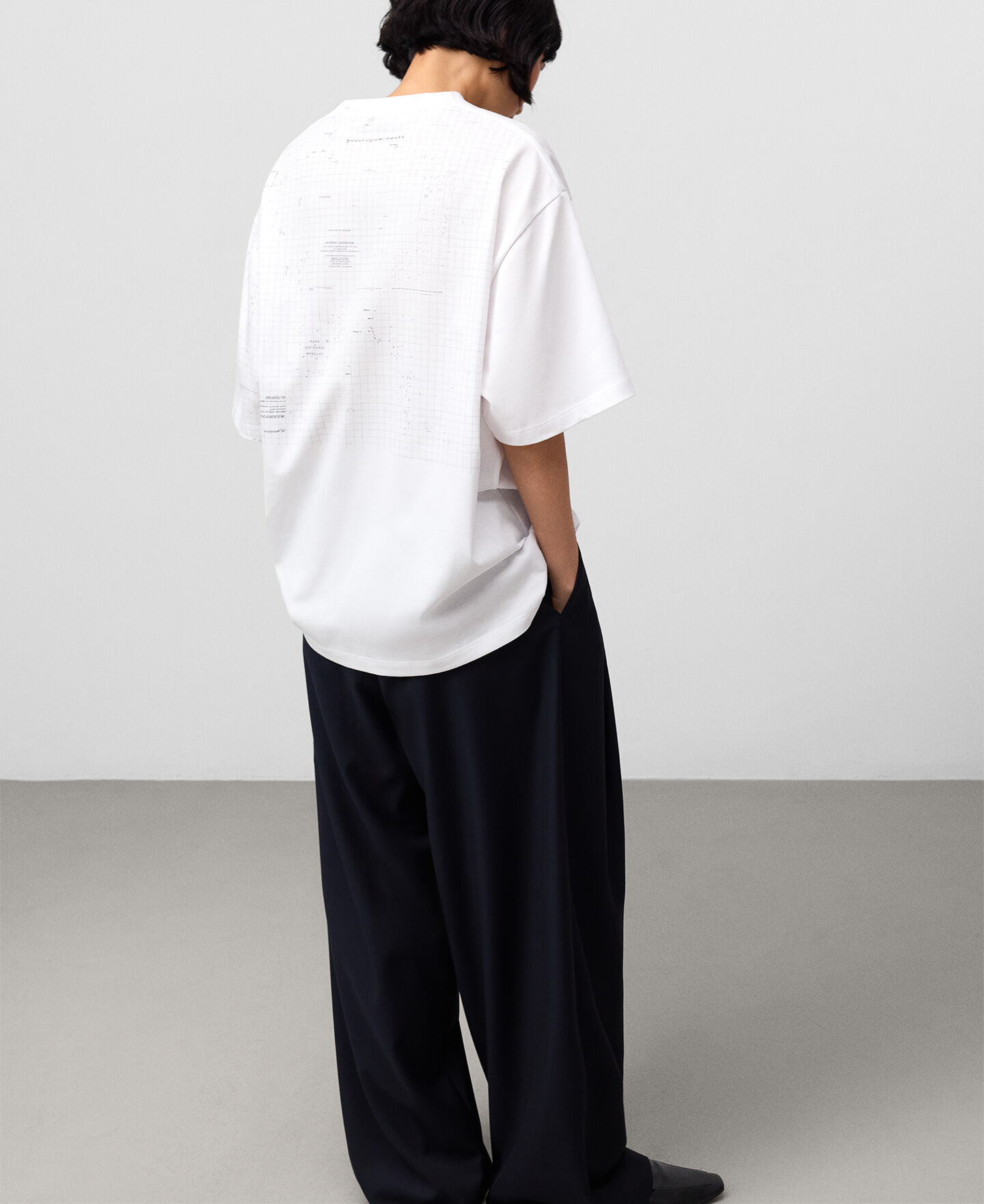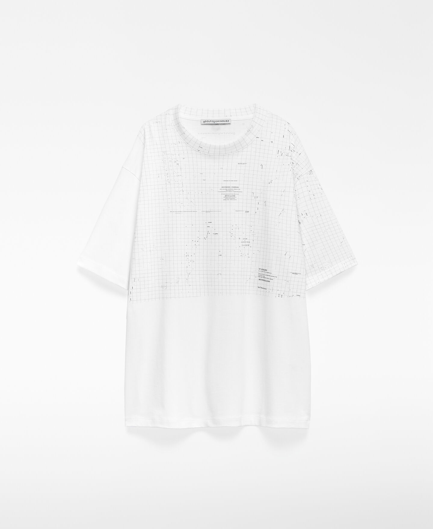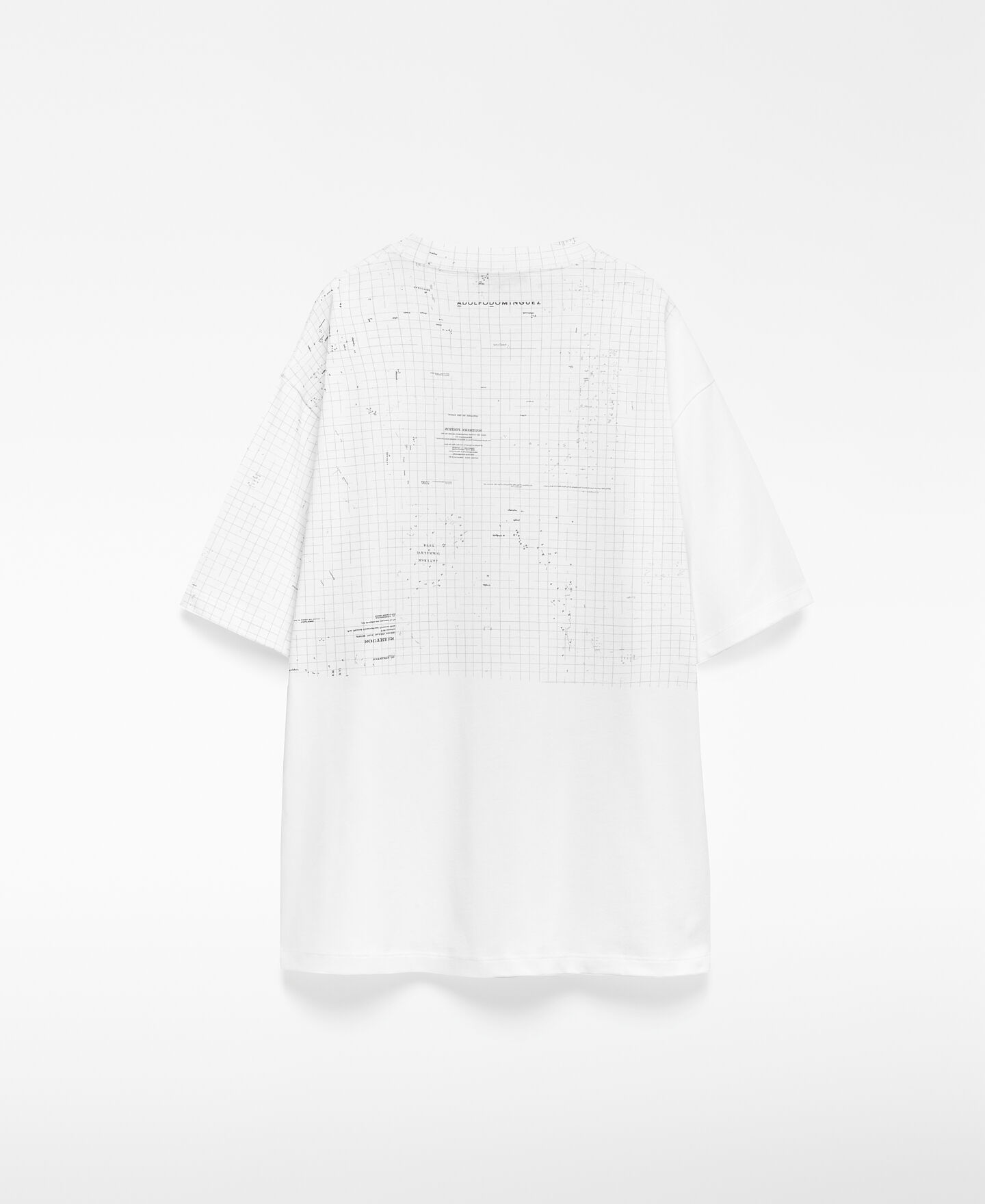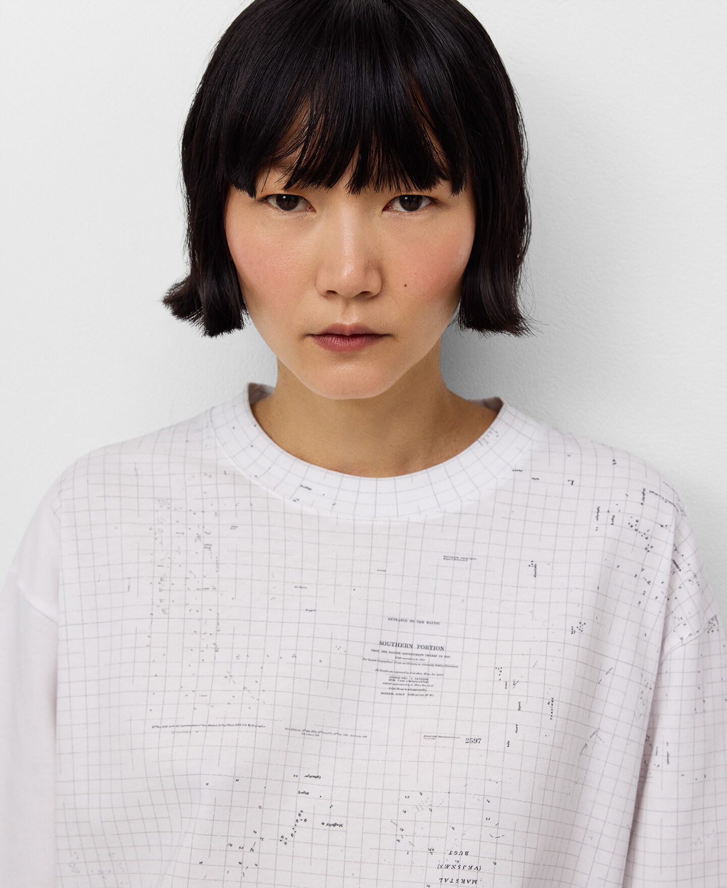 Camiseta recta algodón orgánico mujer. Relaxed fit. Cuello caja en canalé. Manga corta japonesa. Estampado cartográfico Colección Aqua posicionado en delantero y espalda.