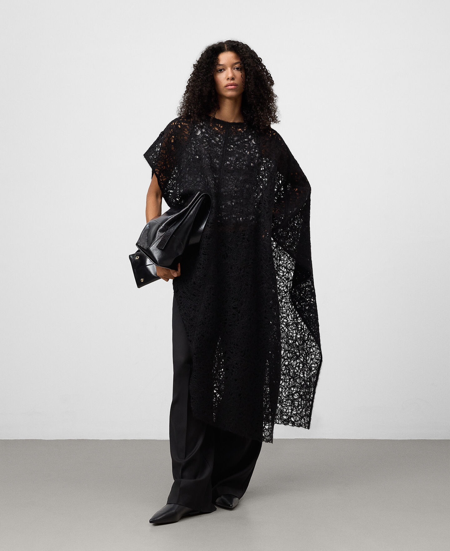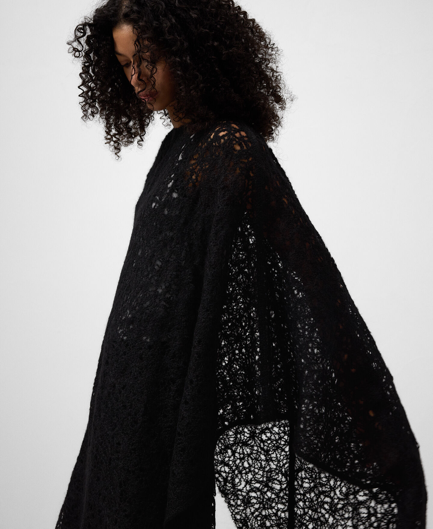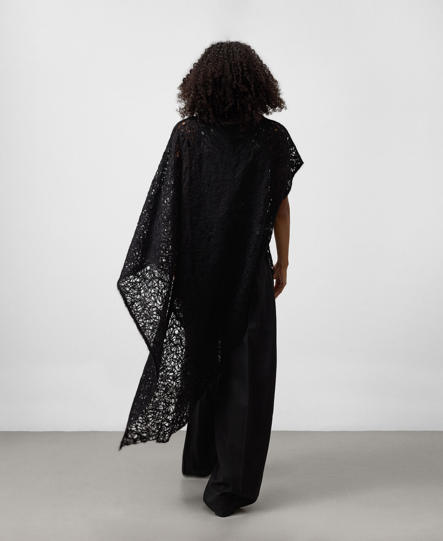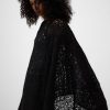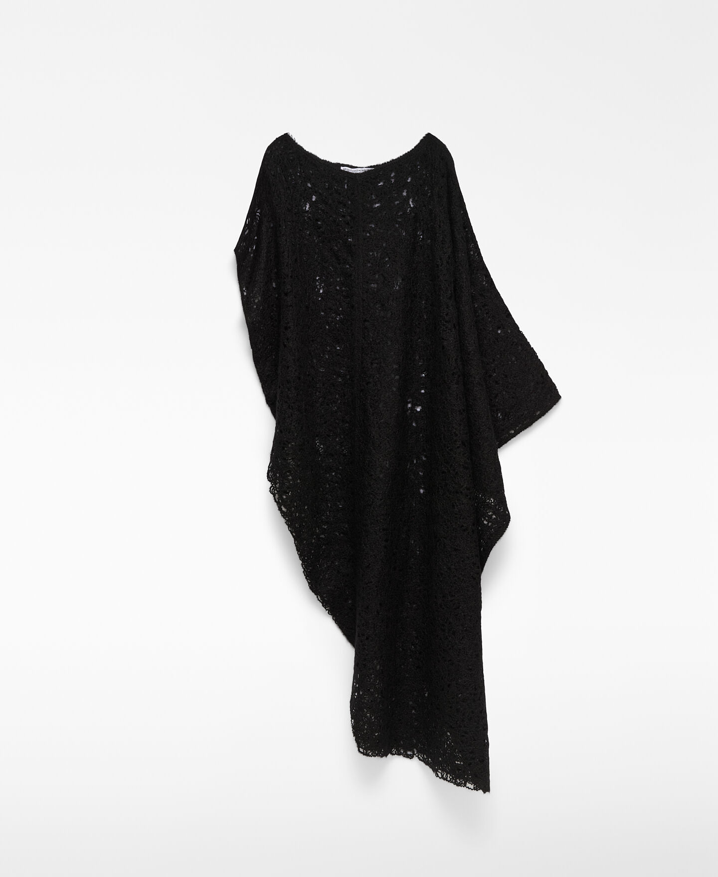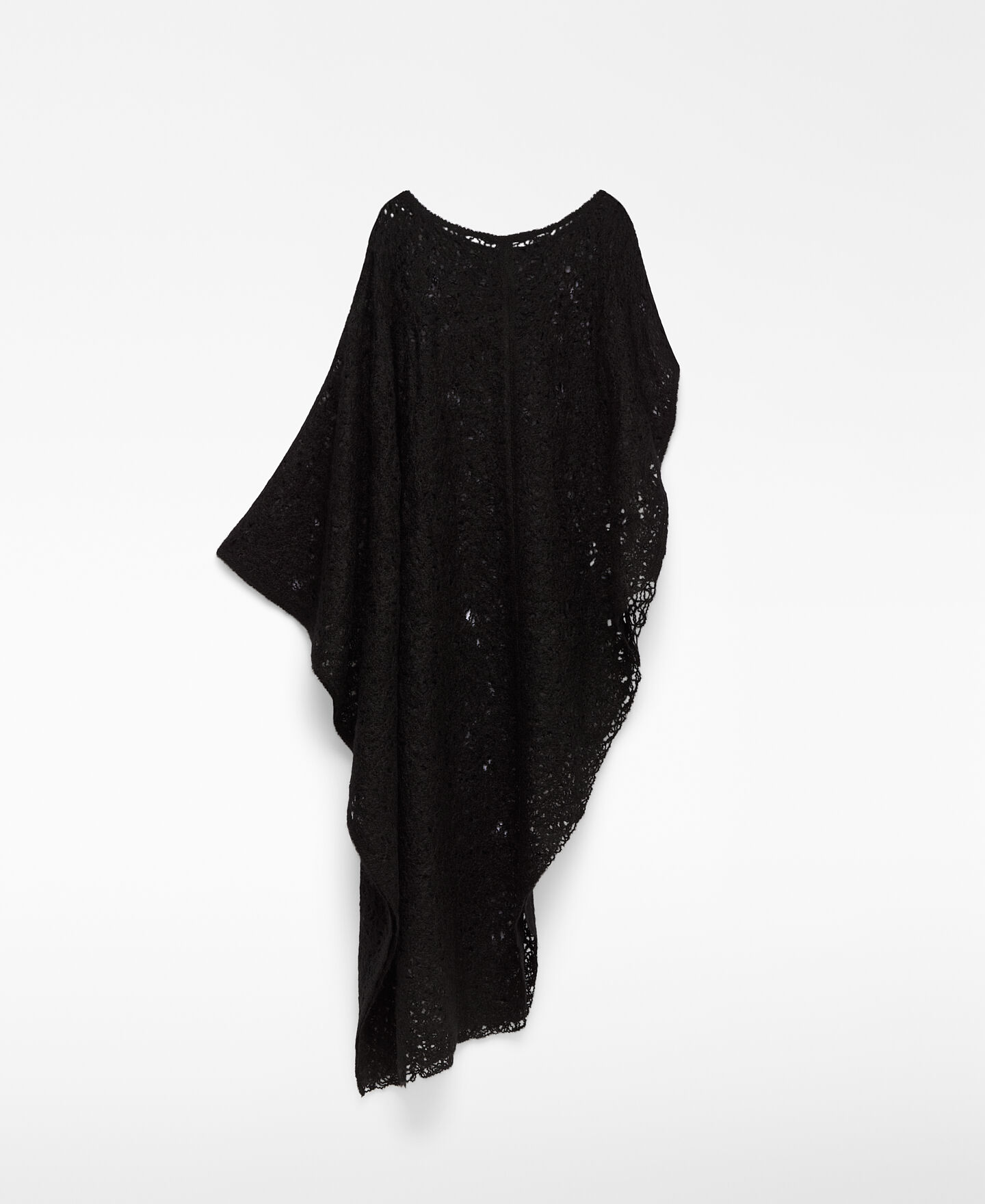 Capa asimétrica bordada punto cardado mujer. Escote redondeado. Aberturas laterales.