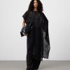 Capa asimétrica bordada punto cardado mujer. Escote redondeado. Aberturas laterales.