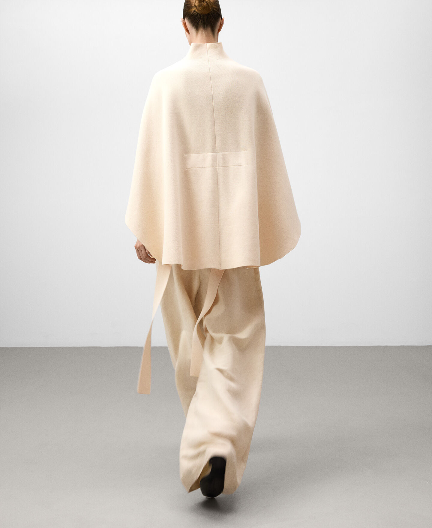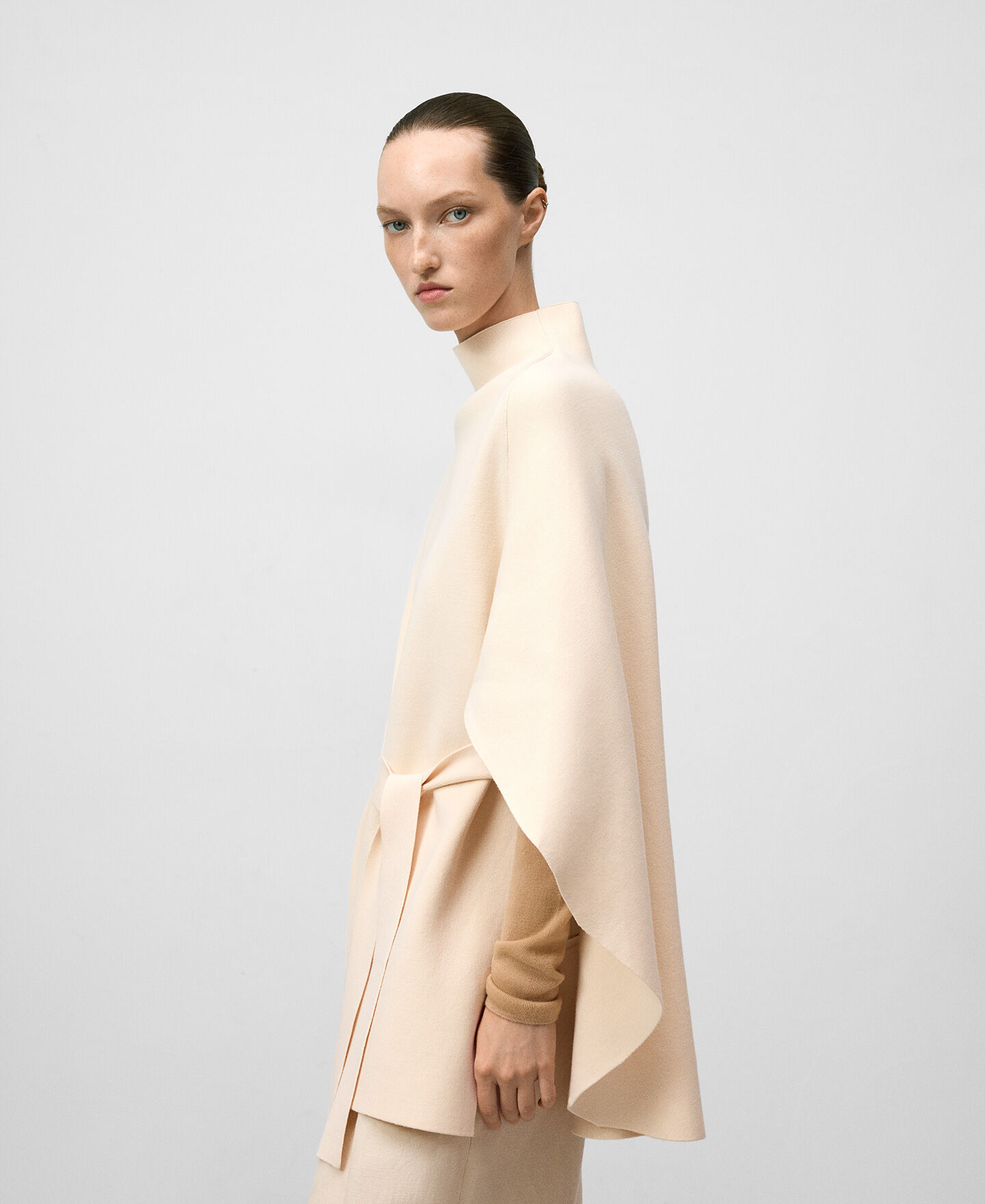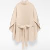 Capa punto doble frontura mujer. Cuello chimenea. Cinturón.