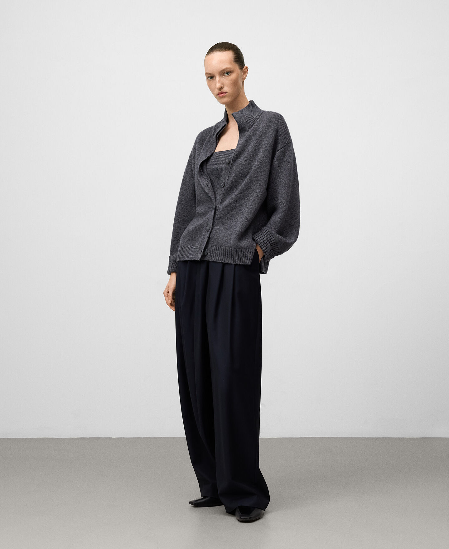 Cárdigan punto lana merino responsable mujer. Cuello perkins en canalé. Manga larga con hombro caído. Botonadura frontal. Remates en canalé. Etiqueta exterior logotipada en espalda.