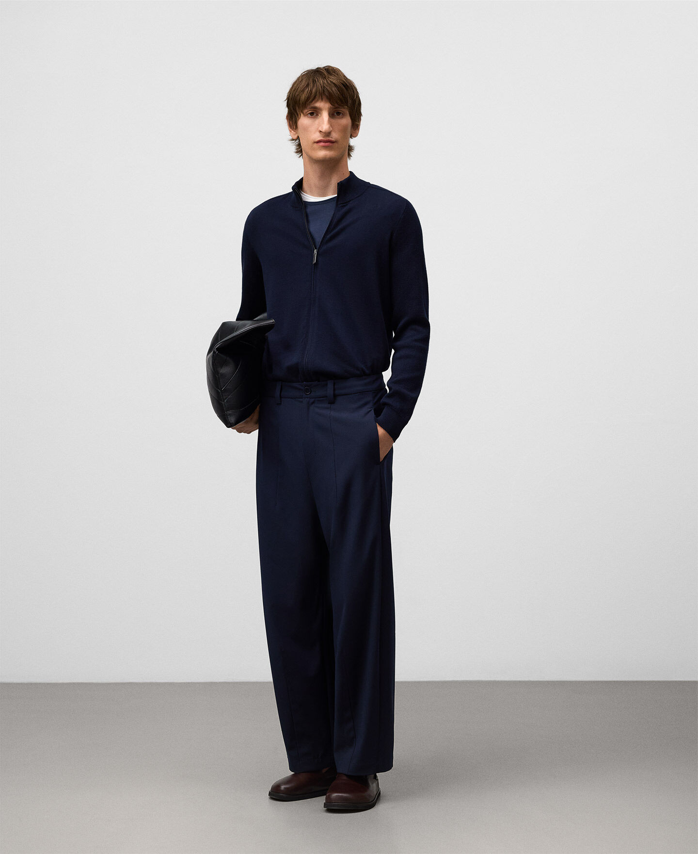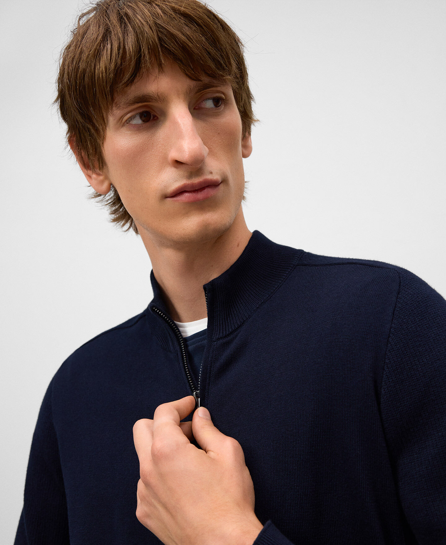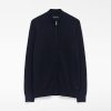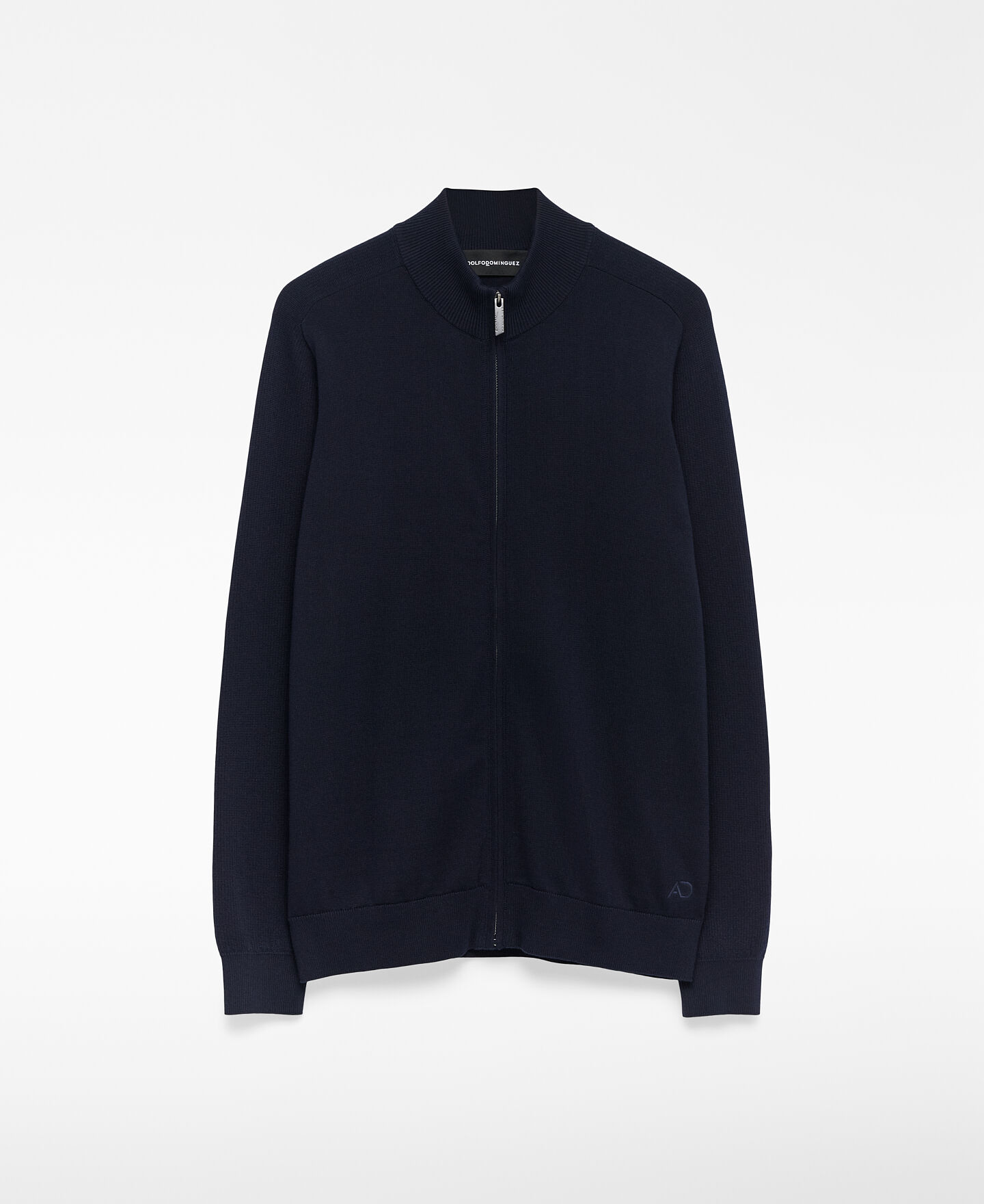 Cárdigan punto algodón orgánico hombre. Cuello alto. Manga inglesa. Detalle de menguados en sisa. Cierre cremallera frontal oculta con vivos. Remates en canalé. Logo bordado en bajo.