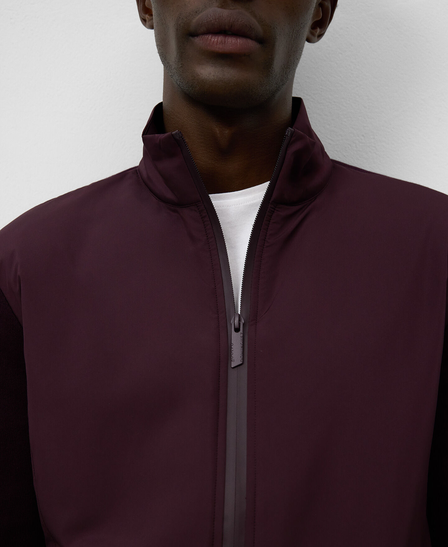 Cárdigan hombre. Delantero en nailon. Punto en manga y espalda. Manga larga. Cuello alto. Cierre cremallera impermeable. Bolsillos de vivo en delantero. Bajo en canalé. Cárdigan hombre. Delantero en nailon. Punto en manga y espalda. Manga larga. Cuello alto. Cierre cremallera impermeable. Bolsillos de vivo en delantero. Bajo en canalé.