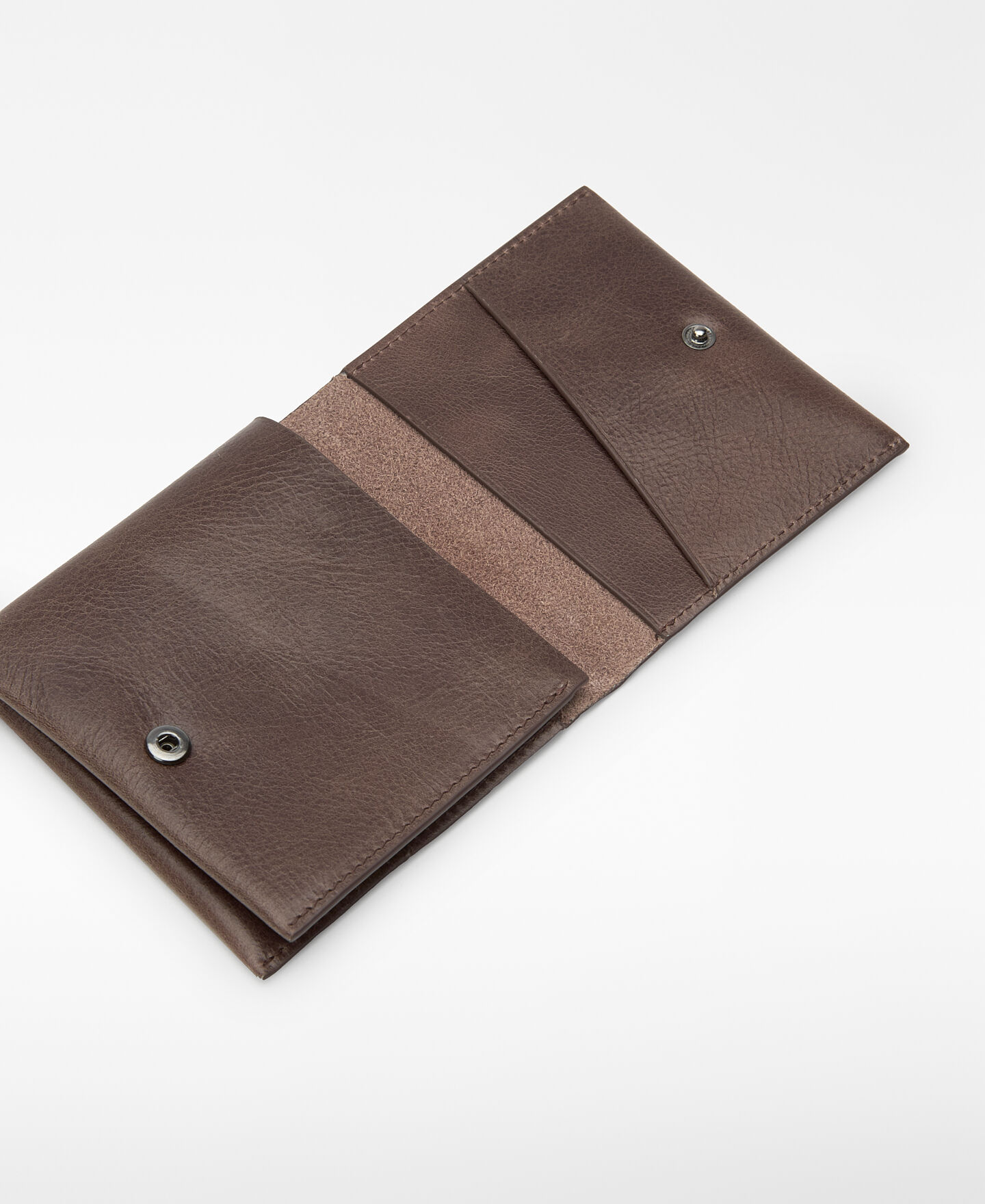 Cartera piel hombre. Desplegable en tres piezas. Cierre broche.
