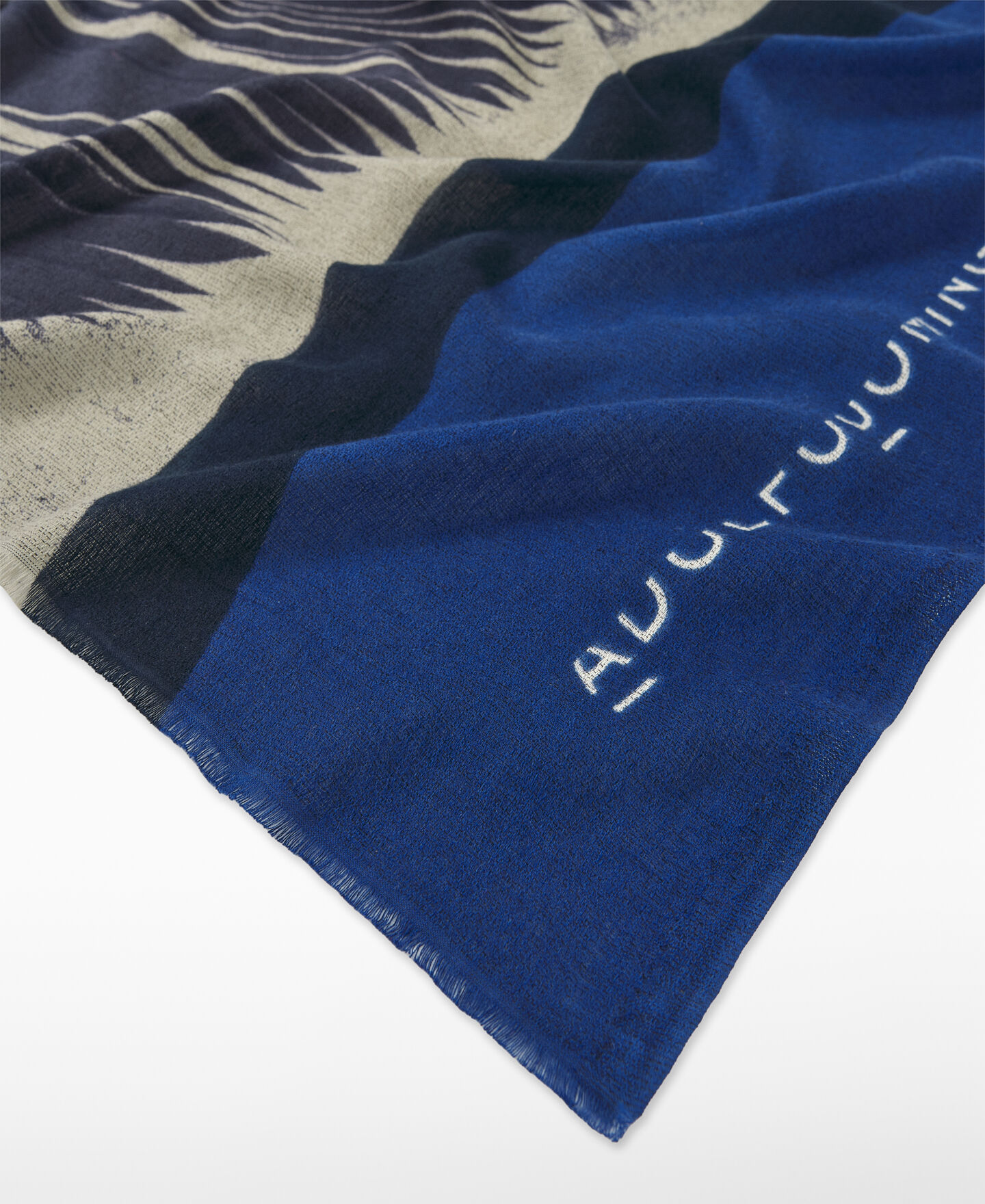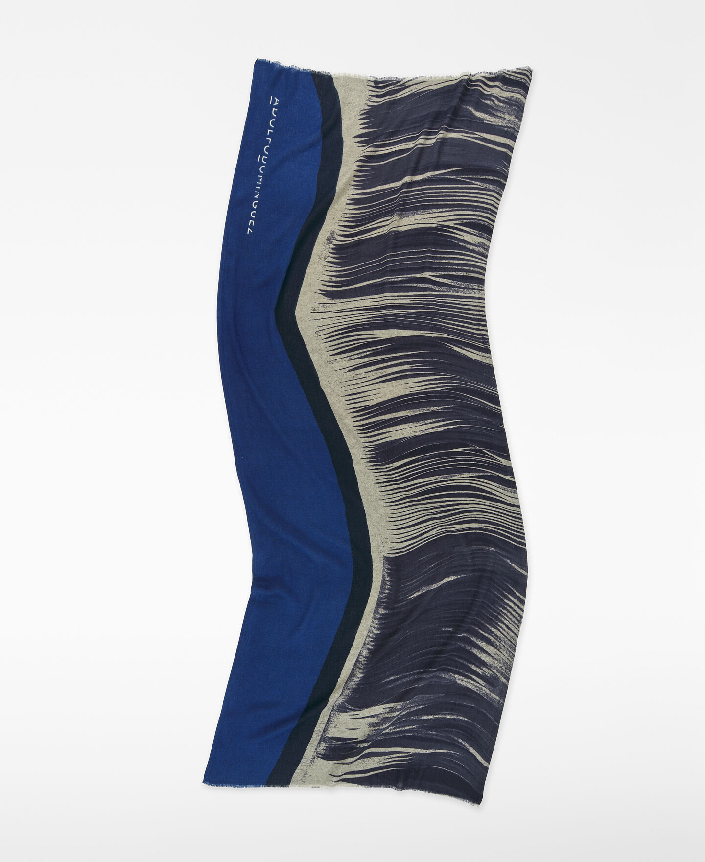Chal estampado algodón orgánico mujer. Logo estampado. Acabado desflecado.
