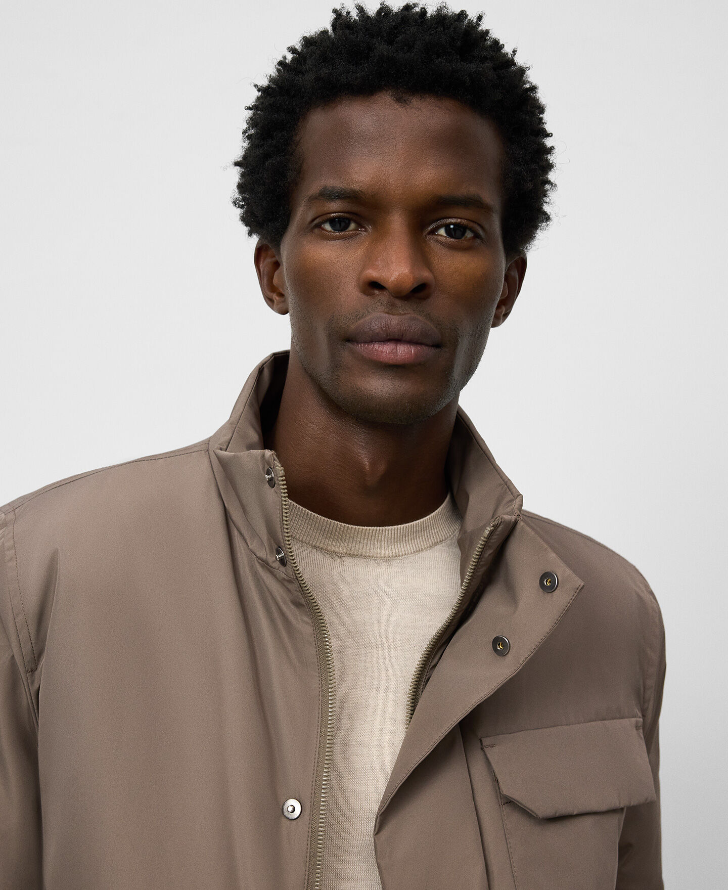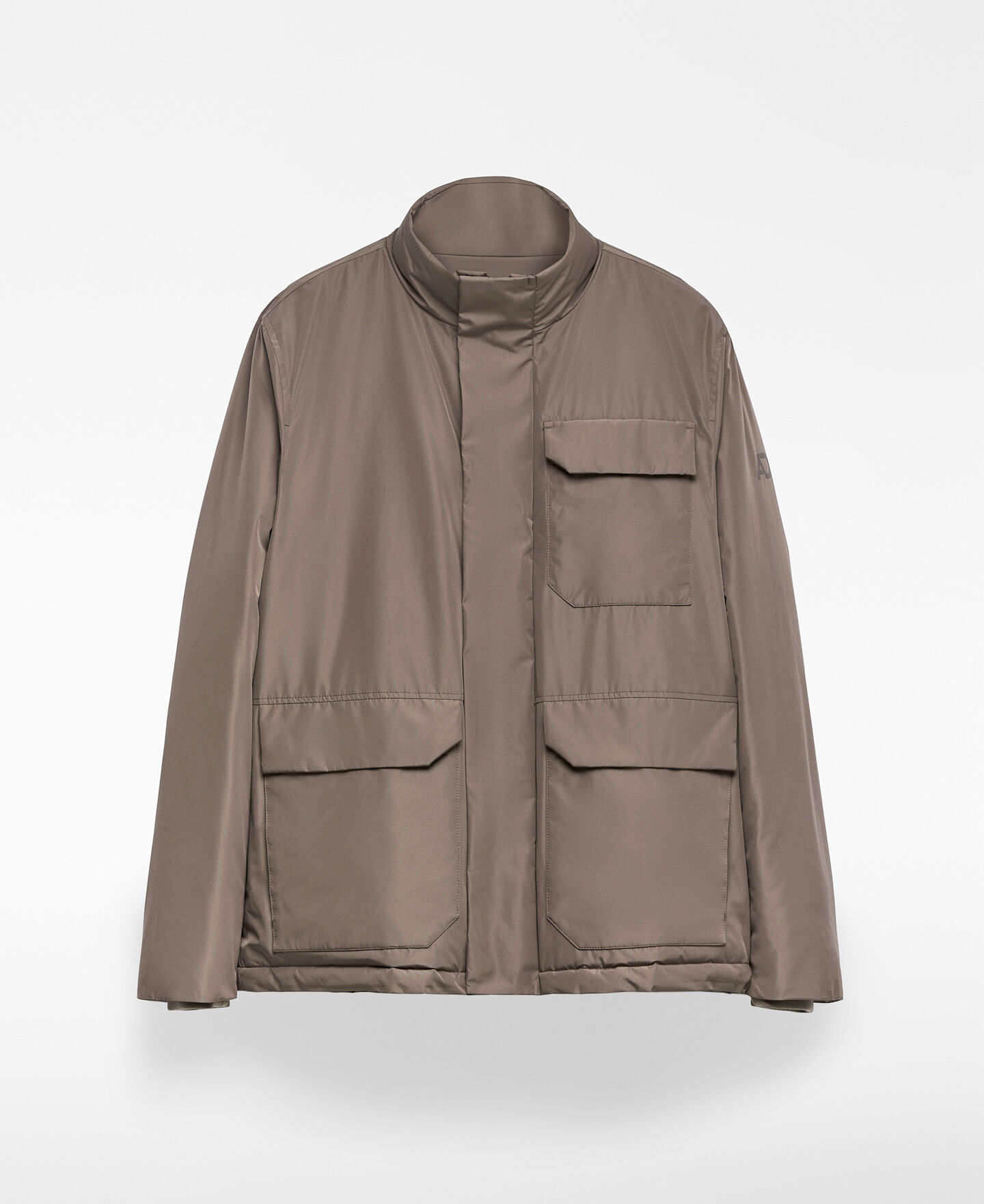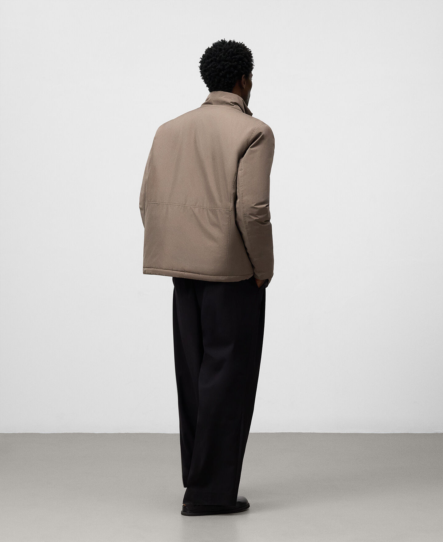 Chaqueta corta acolchada hombre. Cuello tira. Manga larga. Cierre cremallera frontal oculta por sopata. Bolsillos de plastrón con solapa en delantero.
