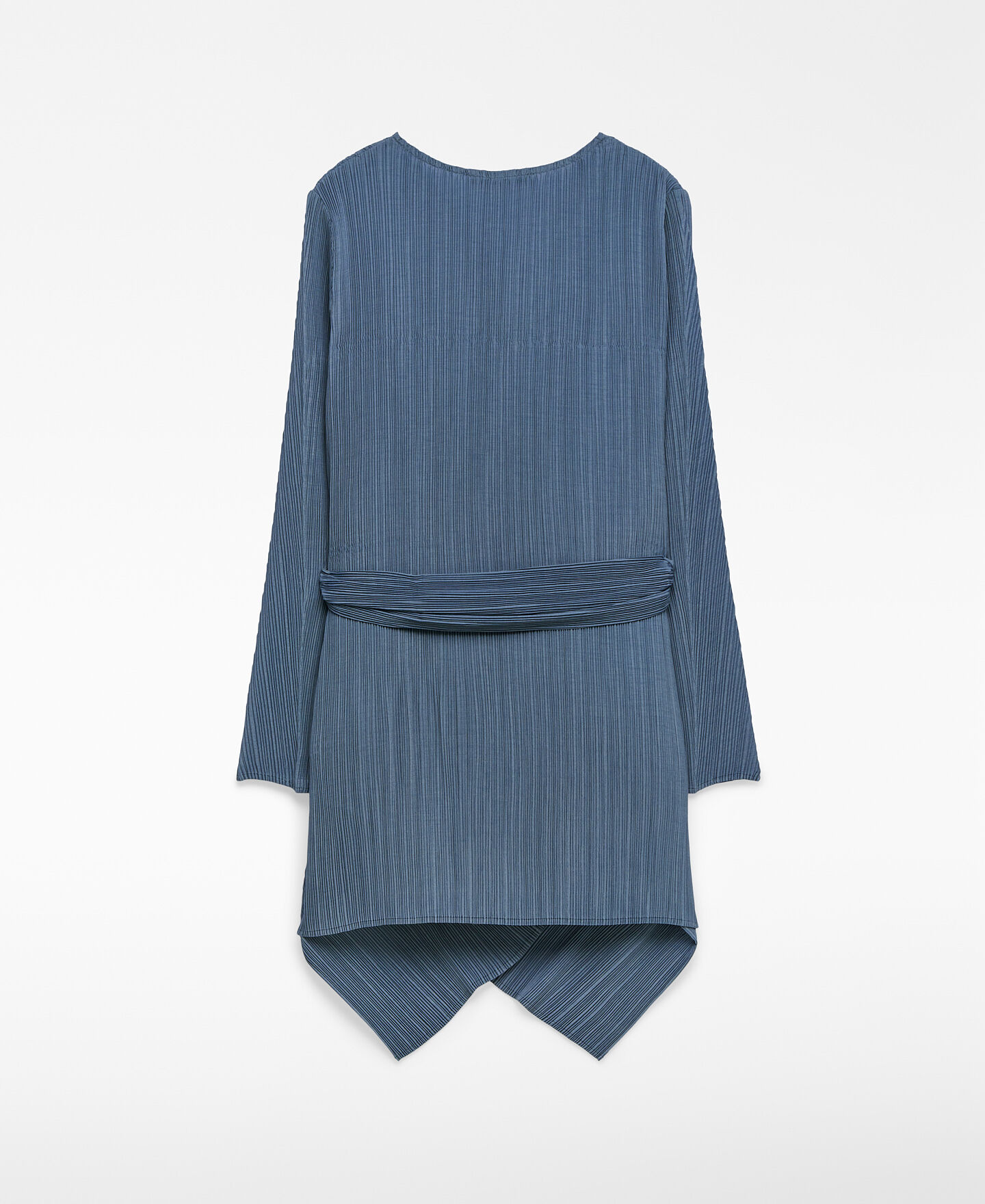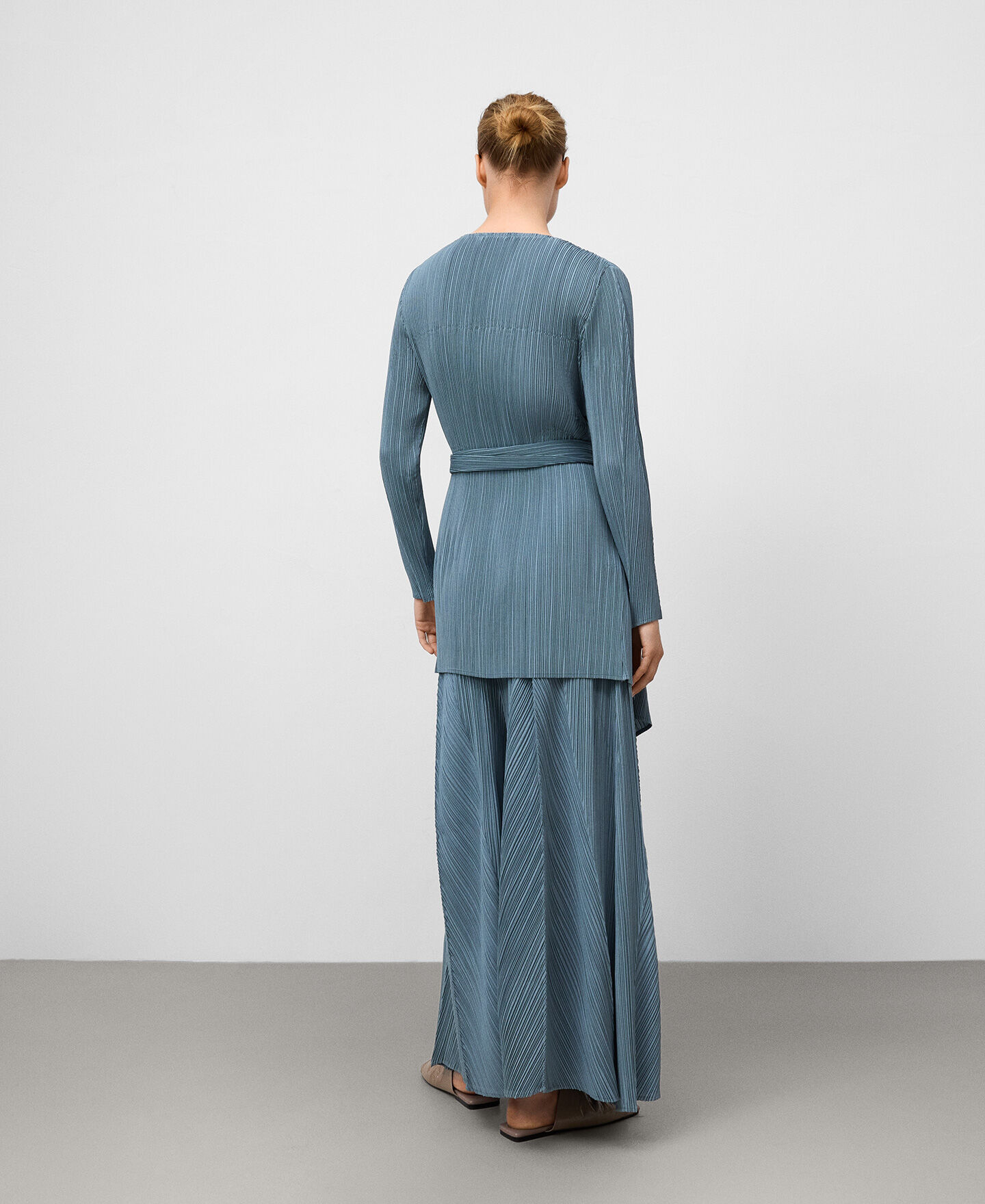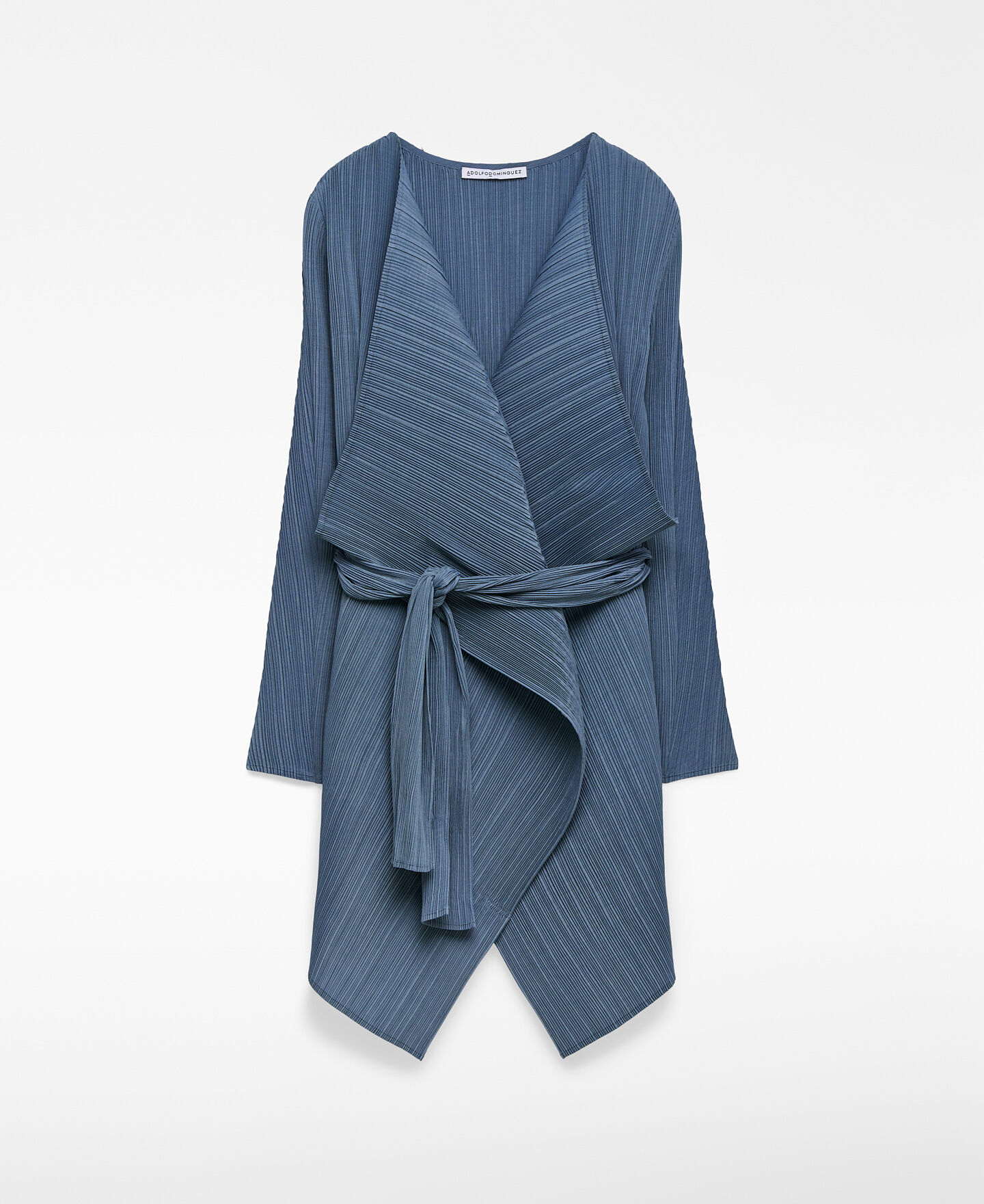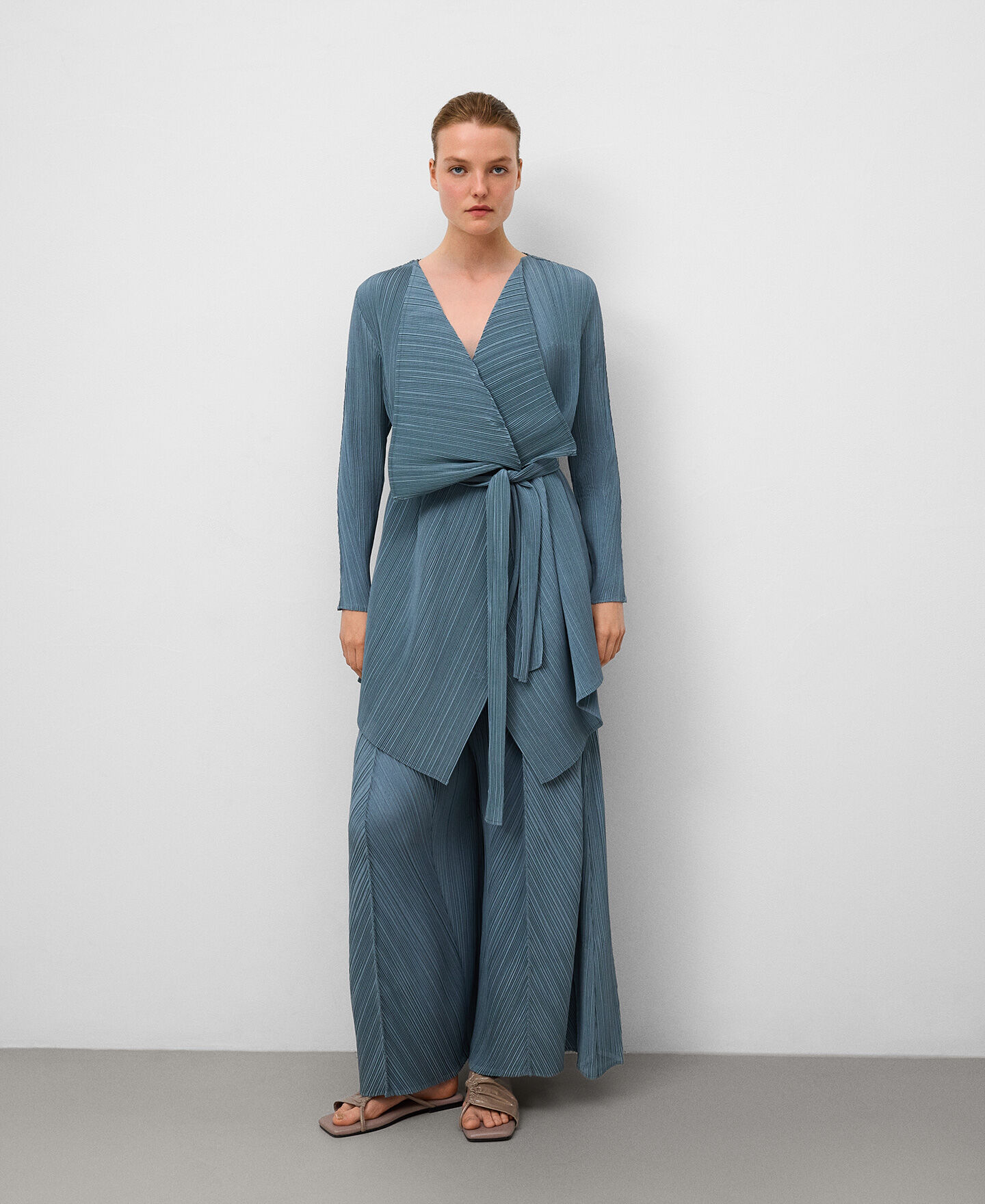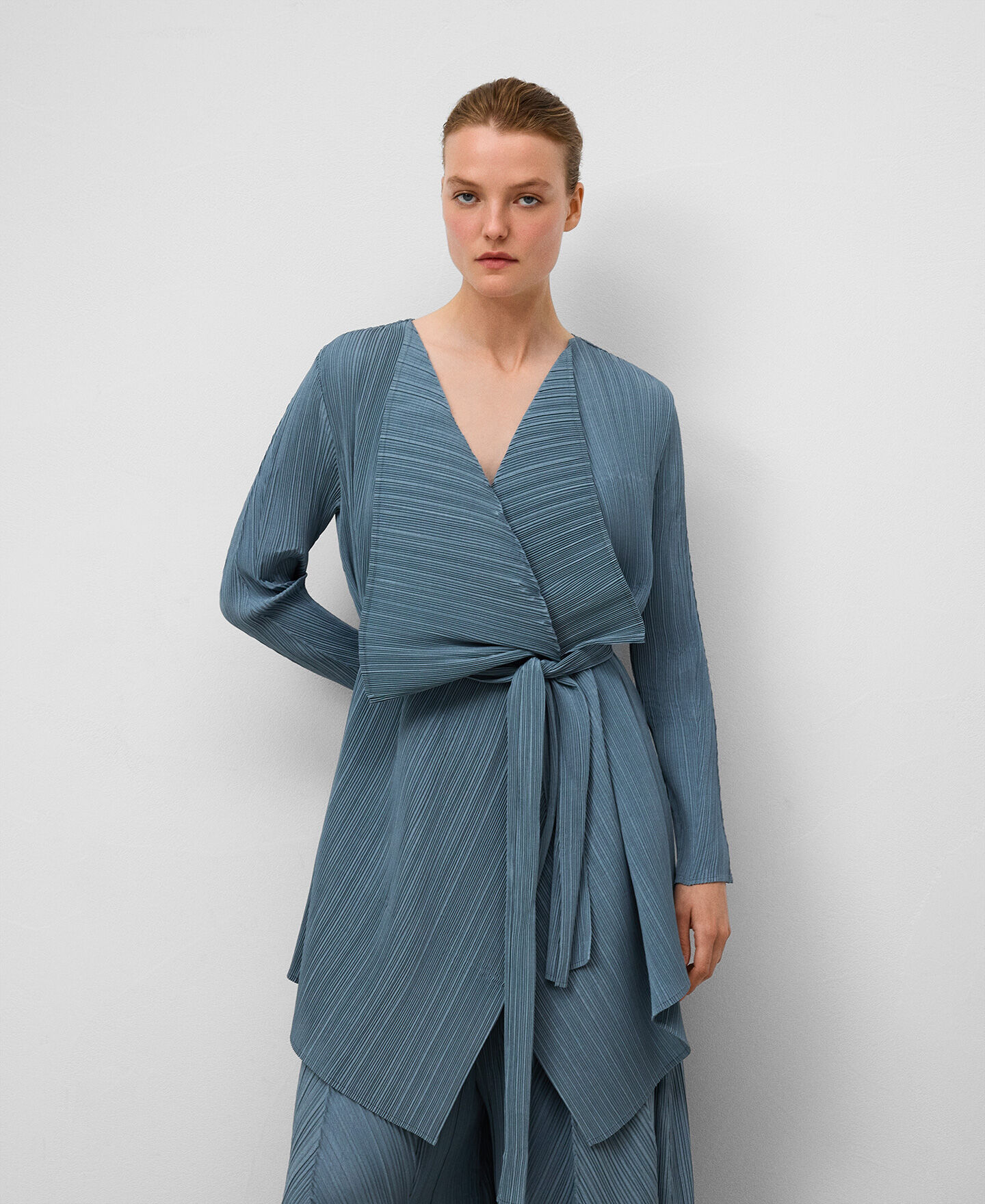 Adolfo Domínguez Chaqueta Cruzada Crinkle Mujer | Gris Azul | Mujer Ropa