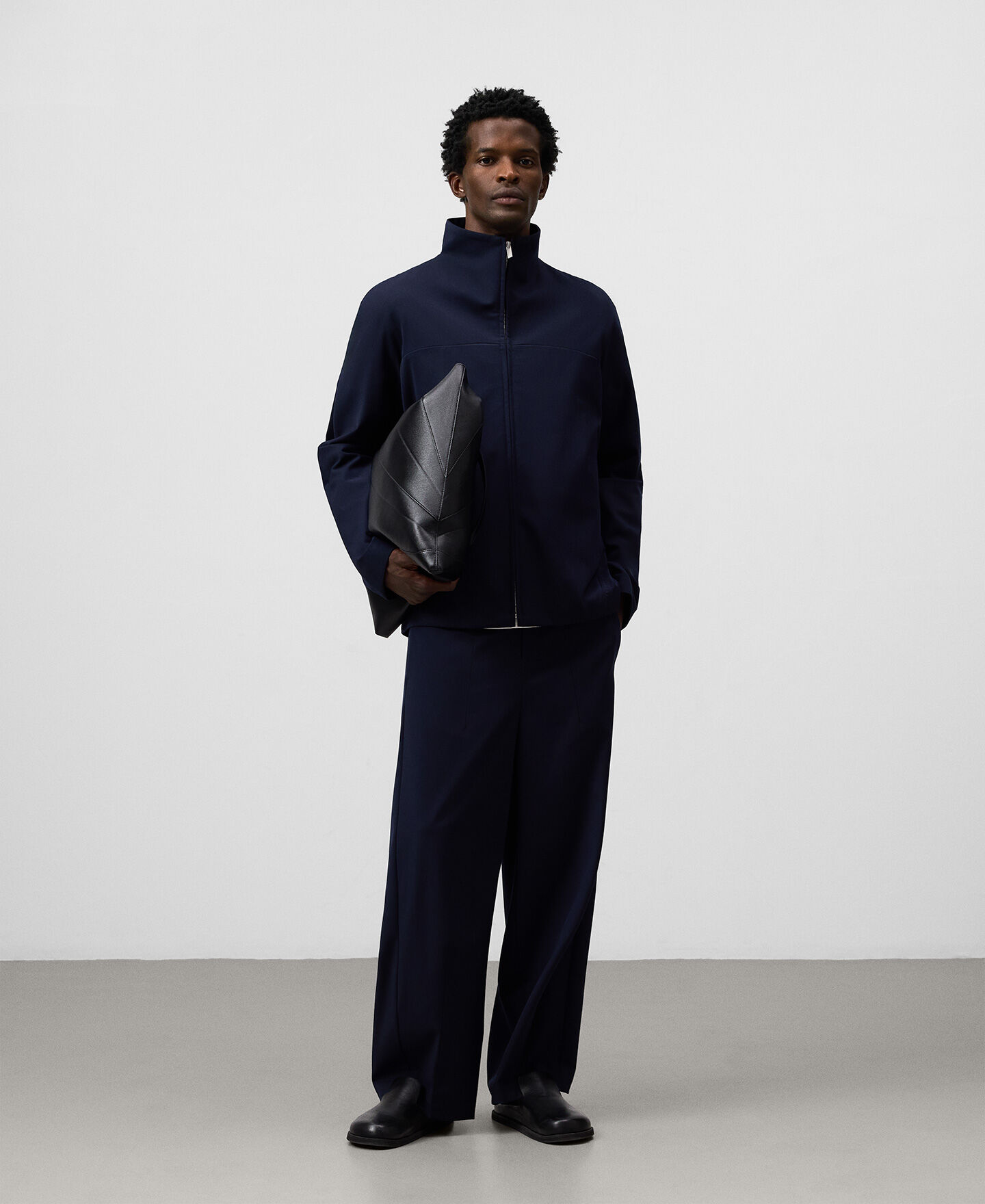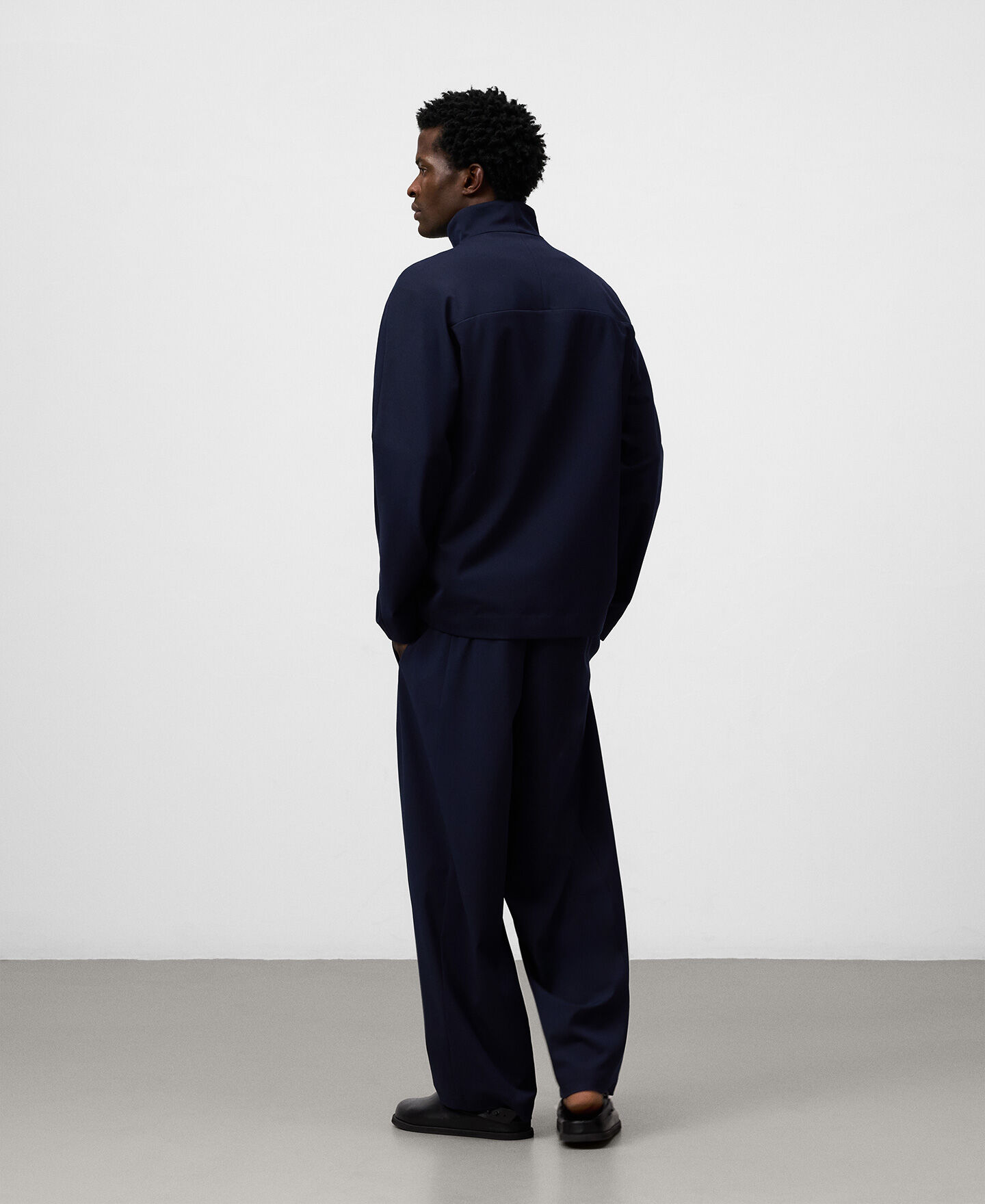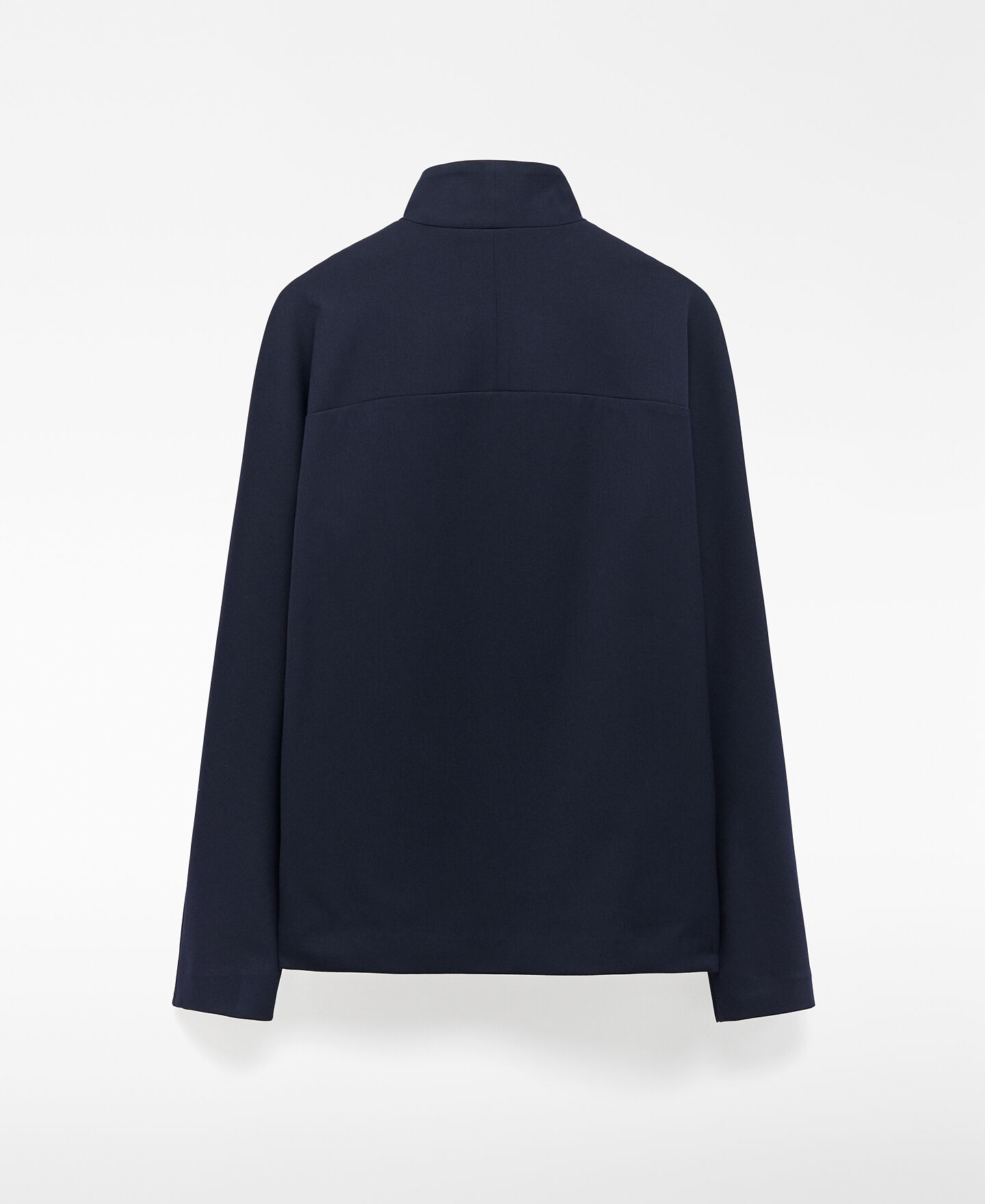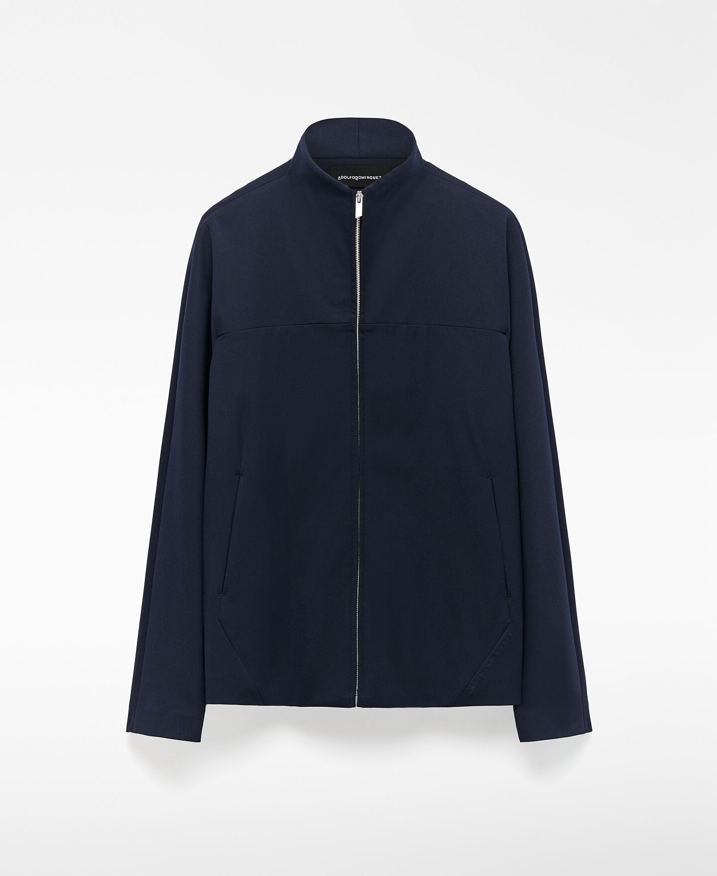 Chaqueta nailon y viscosa hombre. Cierre cremallera. Cuello Mao. Bolsillos laterales en vivo. Bajo recto.