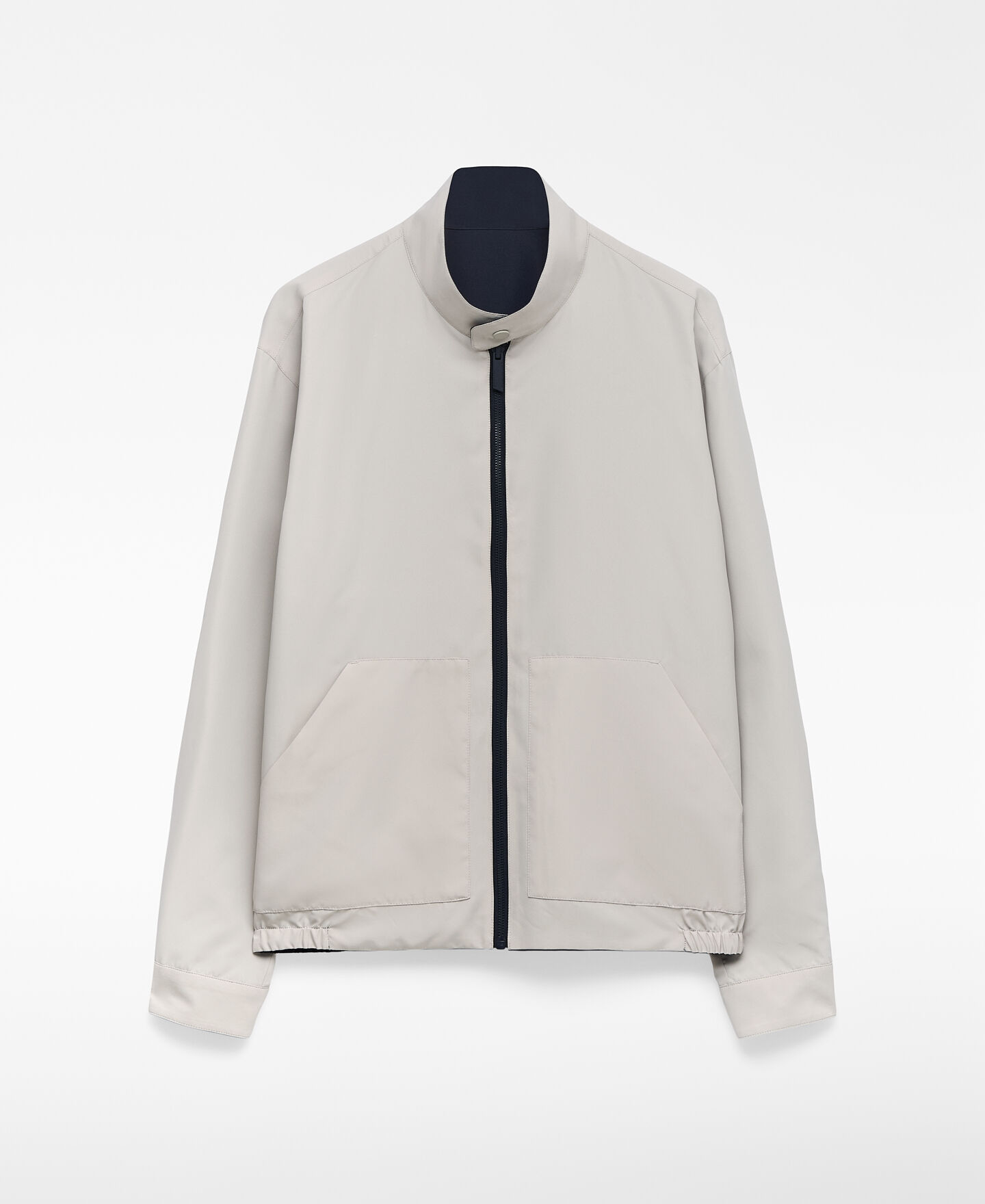 Chaqueta reversible nailon hombre. Cuello tira con cierre broche. Manga larga con cierre broche en puño. Cierre cremallera frontal. Bolsillos en delantero. Bajo elástico. Logo grabado.