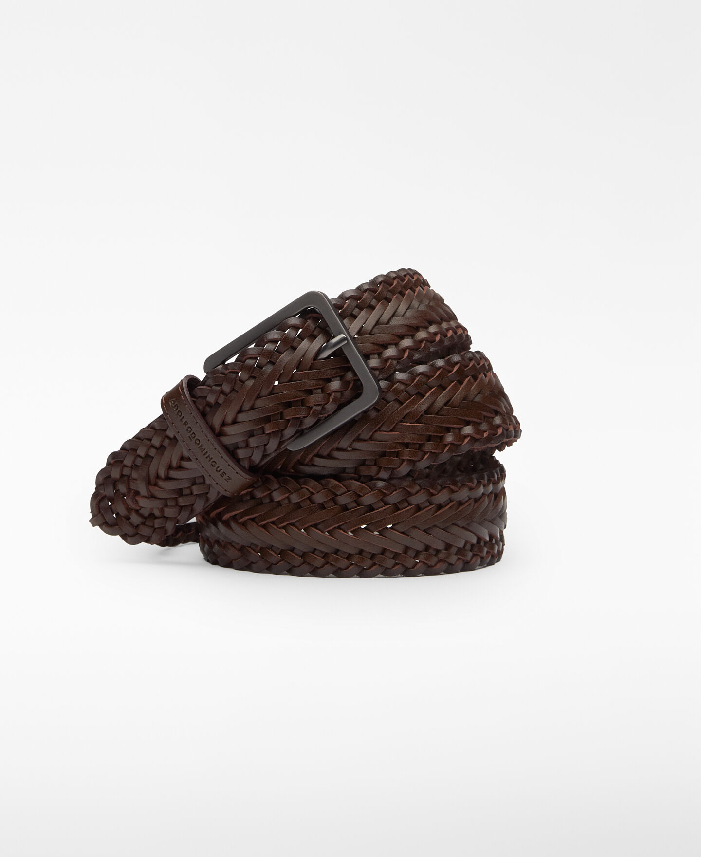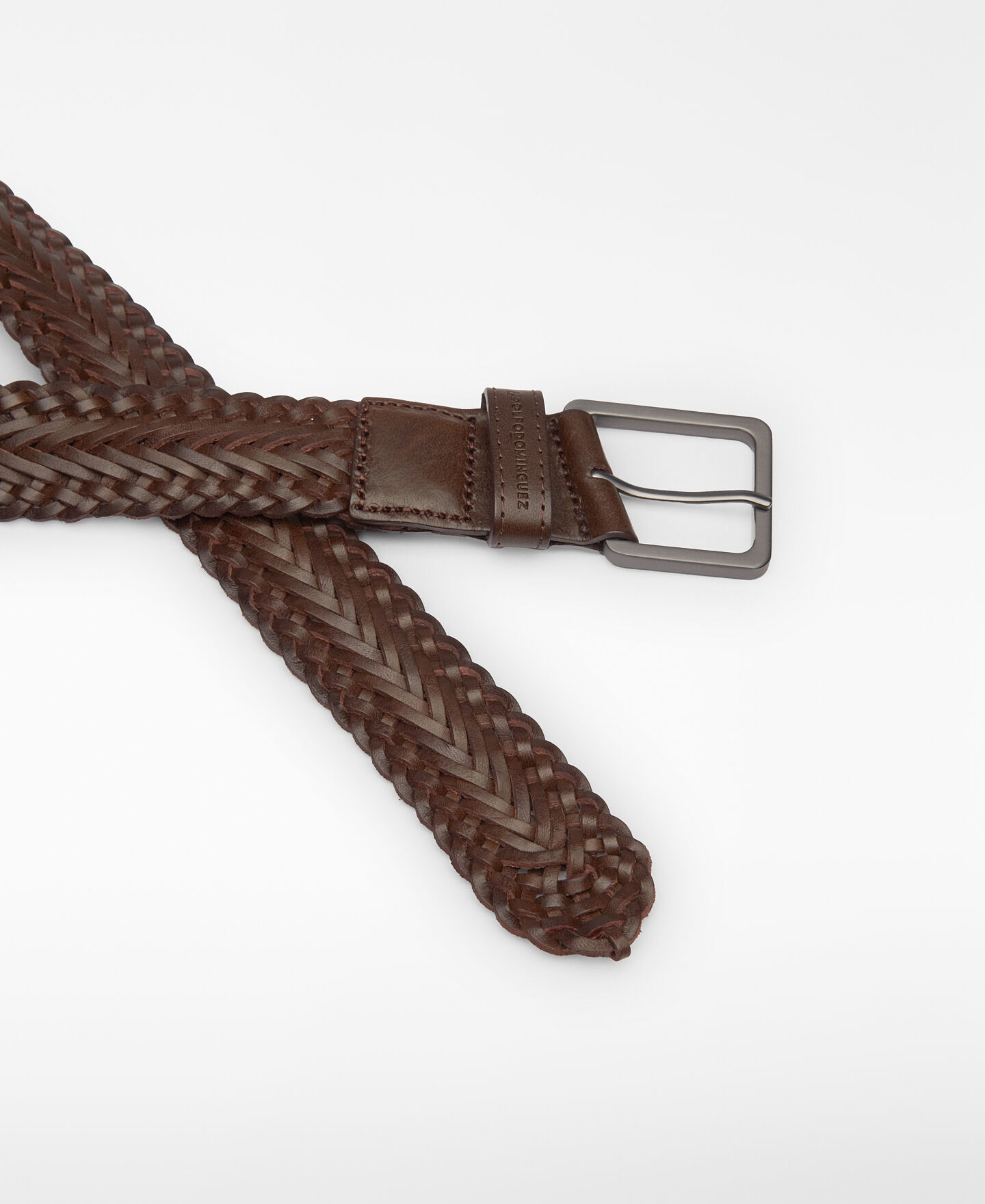 Cinturón trenzado piel hombre. Cierre hebilla metálica. Logo grabado en trabilla.