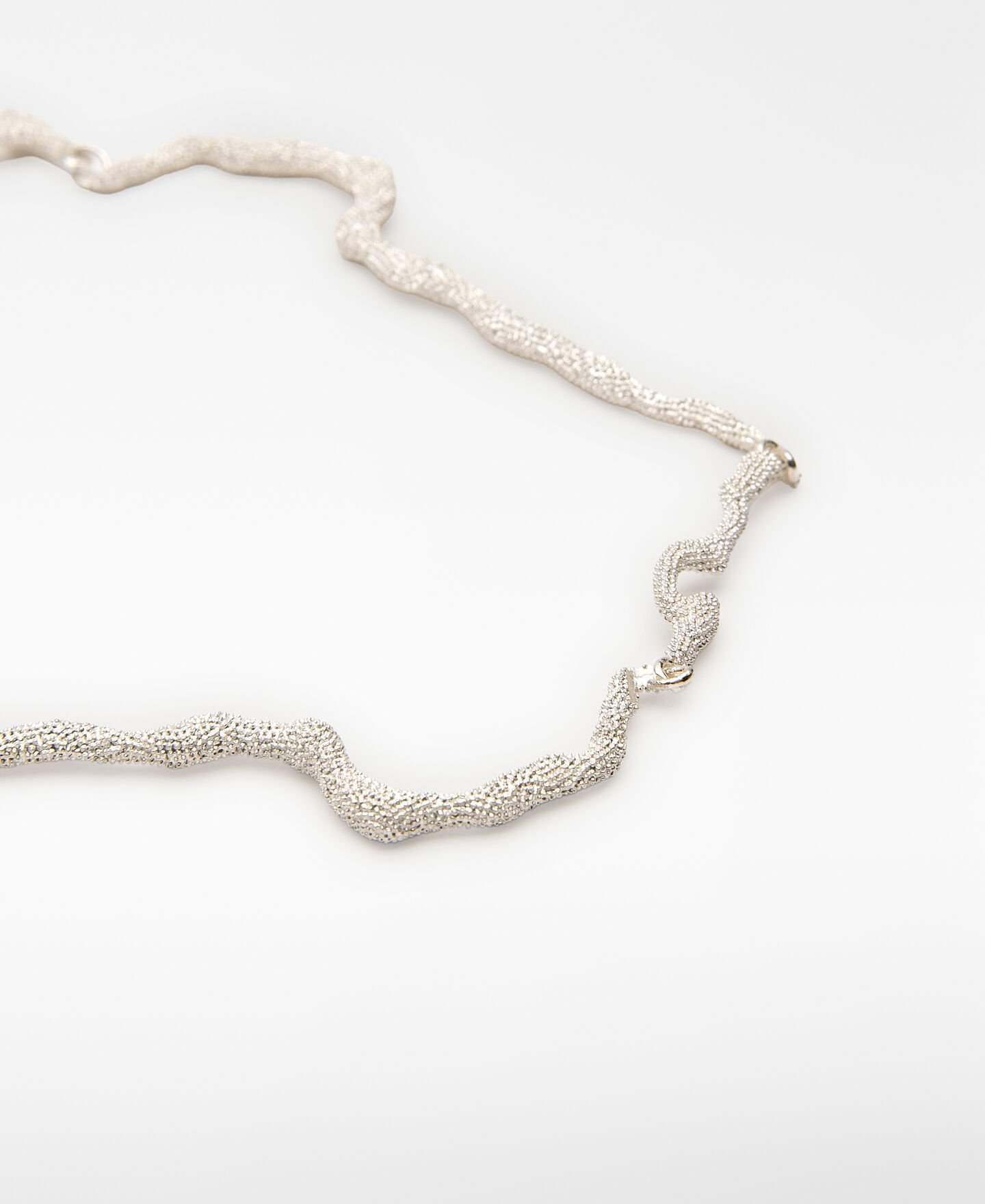Collar asimétrico textura mujer. Piezas irregulares unidas mediante argollas. Largo regulable. Cierre mosquetón. Terminal logotipado.