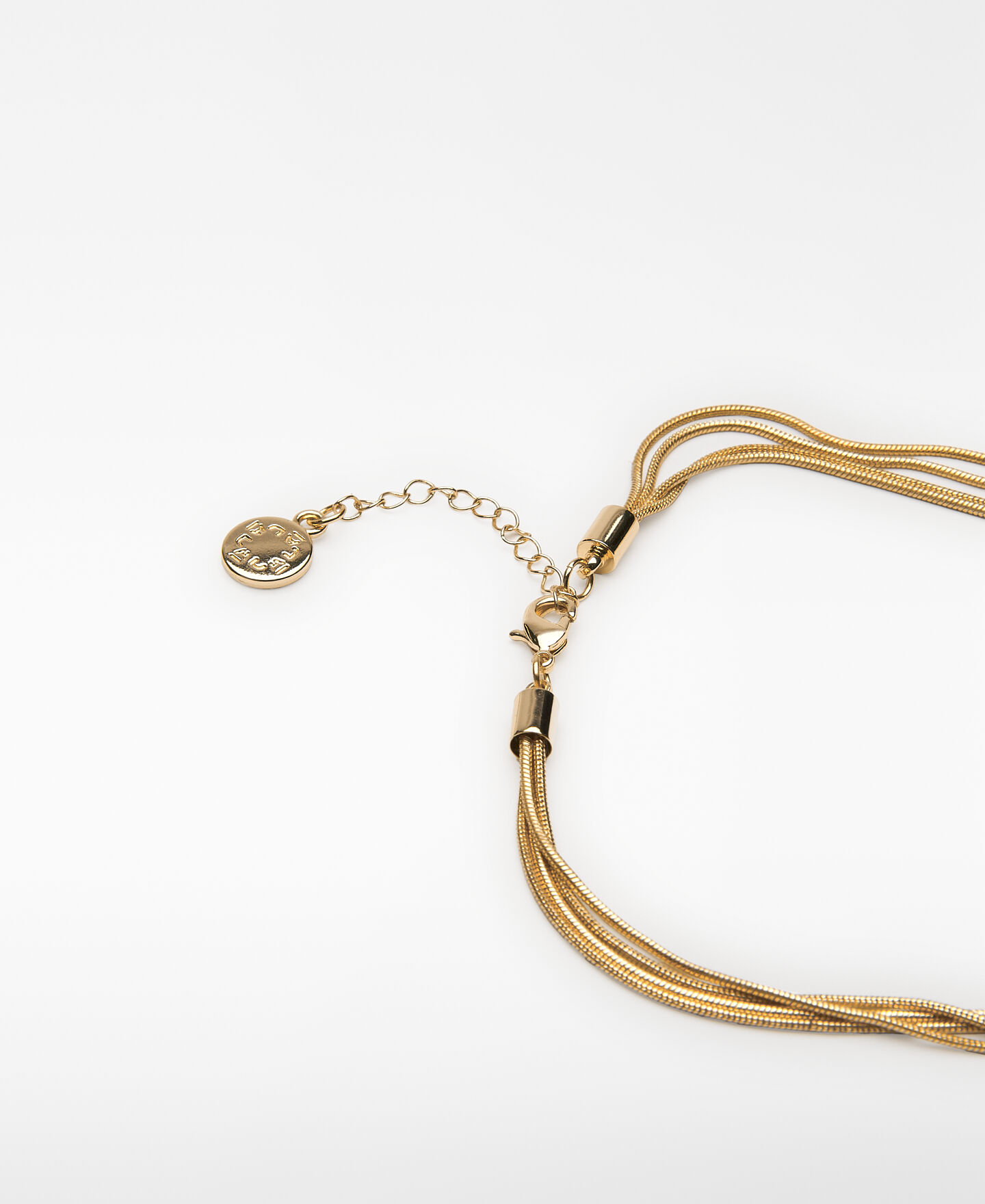 Collar maxi pieza irregular textura martillada mujer. Doble cadena metálica. Largo ajustable. Cierre mosquetón. Terminal logotipado. Acabado dorado.