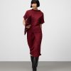 Falda tejido trenzado poliéster reciclado mujer. Cinturilla elástica. Delantero cruzado con cierre botón. Largo midi.