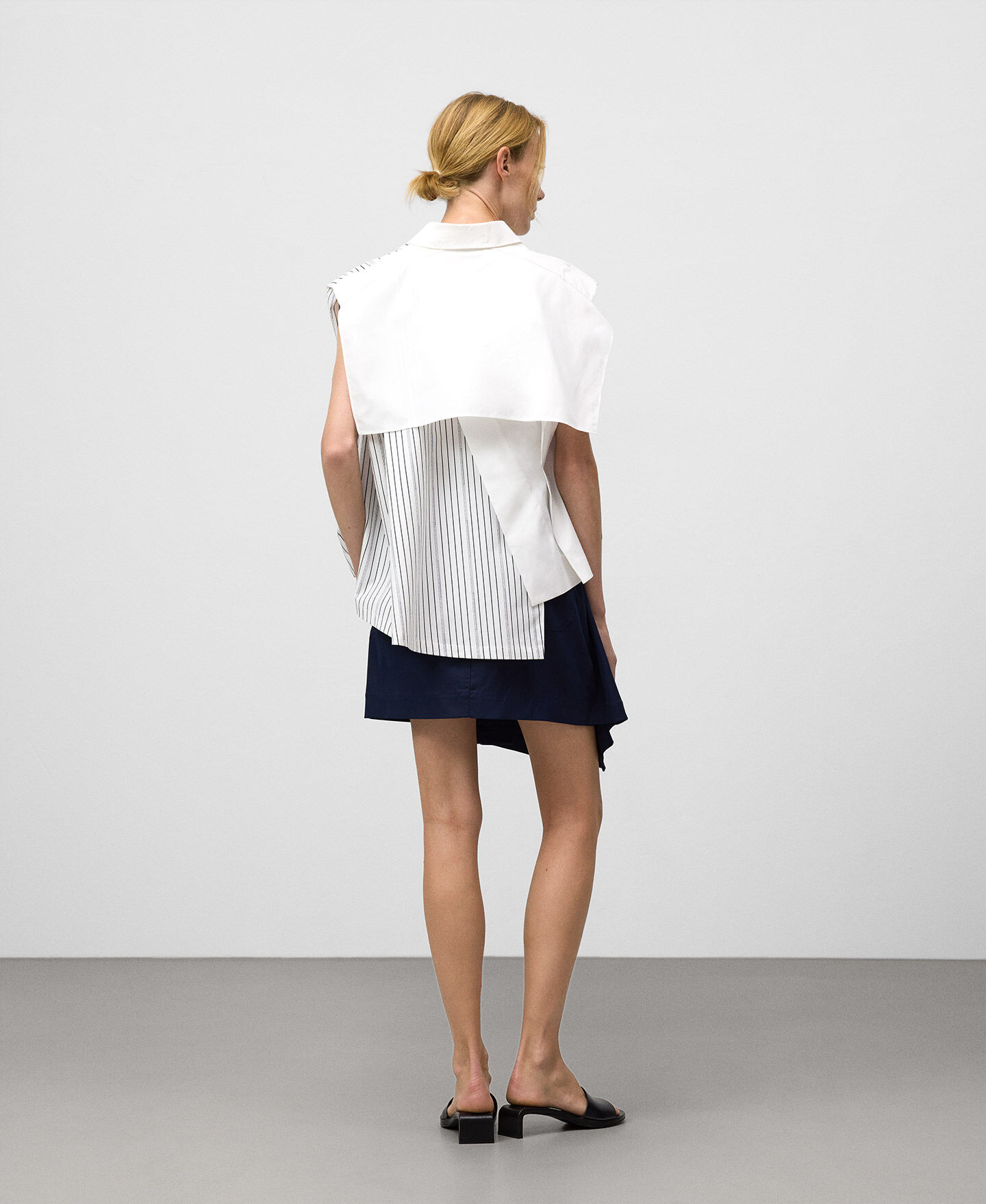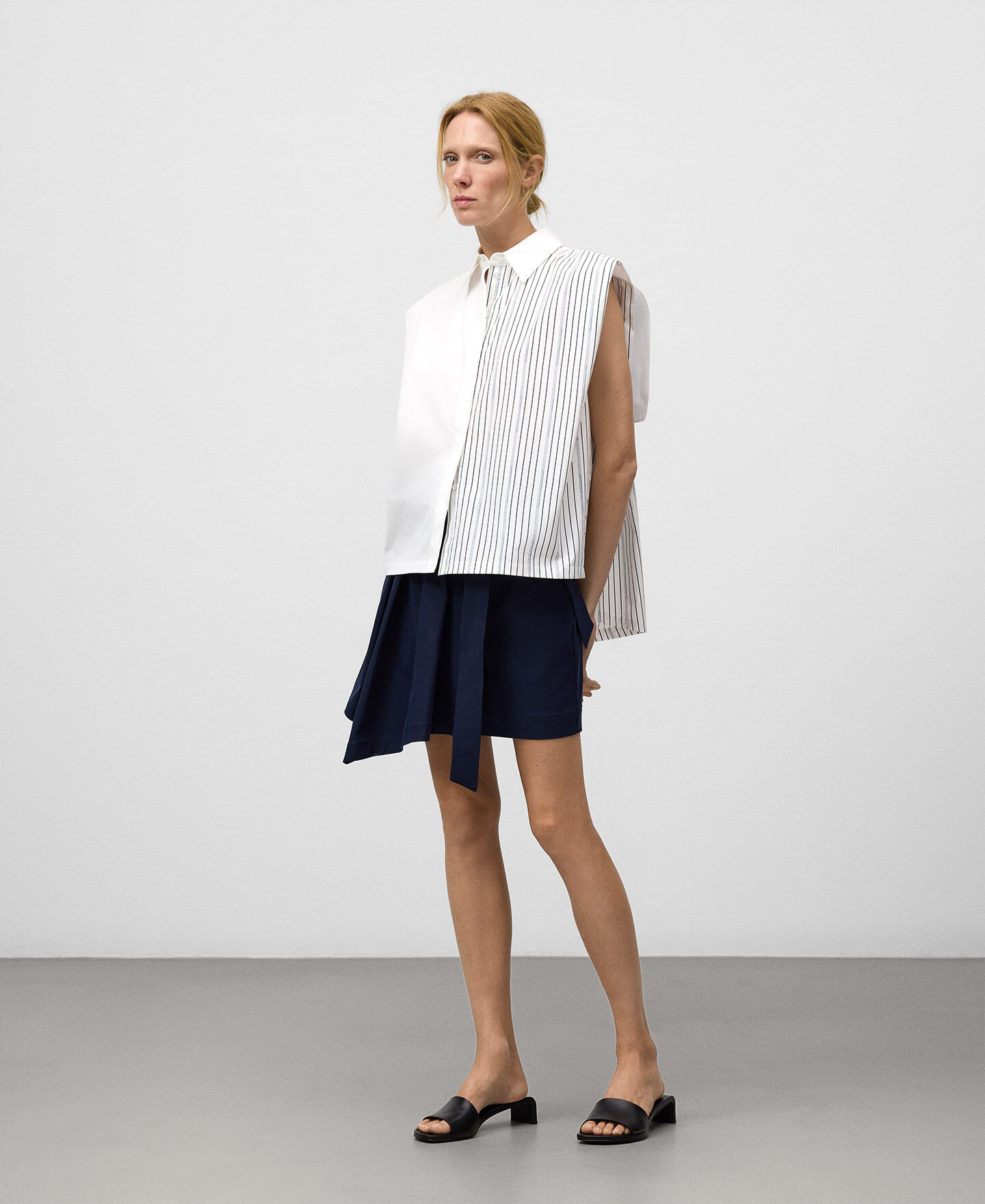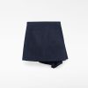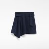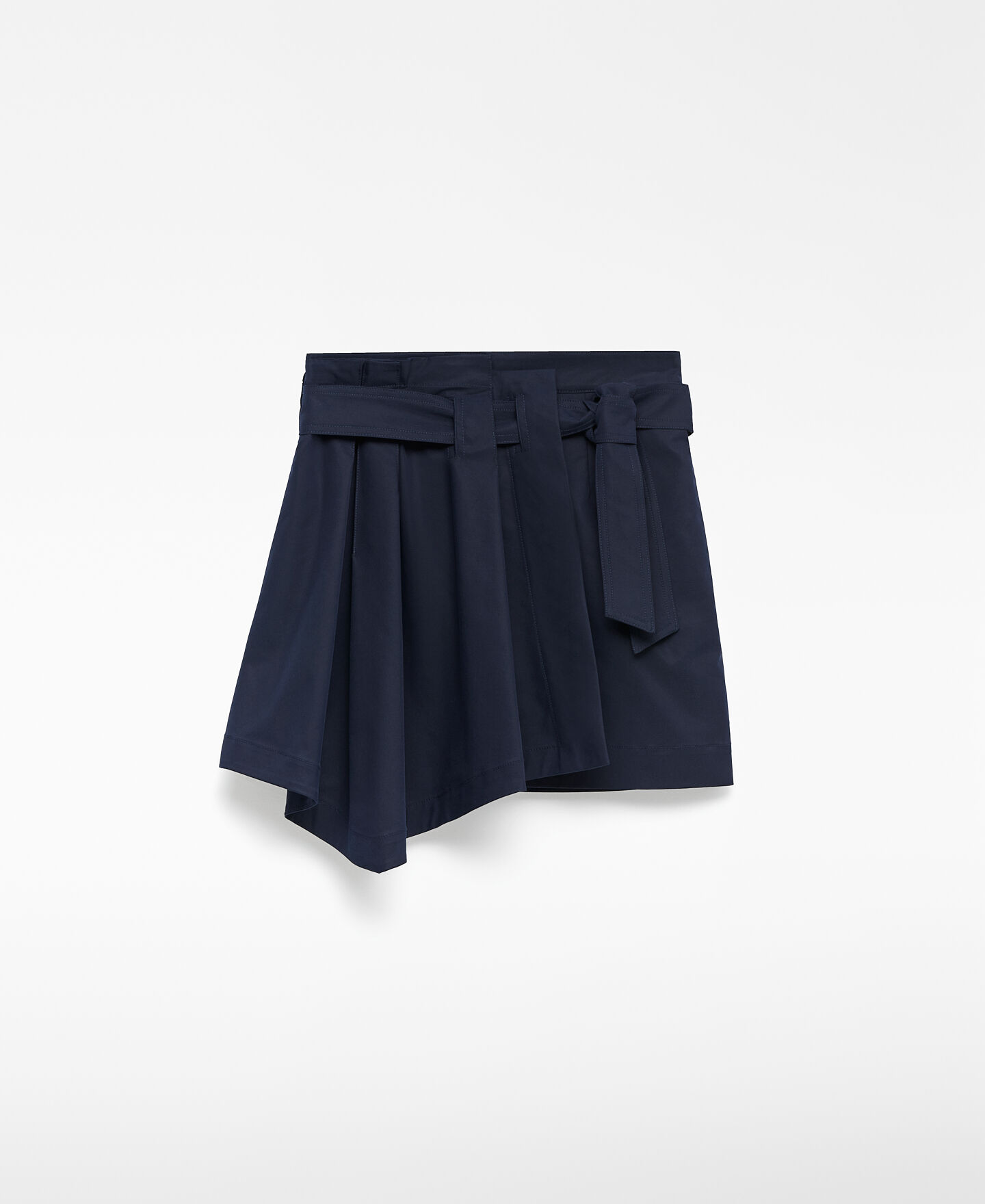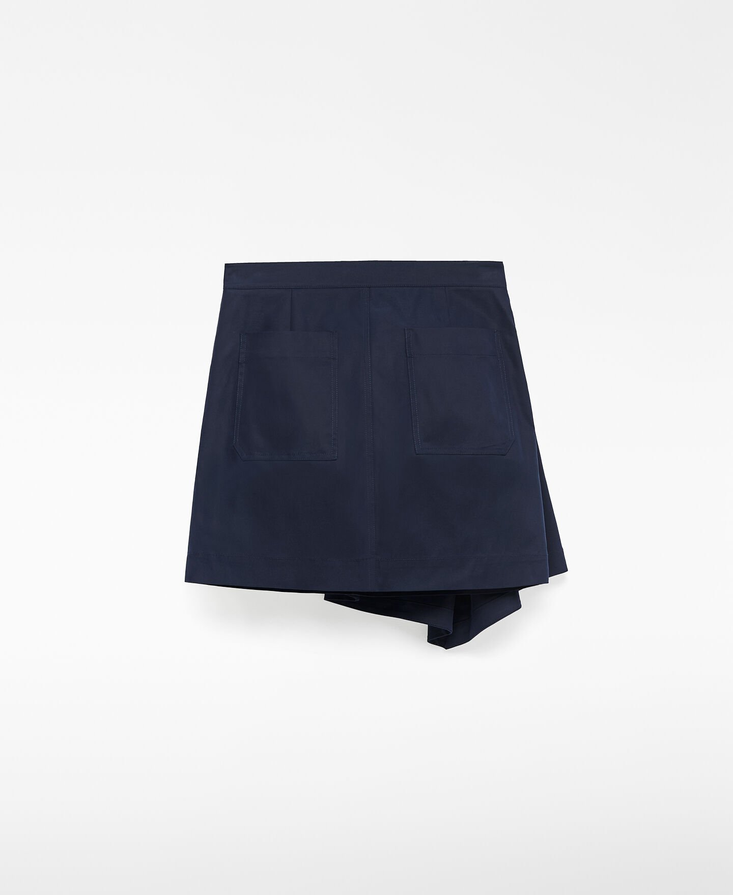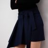 Falda mini mujer. Pieza drapeada en delantero. Cinturón que anuda en lateral. Bolsillos de plastrón en espalda.