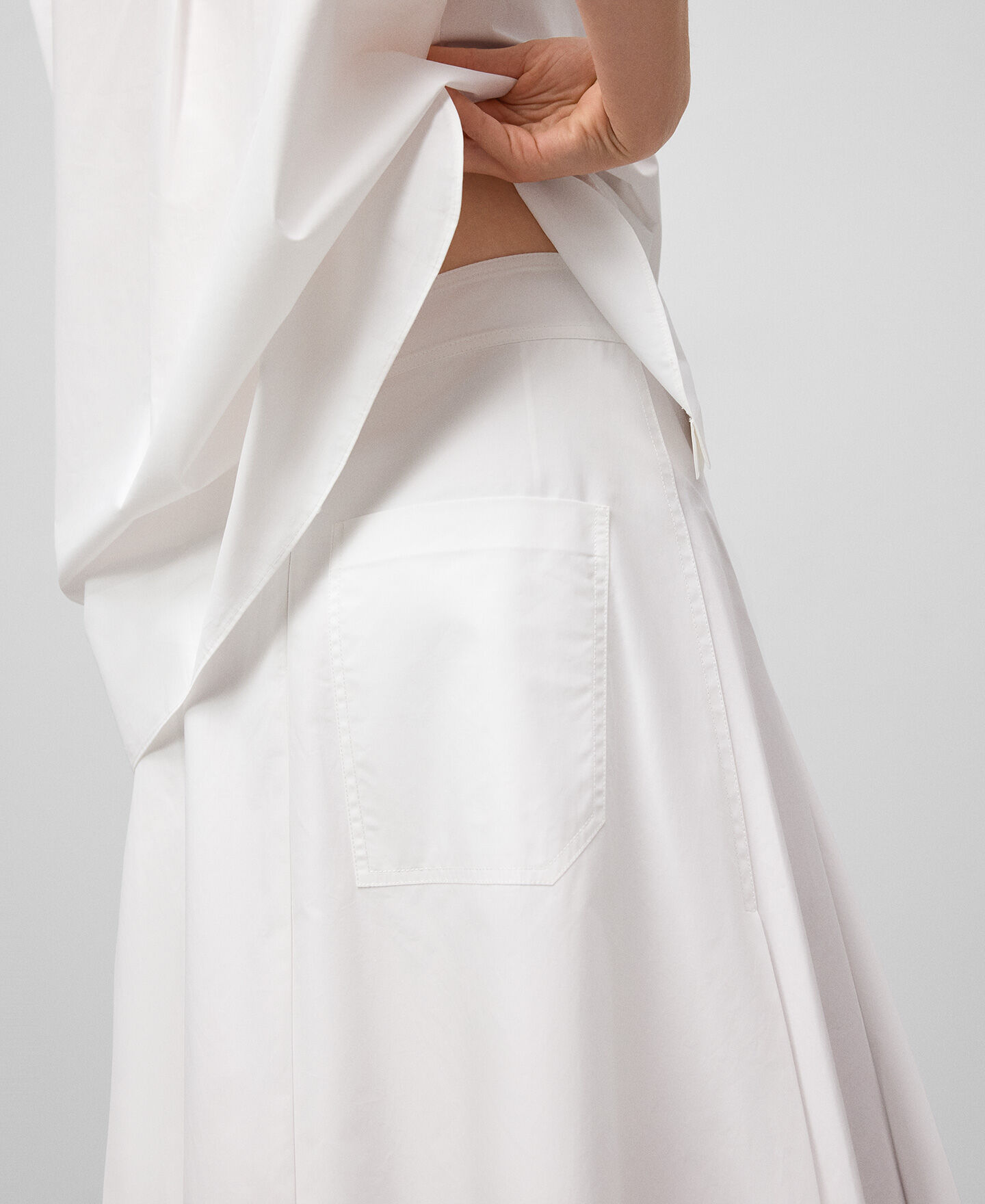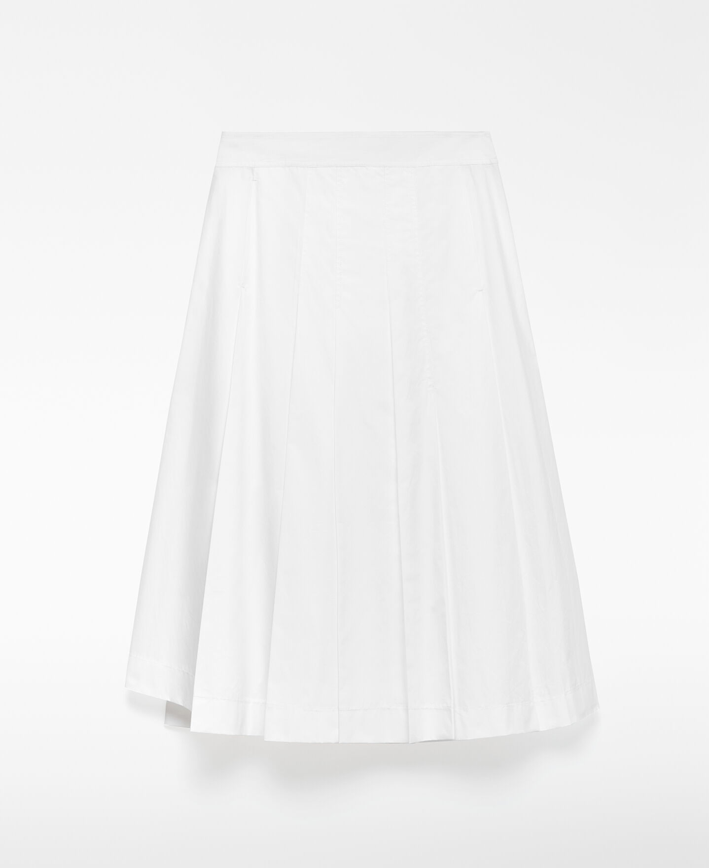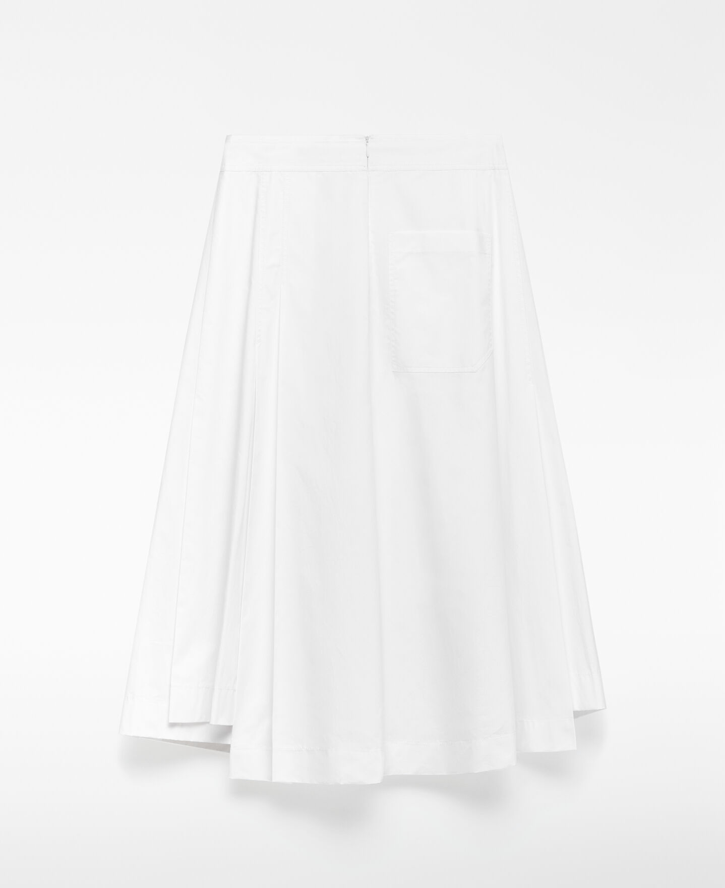 Falda plisada algodón orgánico mujer. Cierre cremallera en espalda. Bolsillo de plastrón en espalda. Bajo asimétrico.