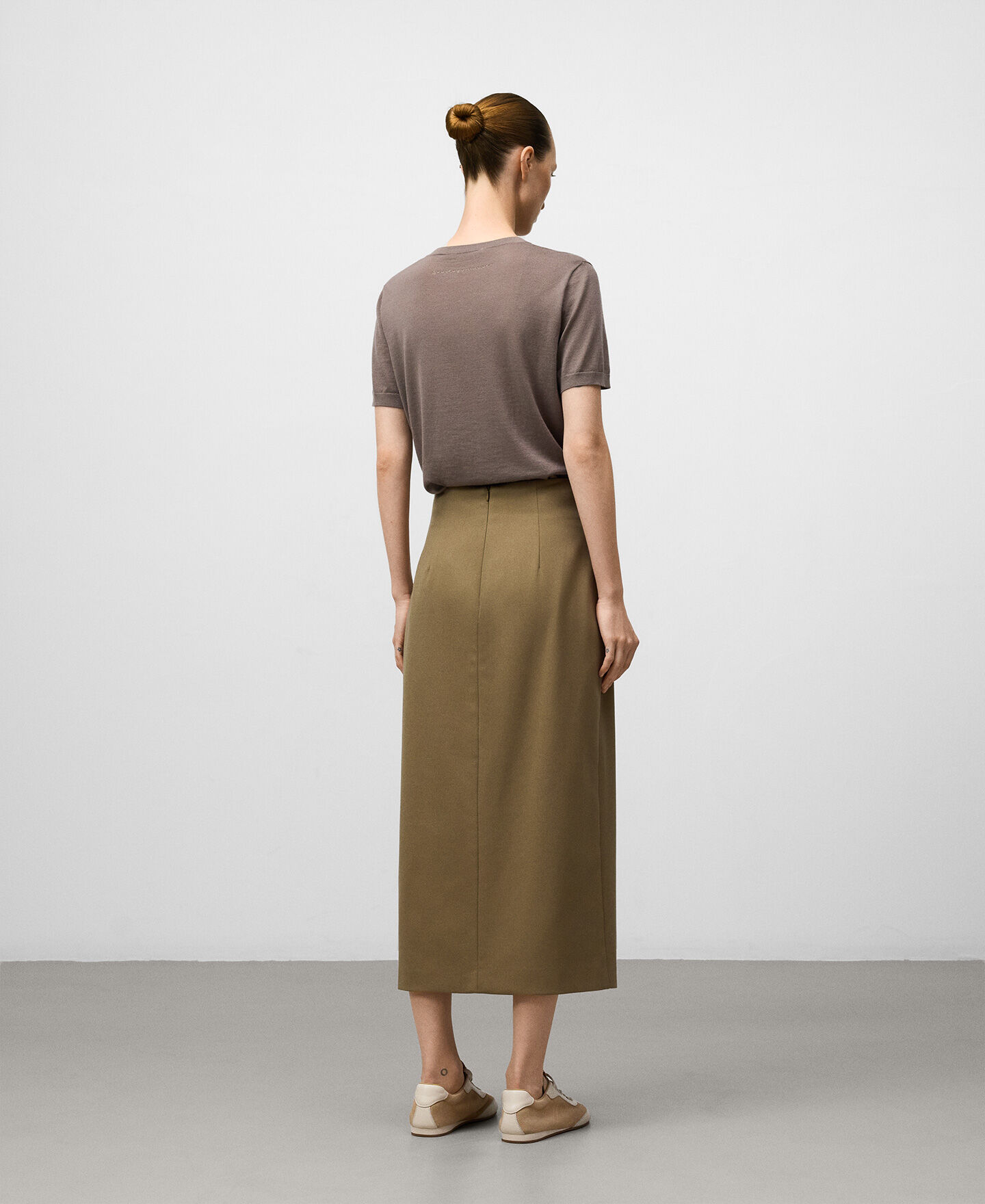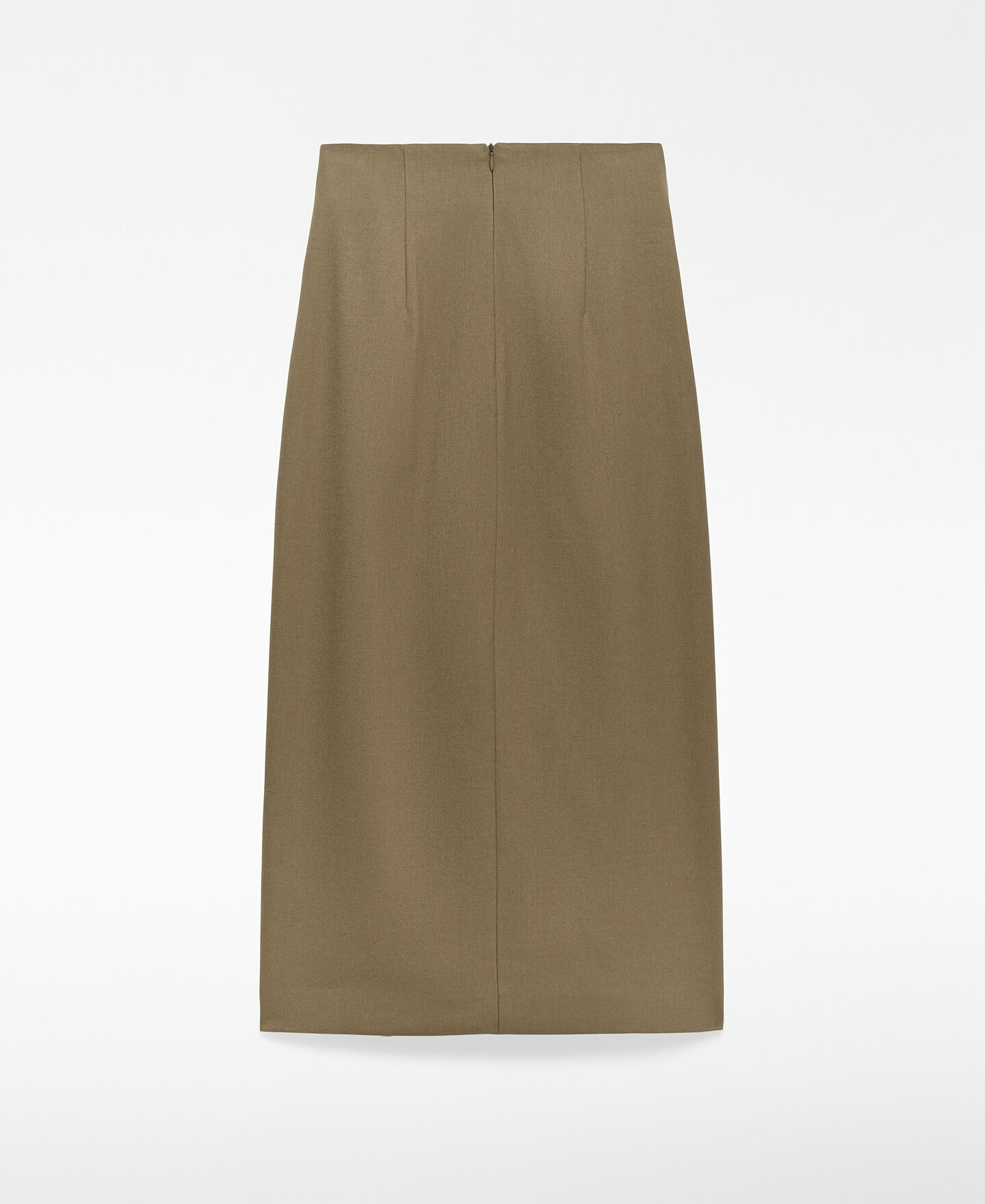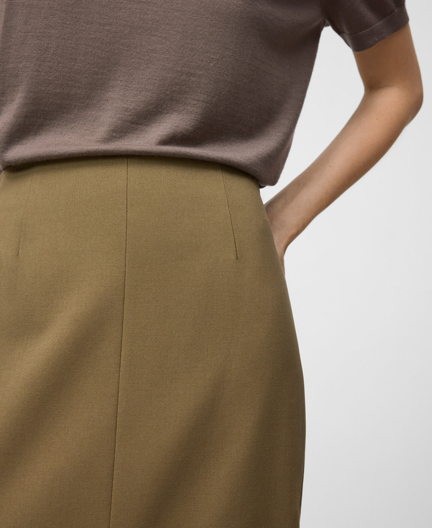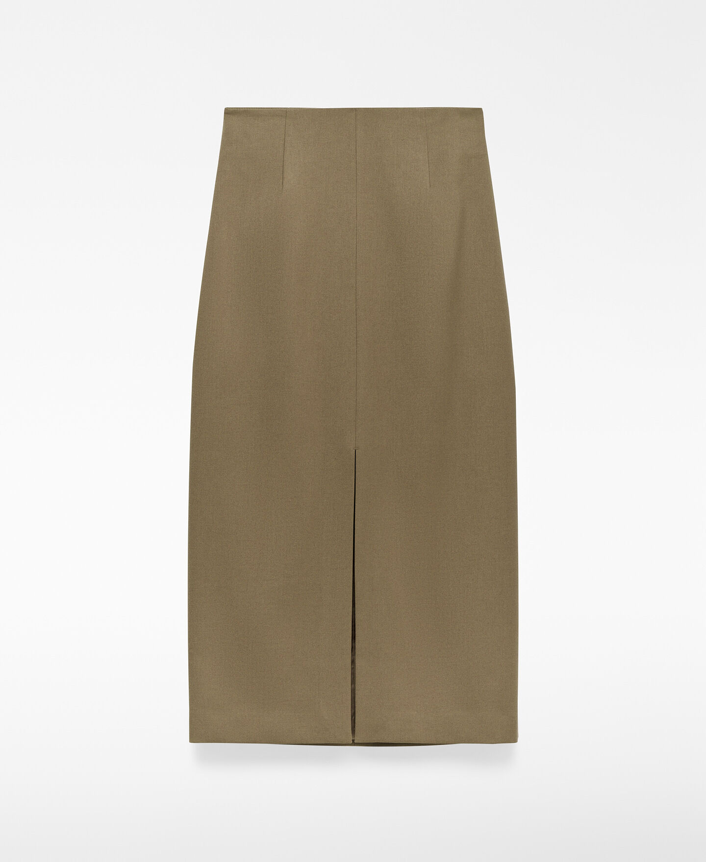 Falda sastre recta mujer. Pinzas en delantero y espalda. Abertura central en delantero. Cierre cremallera en espalda. Largo midi.