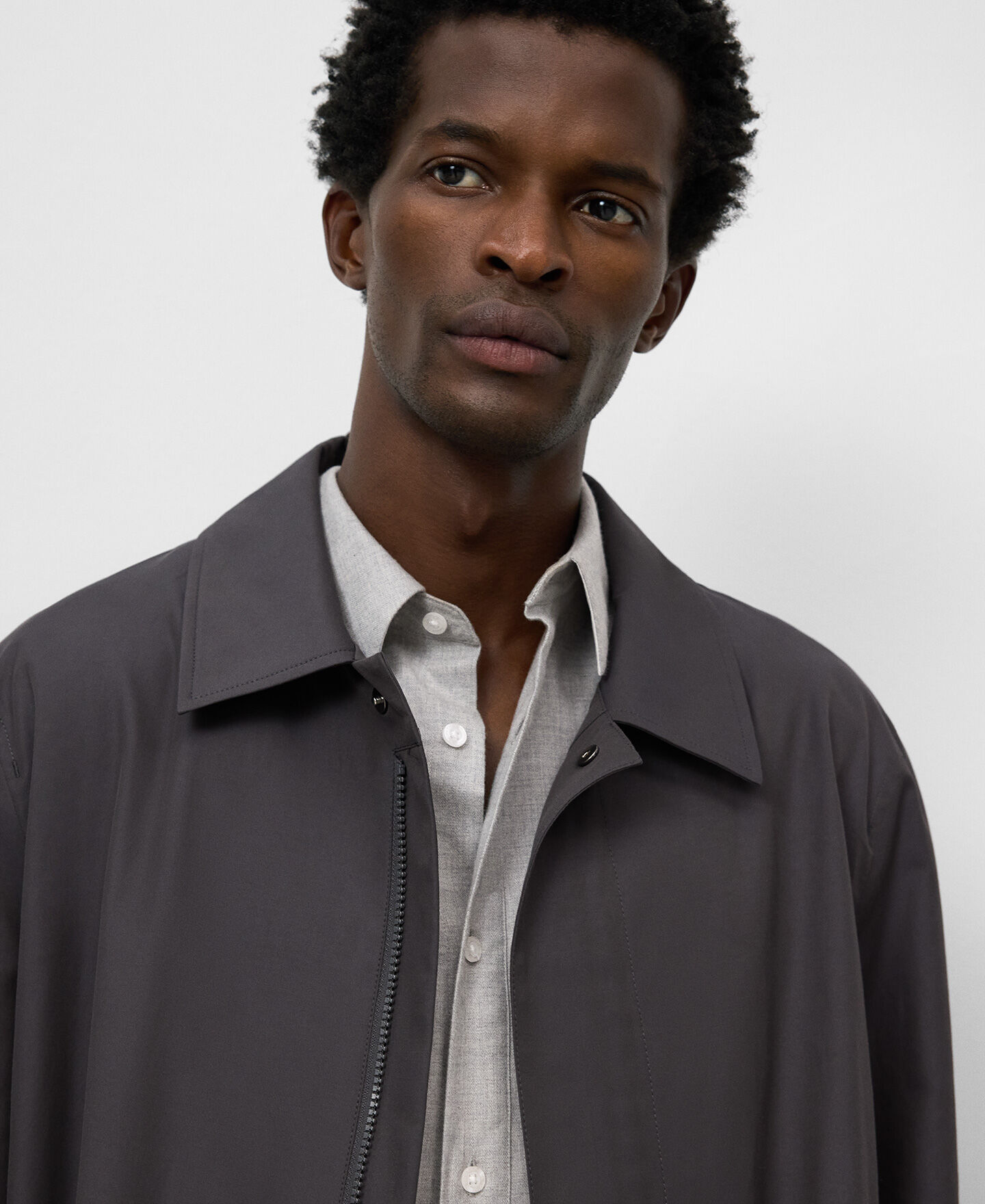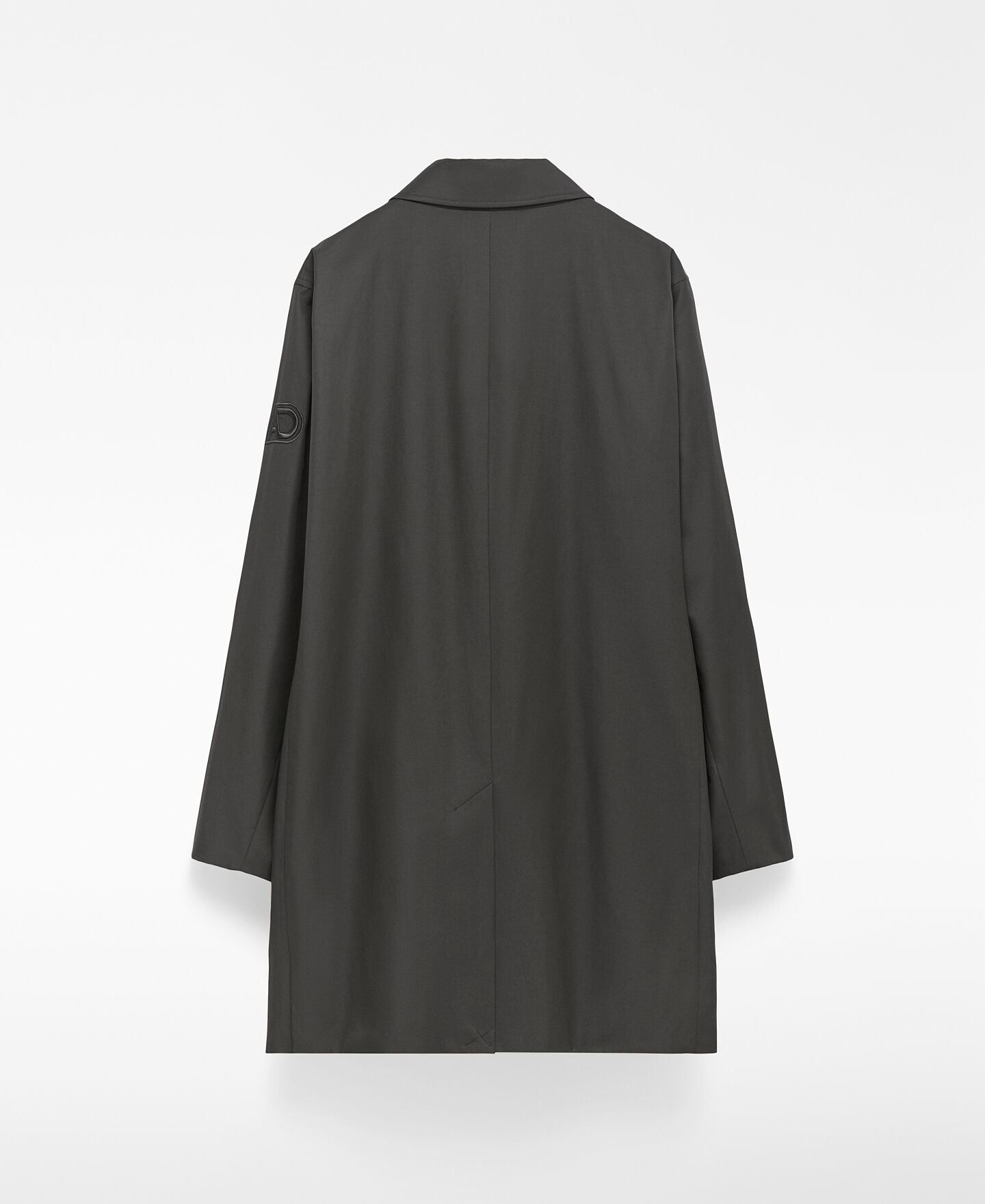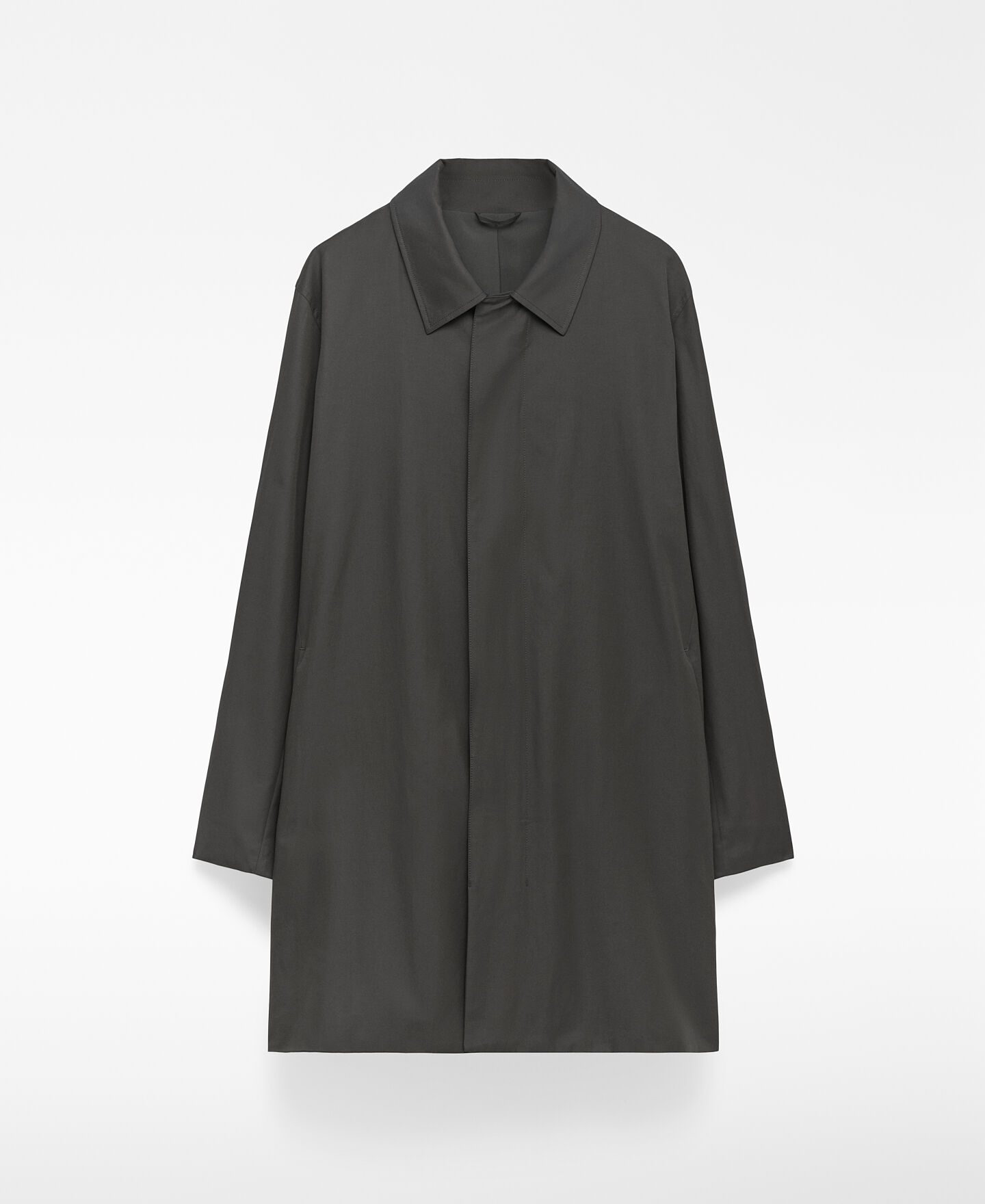 Gabardina regular fit hombre. Cuello solapa. Manga larga. Cierre cremallera frontal oculta por sopata. Bolsillos insertados. Abertura central en espalda. Logo bordado en manga izquierda.