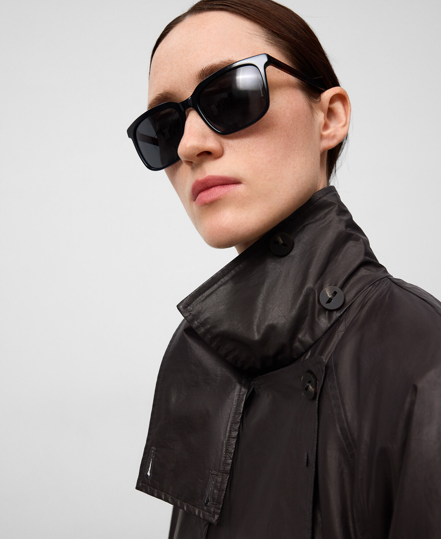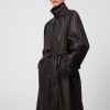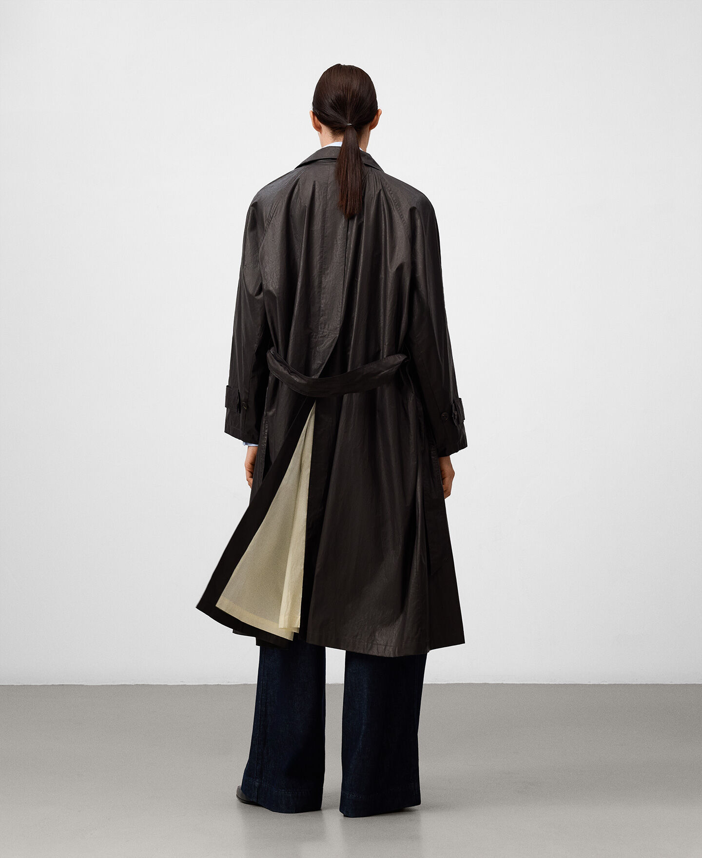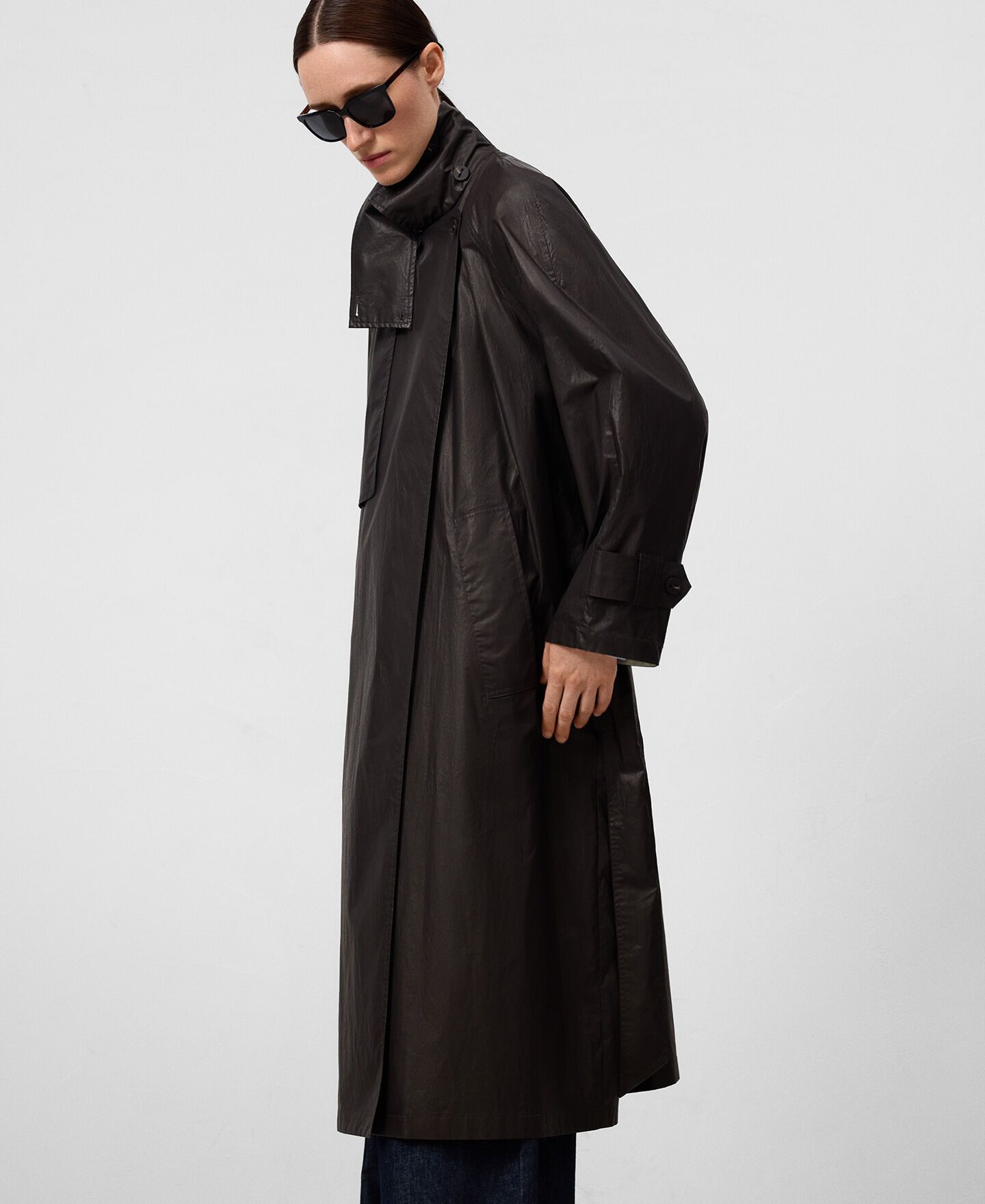 Gabardina algodón orgánico mujer. Tejido efecto encerado. Cuello solapa. Cierre cruzado. Detalle de solapa con trabilla y botón en cuello. Bolsillos laterales. Cinturón.