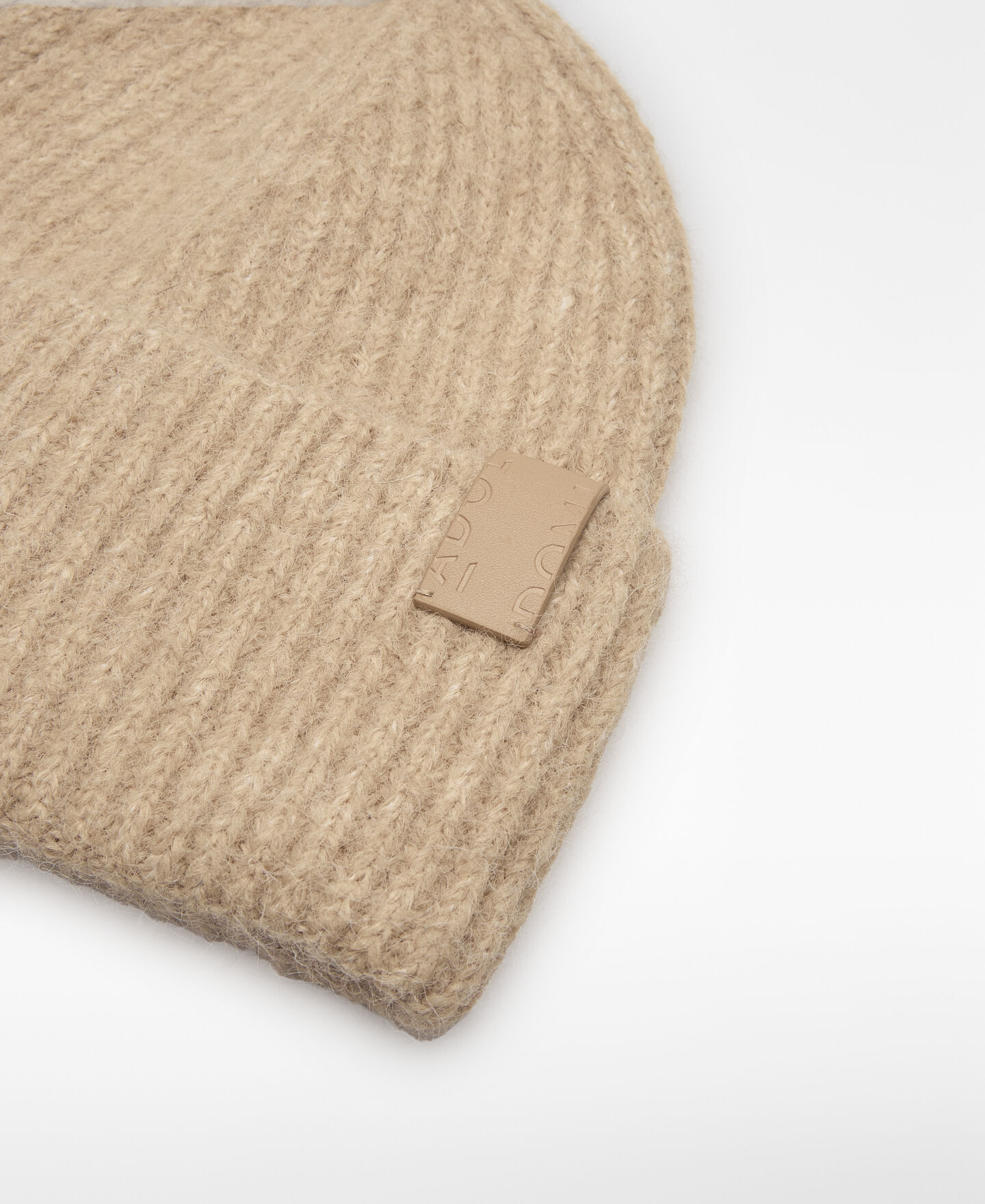 Gorro beanie punto canalé mujer. Remate en vuelta. Etiqueta exterior logotipada.