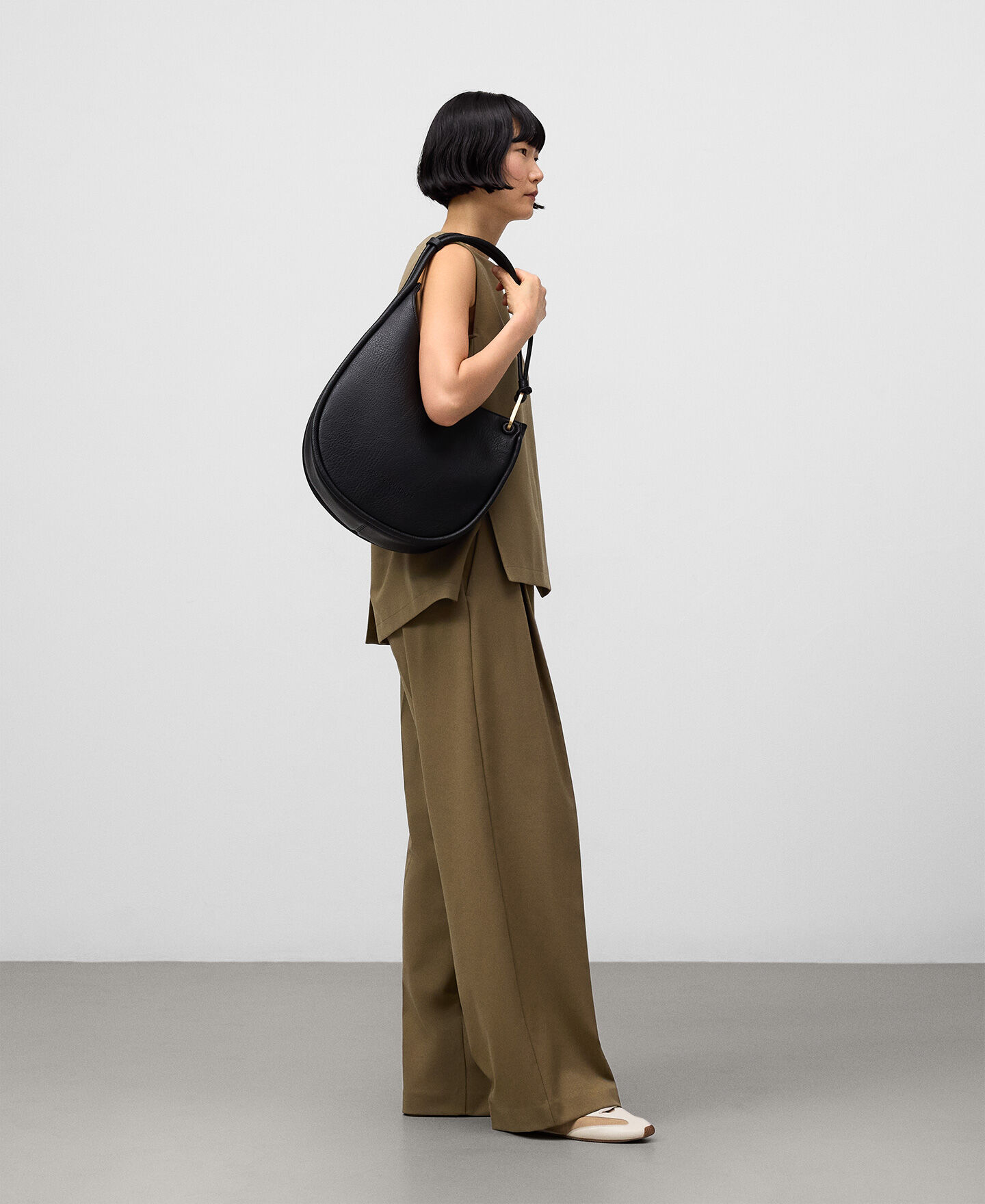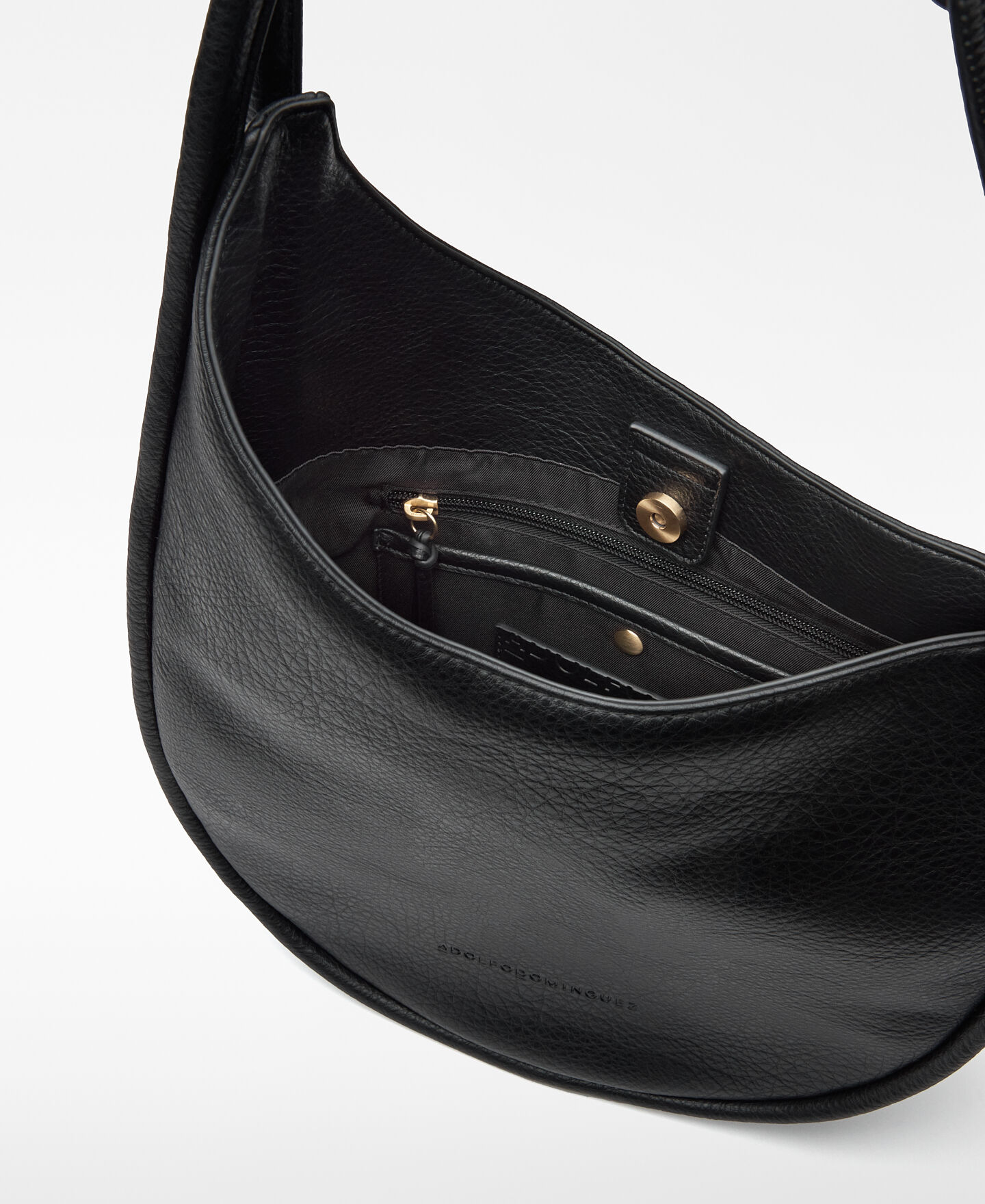 Hobo Luna Piel No Piel mujer. Textura grano. Un compartimento. Cierre magnético. Bolsillo interior con cierre cremallera. Asa de hombro tubular con pieza metálica. Logo grabado.