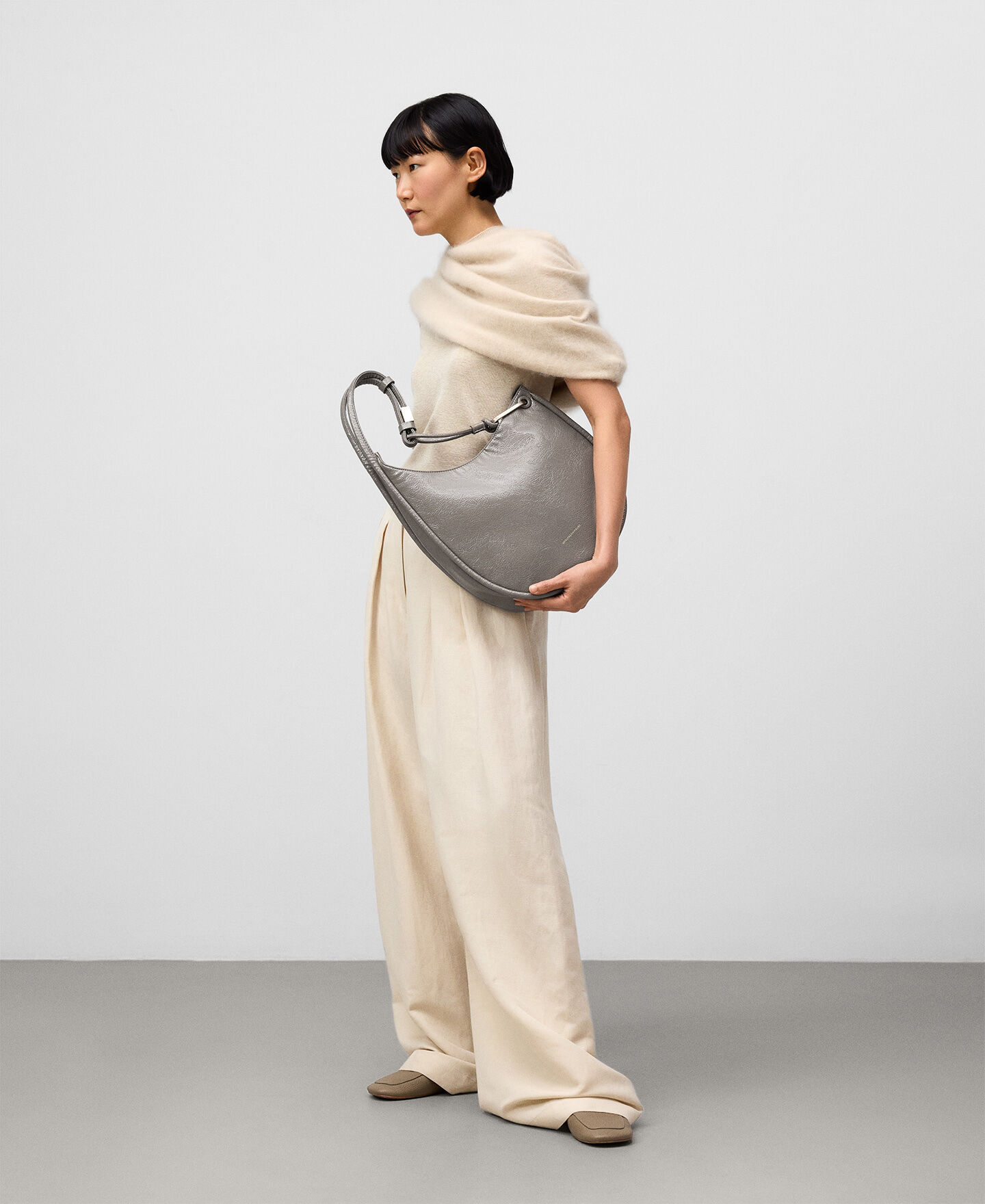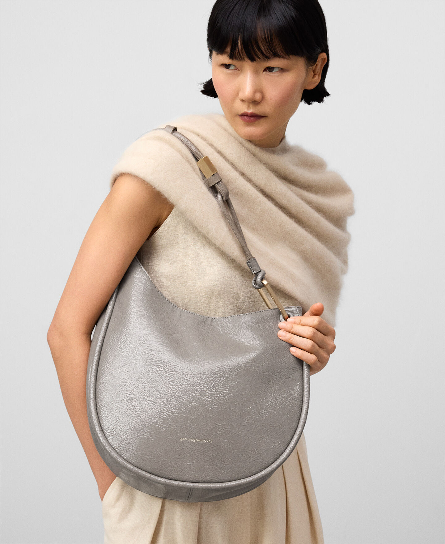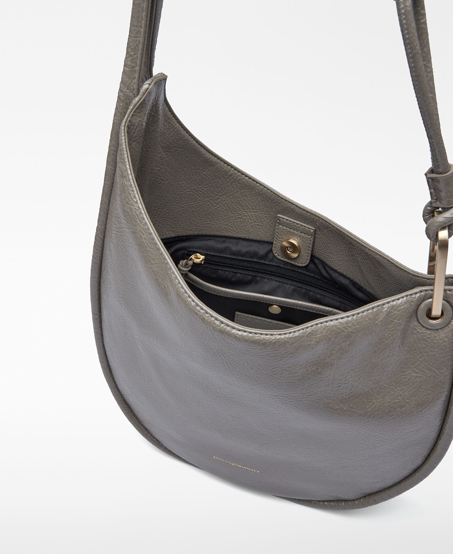 Hobo Luna Piel No Piel mujer. Textura craquelada con brillo. Un compartimento. Cierre clip magnético. Bolsillo interior con cierre cremallera. Asa tubular de hombro con pieza metálica. Logo grabado.