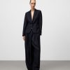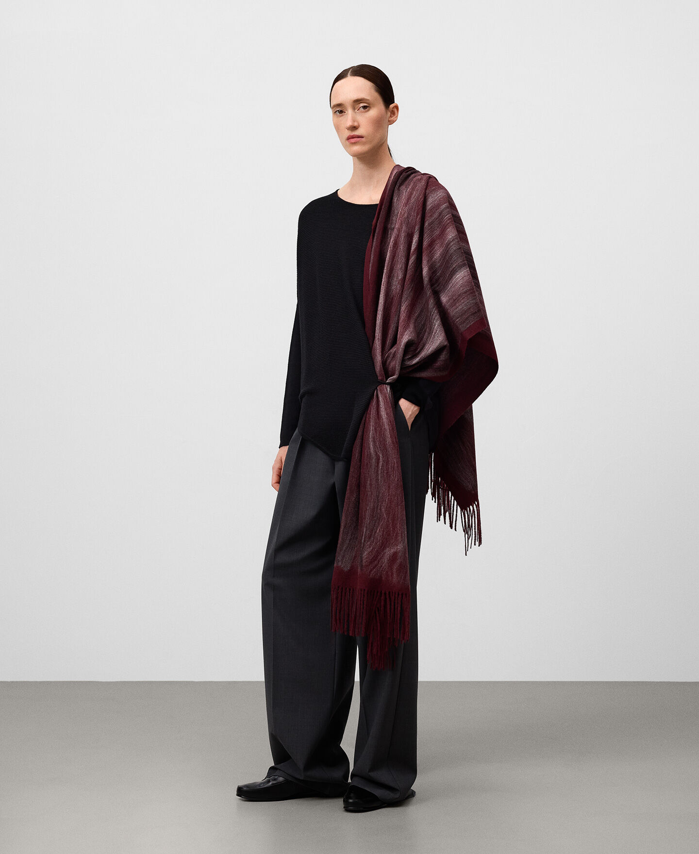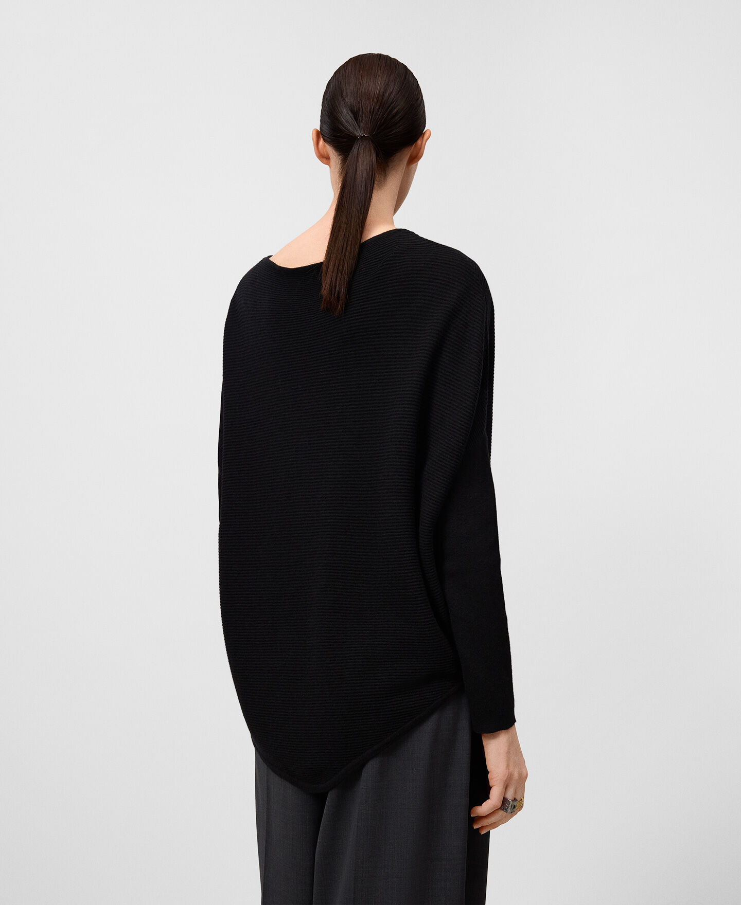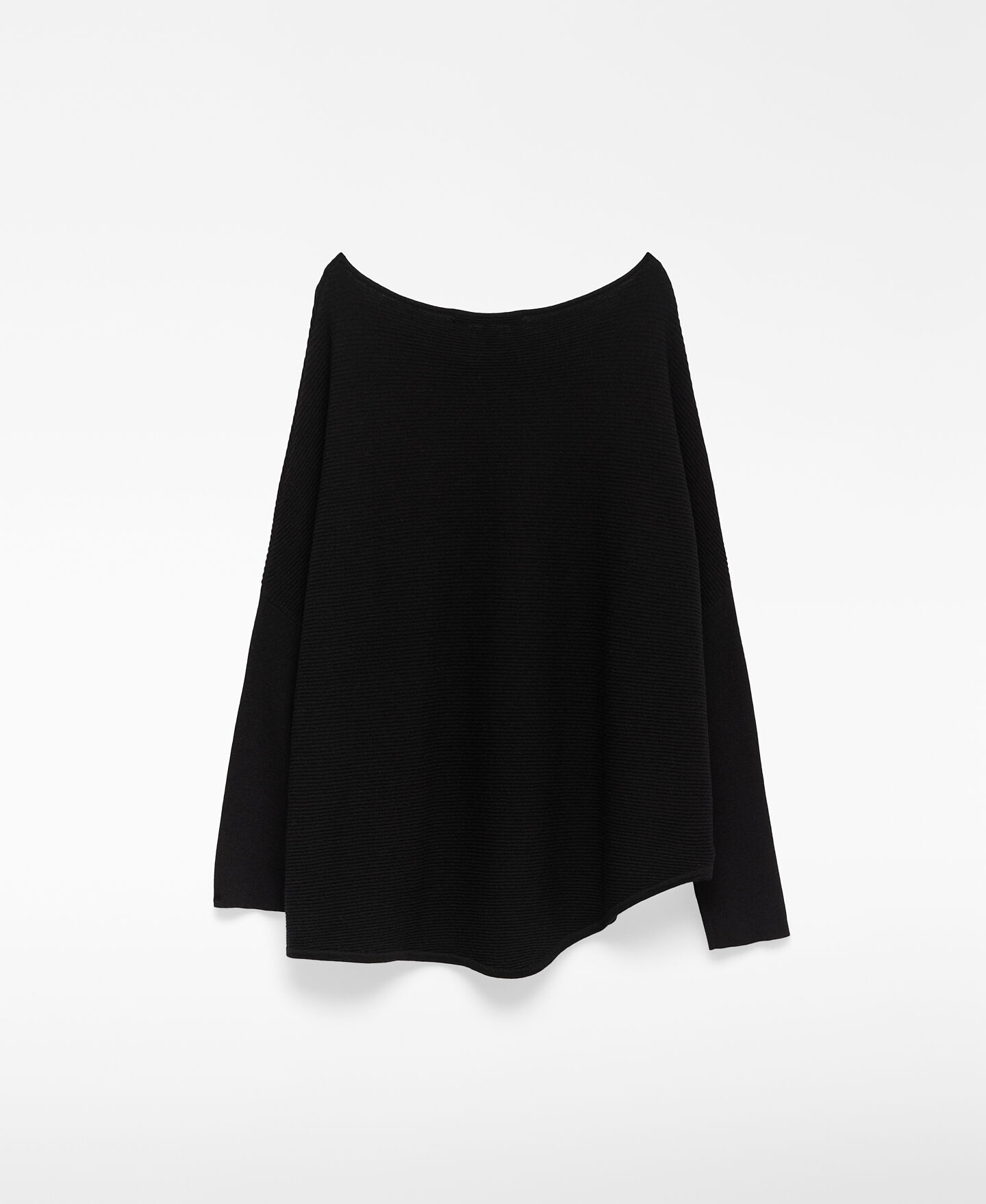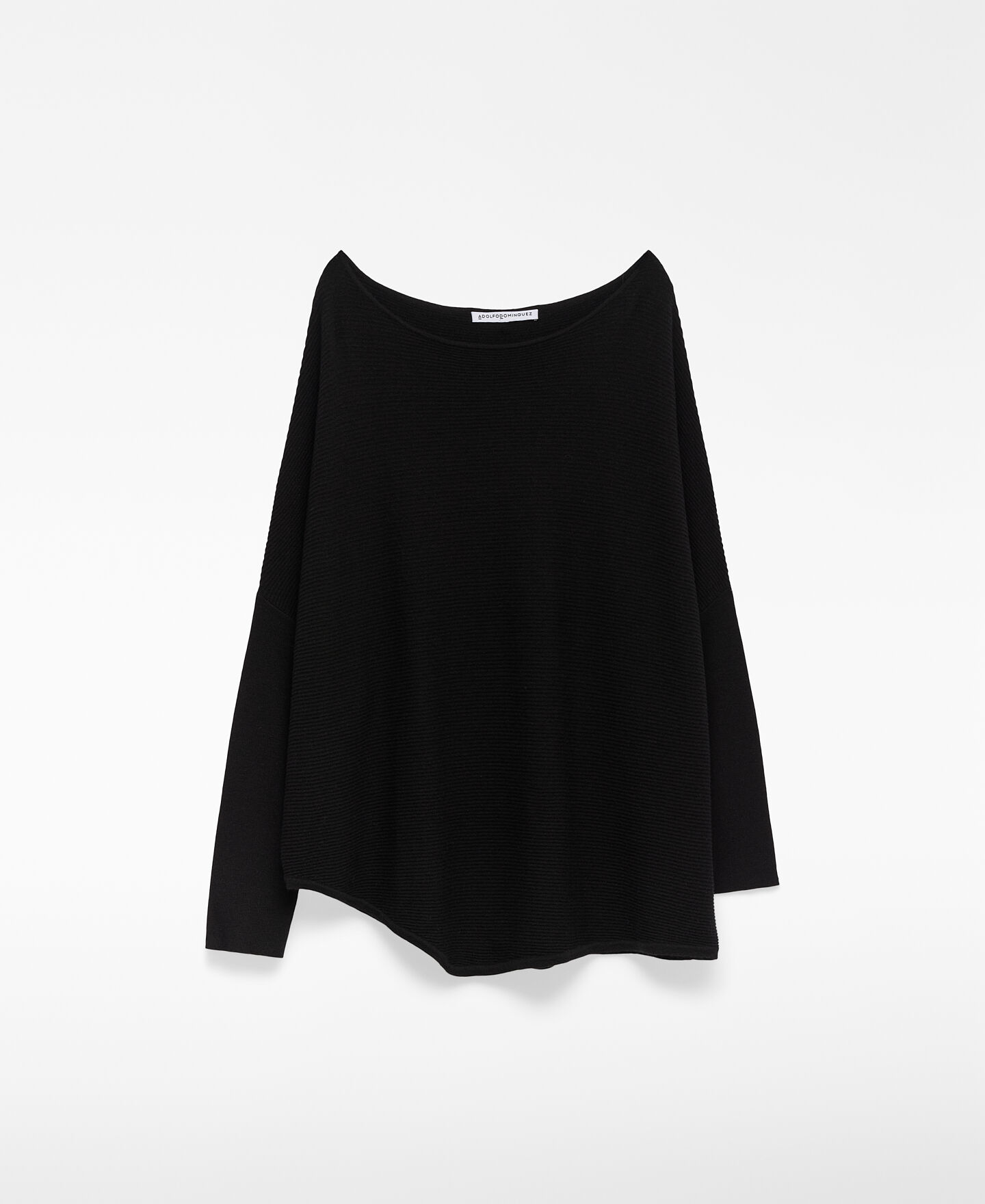 Jersey punto estructura rayas mujer. Escote barco. Manga larga asimétrica. Bajo asimétrico.