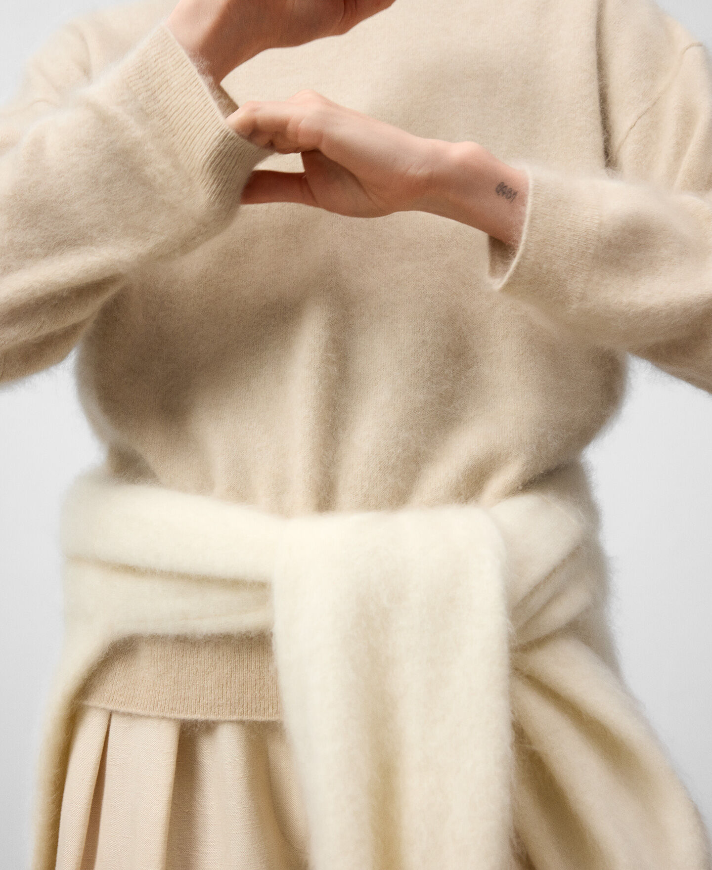 Adolfo Domínguez Jersey Cashmere Cuello Perkins Mujer | Crema | Mujer Ropa