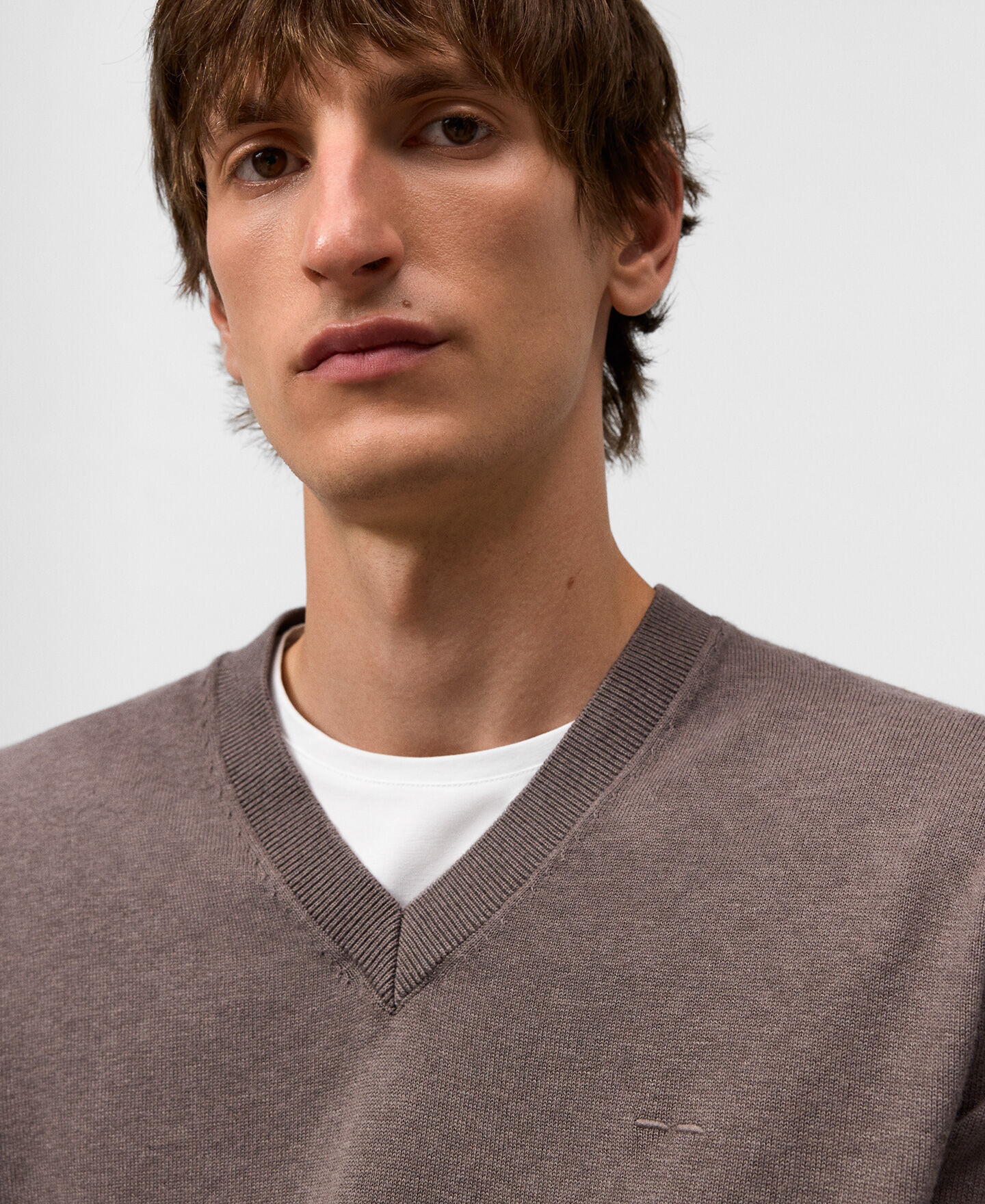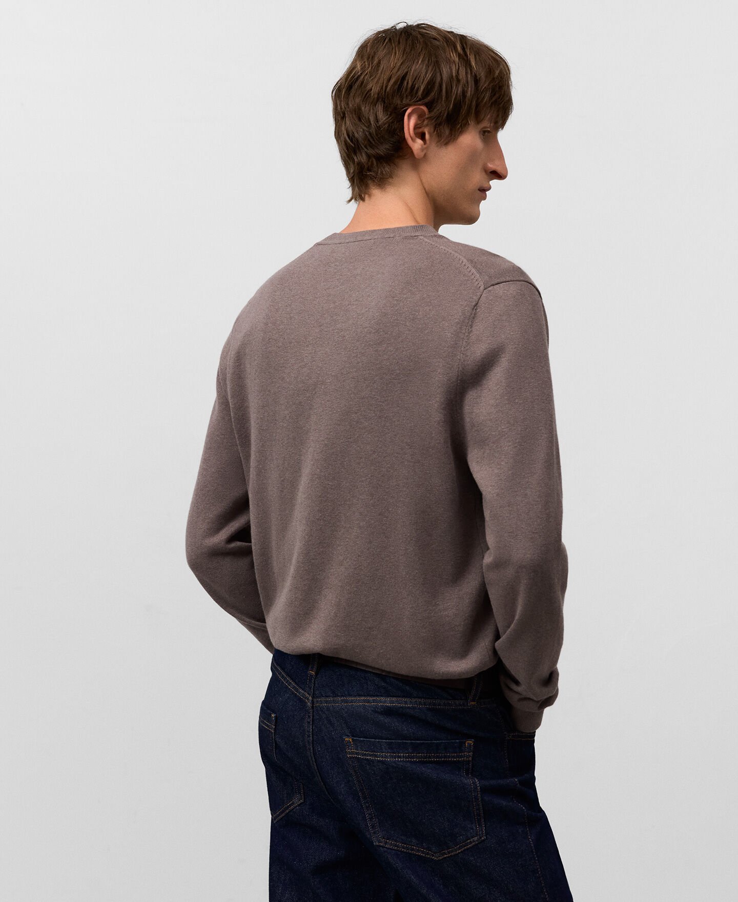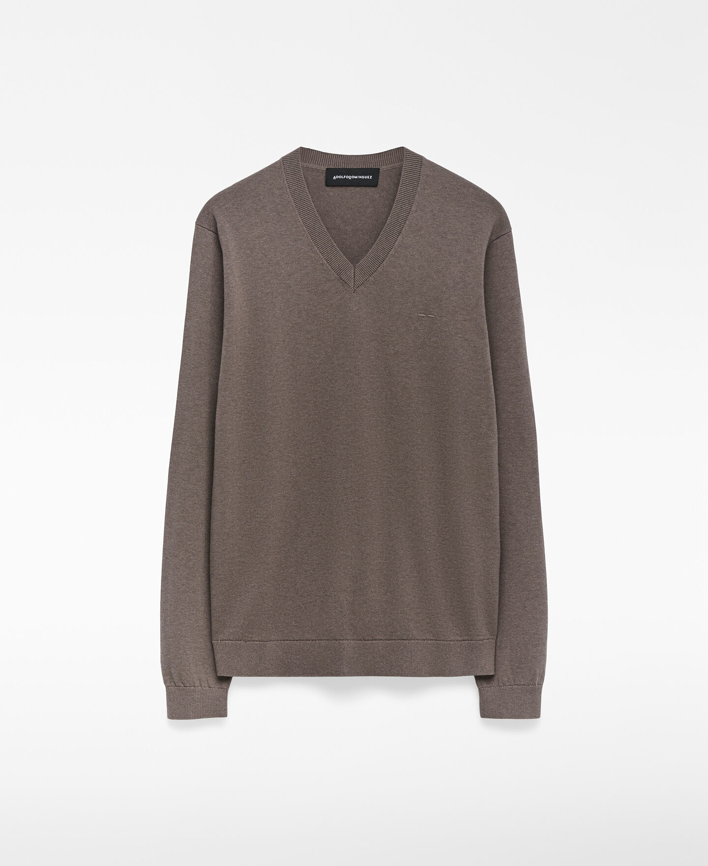 Jersey regular fit hombre. Cuello pico en canalé. Manga larga. Detalle de menguados en cuello y sisa. Remates en canalé. Logo bordado en pecho.