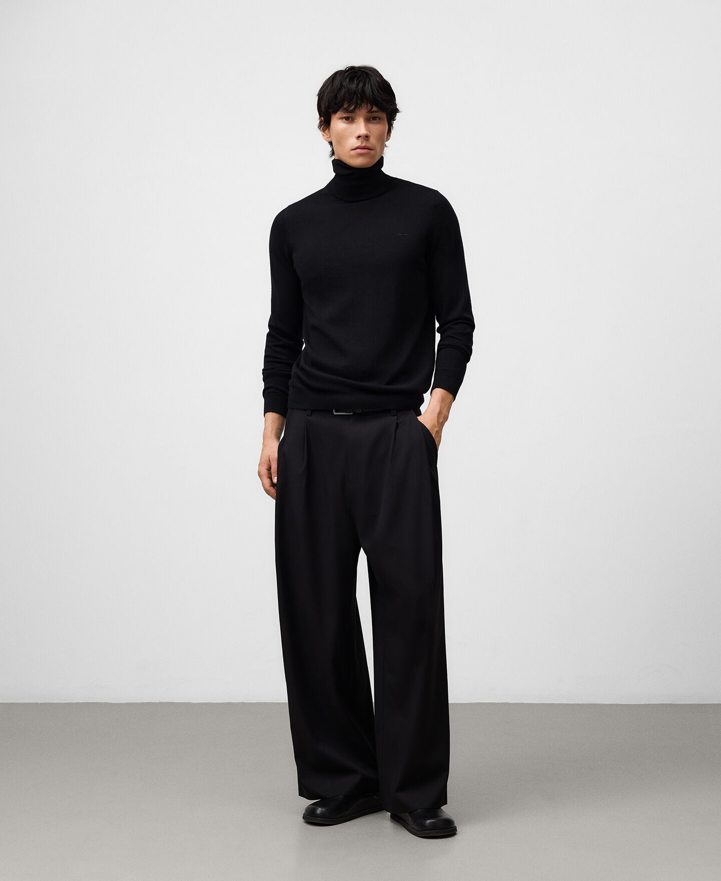 Jersey lana merino hombre. Cuello vuelto. Manga larga. Remates en canalé. Logo bordado en pecho.