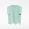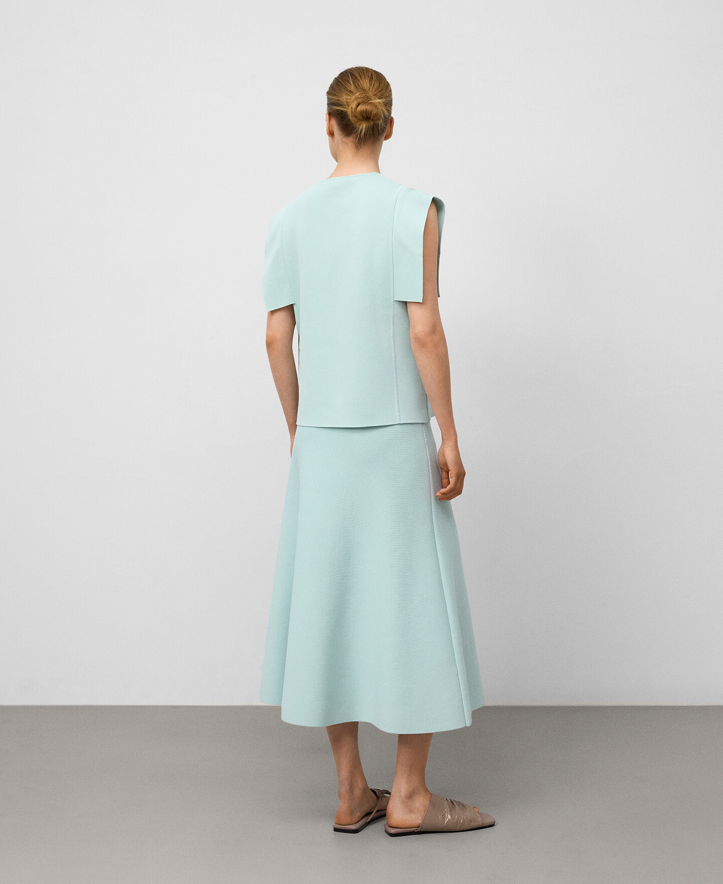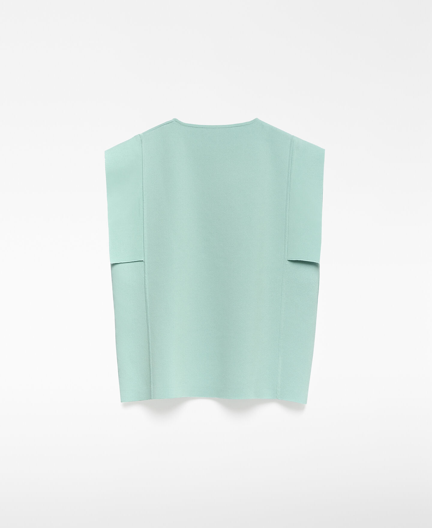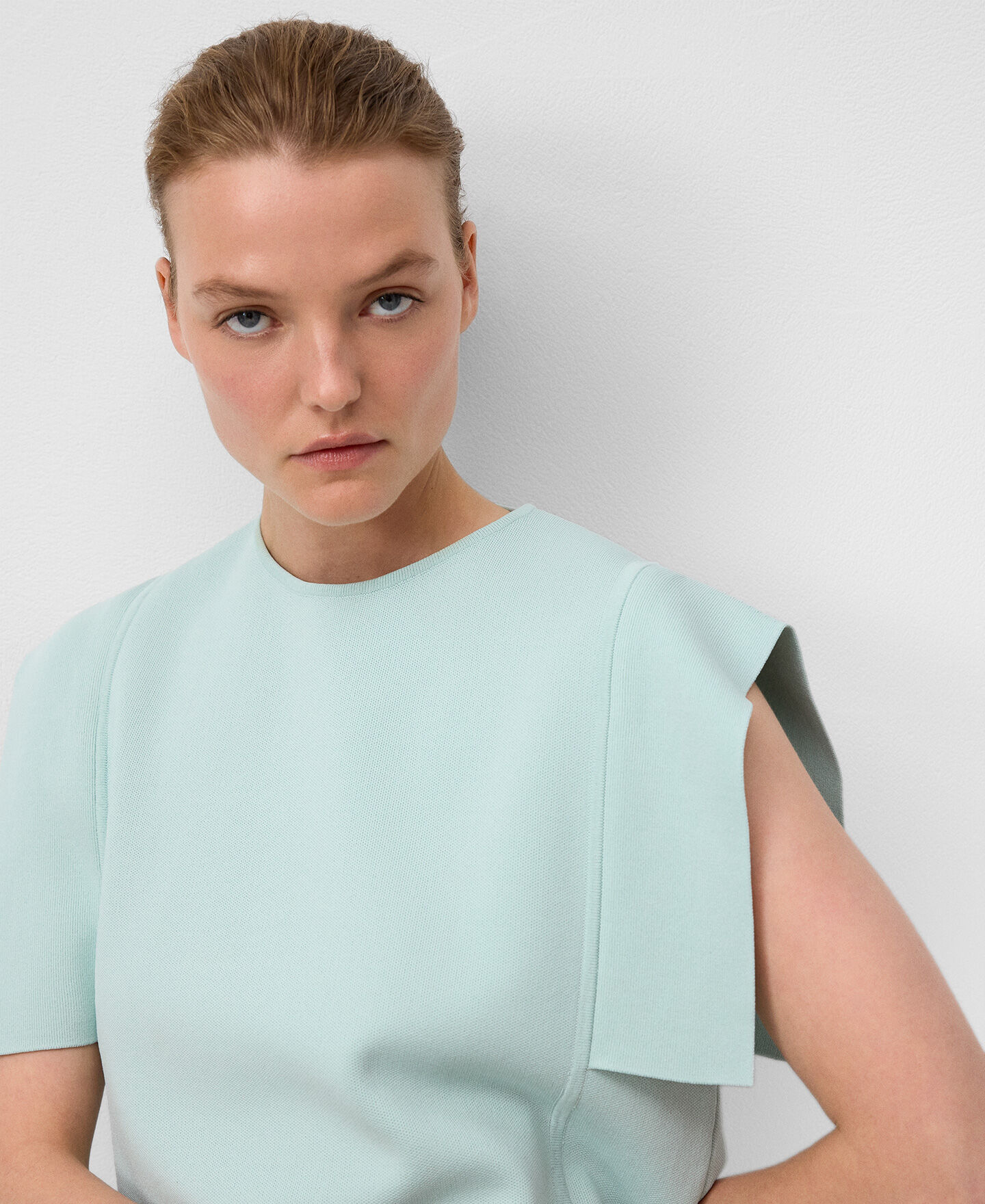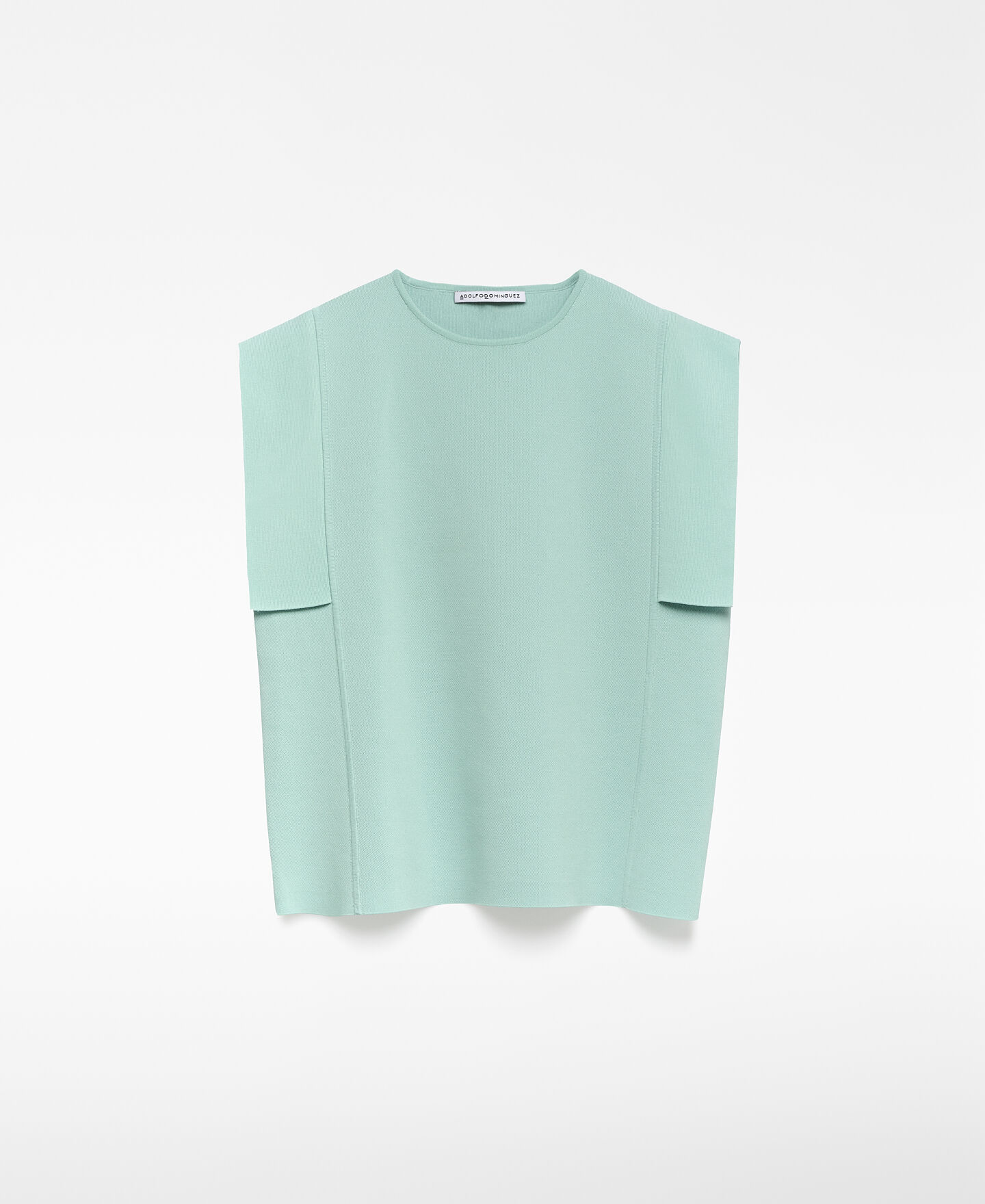 Jersey punto doble frontura mujer. Cuello caja. Manga sisa con piezas laterales.
