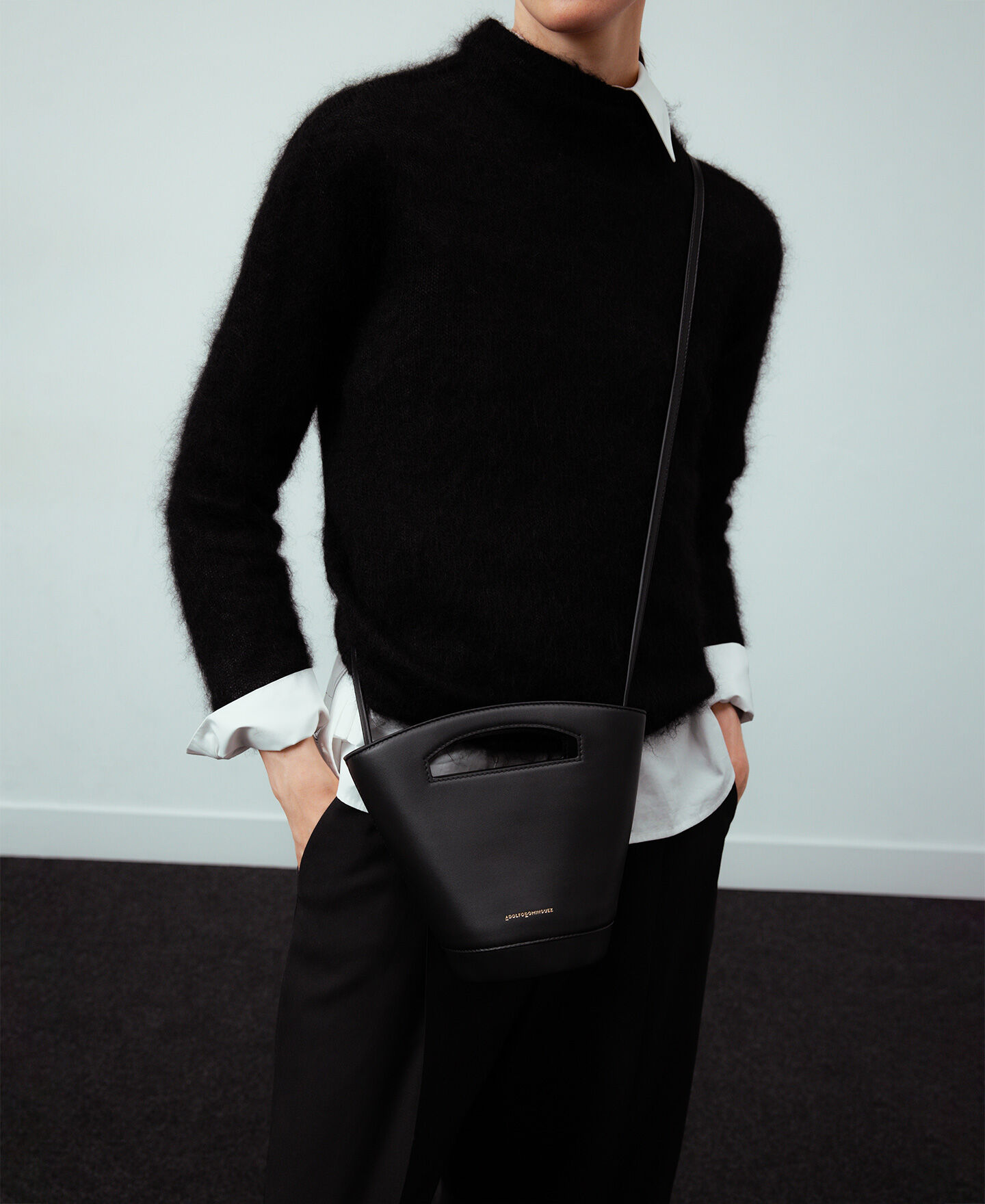 Mini capazo Aqua Lab (05) piel mujer. Un compartimento. Cierre cremallera. Asa corta troquelada en cuerpo. Asa larga regulable y extraíble. Logo grabado.