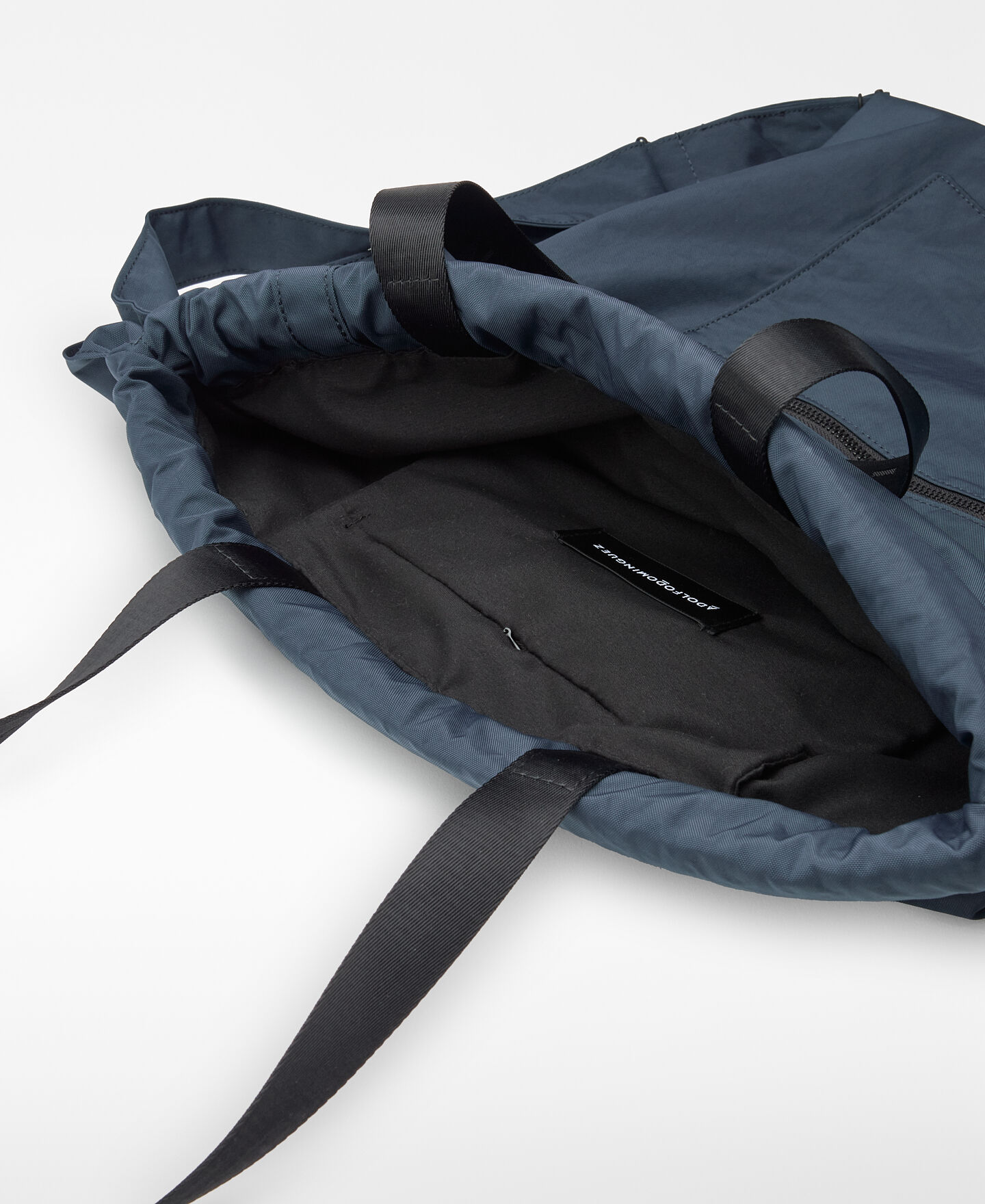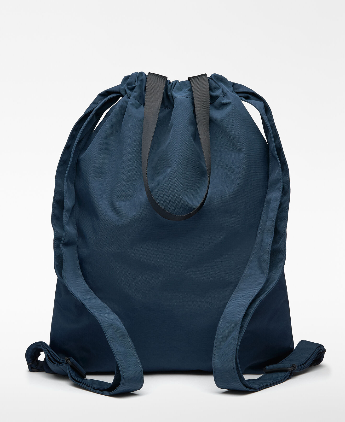 Mochila saco hombre. Un compartimento. Cierre estrangulador. Bolsillo interior con cierre cremallera. Bolsilloexterior con cierre cremallera en delantero. Mosquetón en delantero. Asas fijas en cinta logotipada. Asas de hombro regulables. Logo grabado.