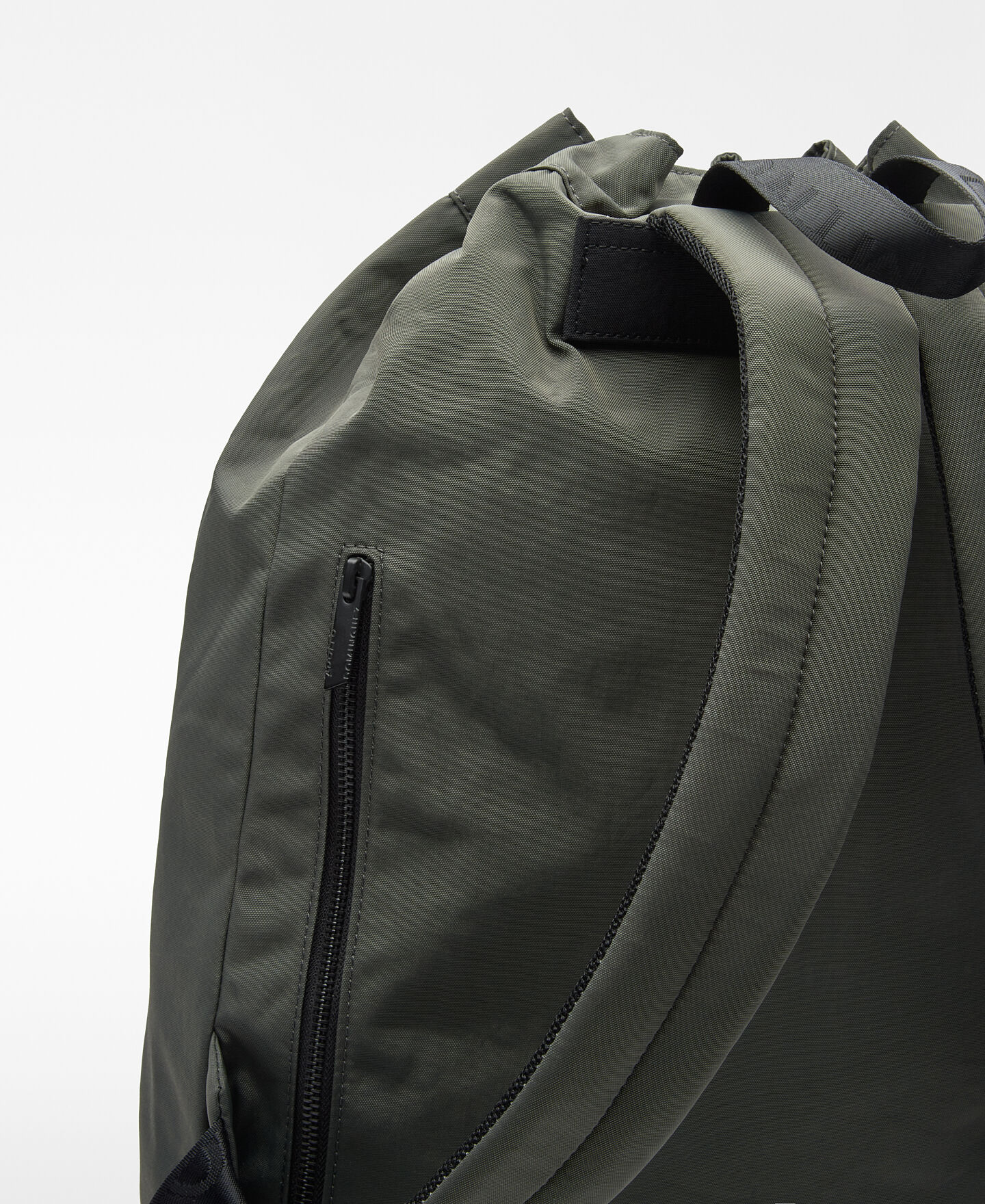 Mochila saco nailon hombre. Un compartimento. Cierre estrangulador. Maxi bolsillo con cierre cremallera en delantero. Bolsillo con cierre cremallera en espalda. Asa de mano. Asas de hombro regulables. Logo grabado.