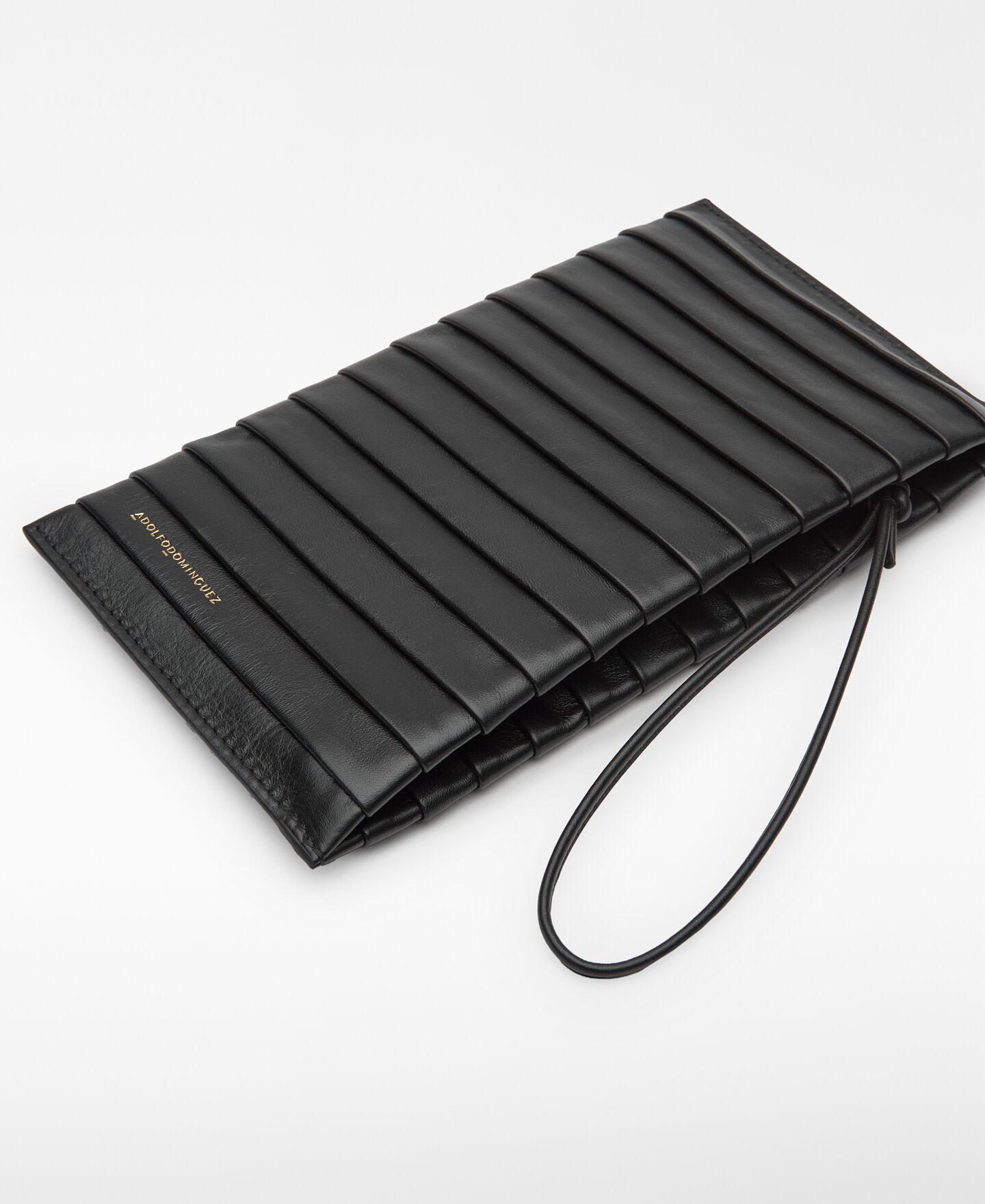 Adolfo Domínguez Mujer Bolsos Clutch Rectangular Plisado Piel | Negro