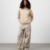 Pantalón denim estampado algodón mujer. Cierre botón metálico. Trabillas. Cinco bolsillos. Canesú en espalda. Pierna ancha.