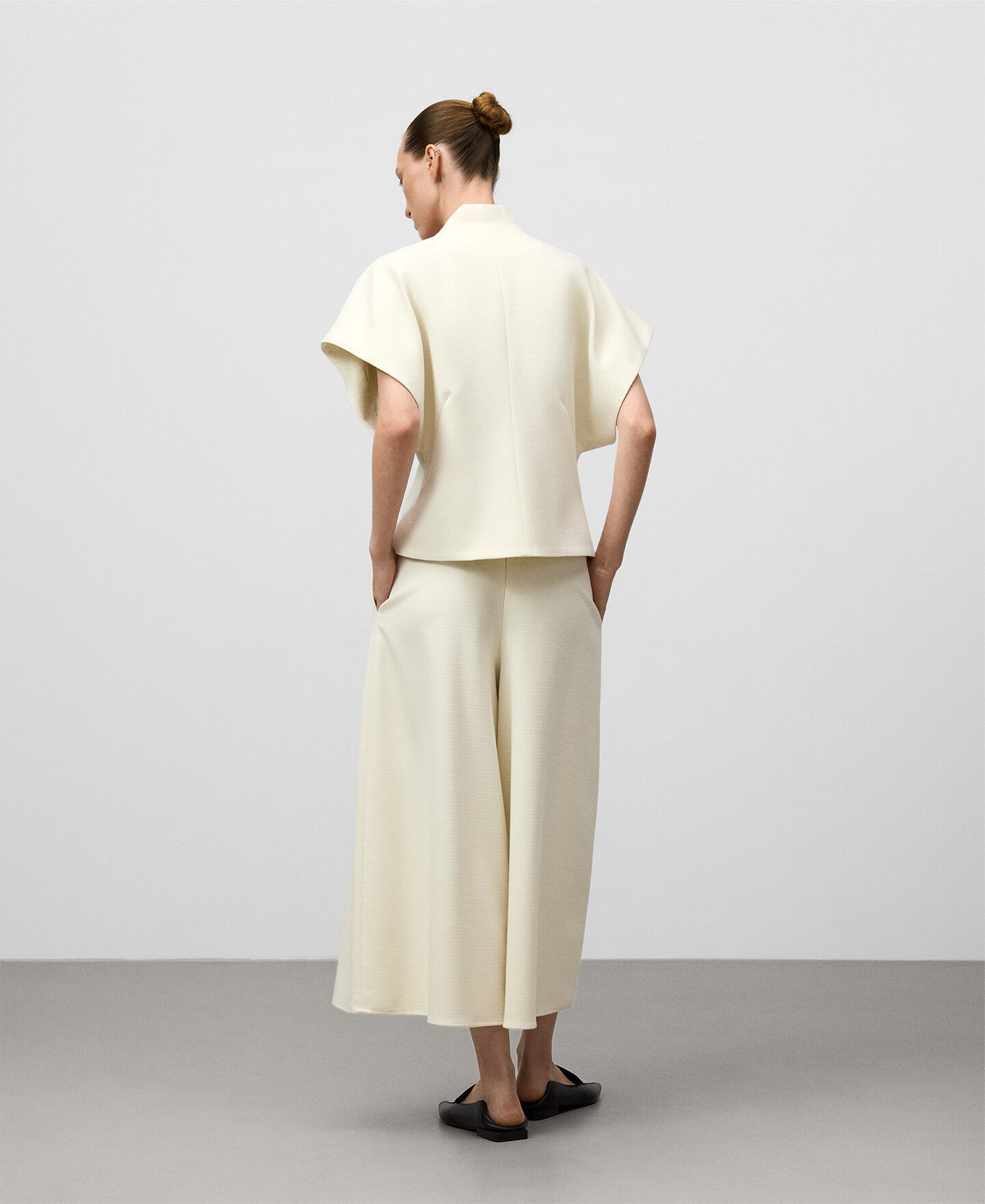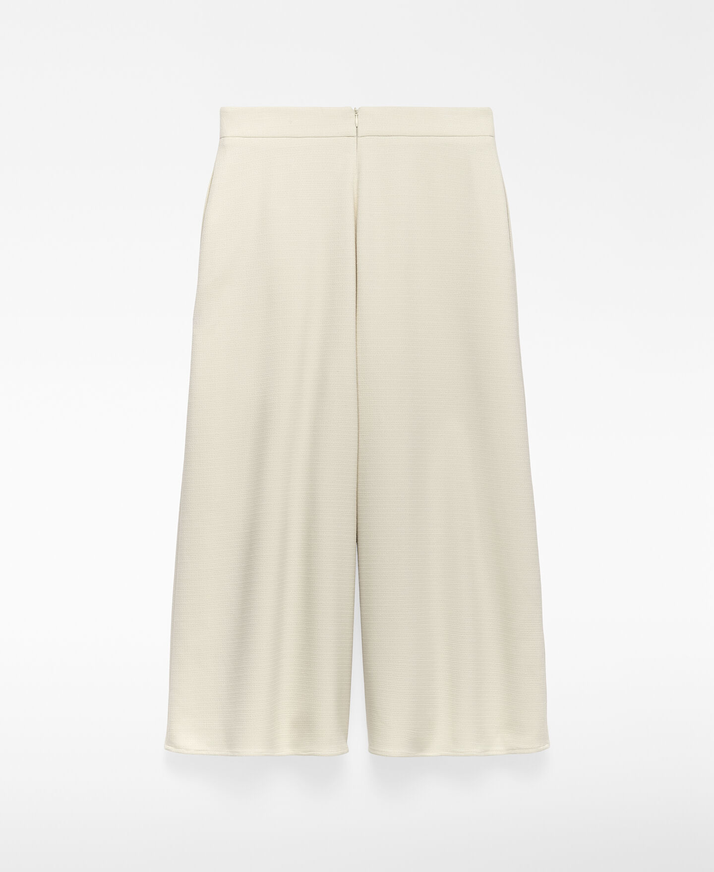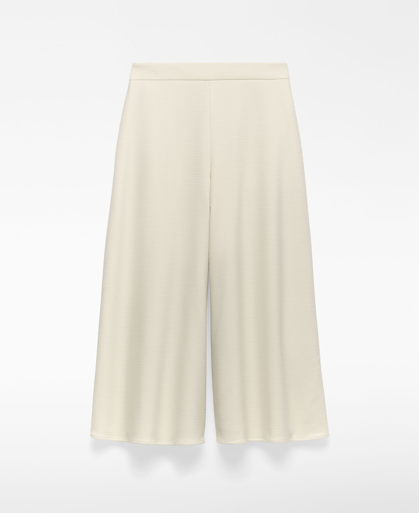 Pantalón culotte textura mujer. Cinturilla. Bolsillos laterales. Cierre cremallera en espalda. Pierna ancha.