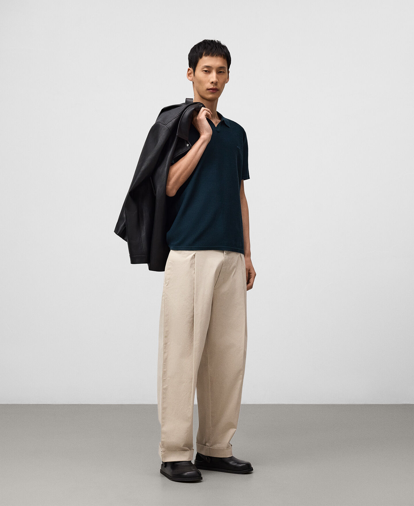 Adolfo Domínguez Polo Punto Estructura Cuello Pico Hombre | Petróleo | Hombre Ropa
