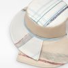 Sombrero bucket estampado algodón mujer. Ala amplia asimétrica. Logo engomado a contraste.